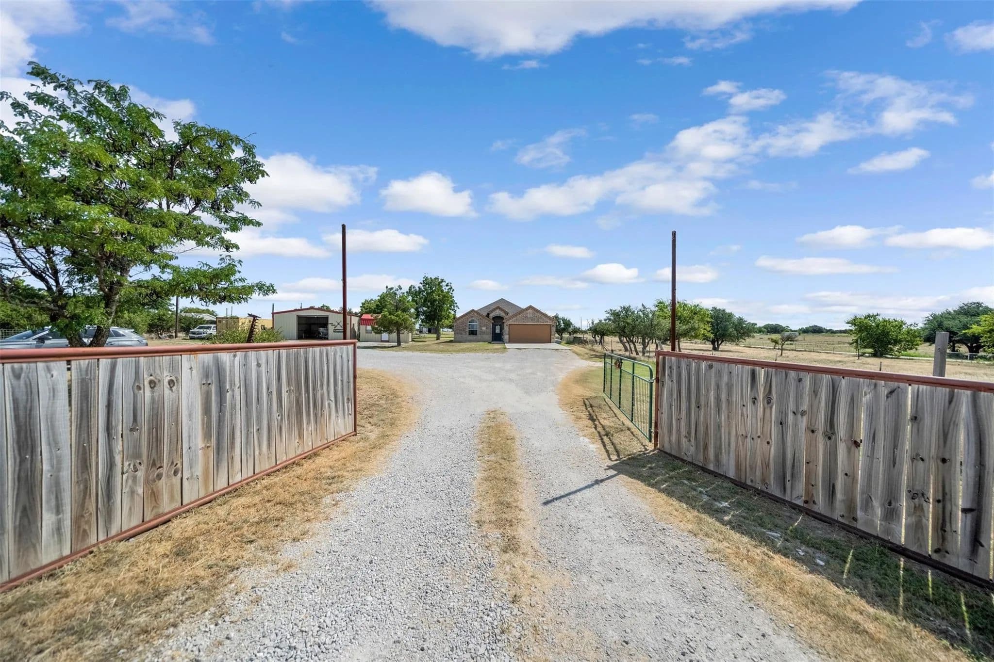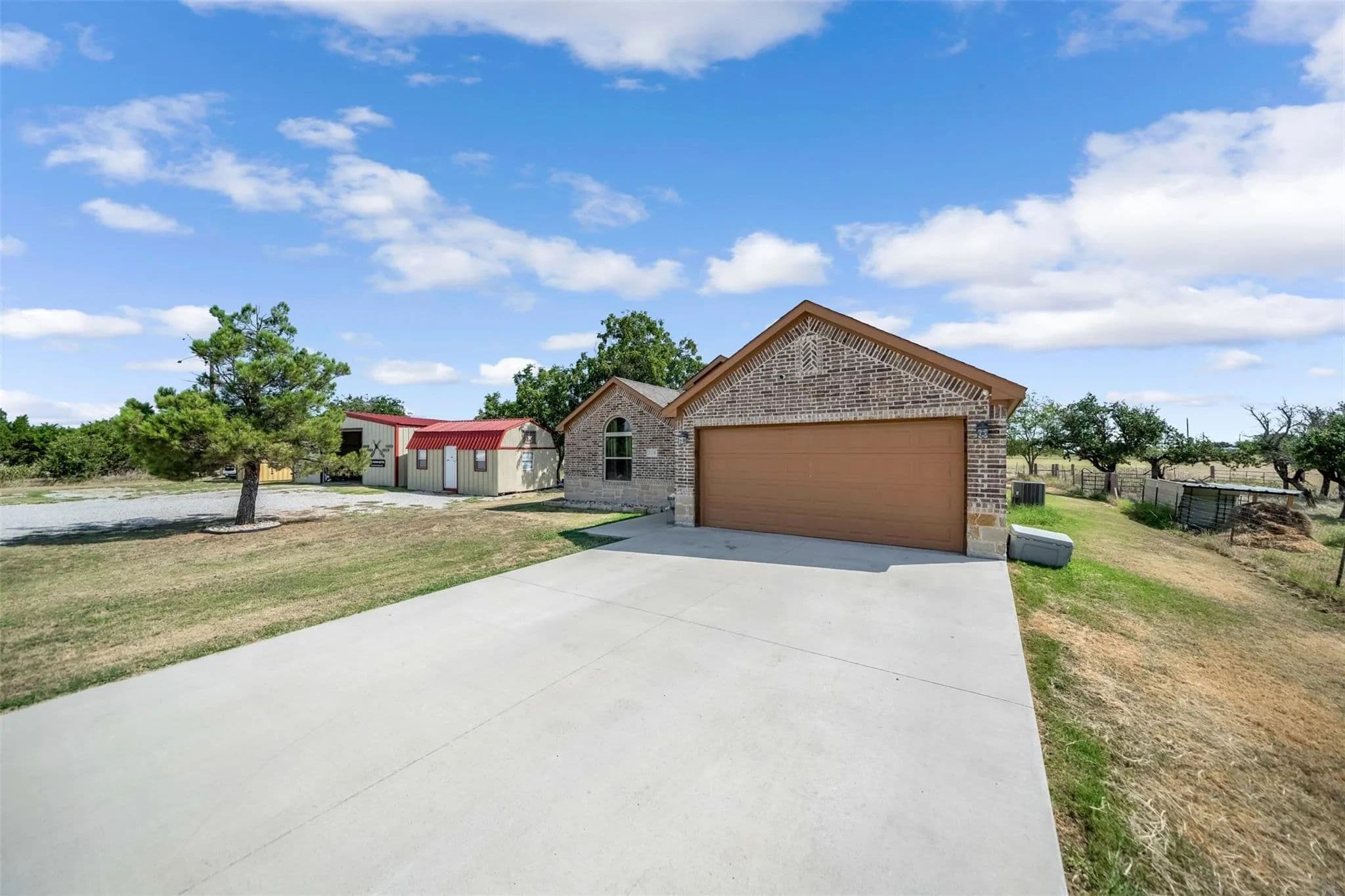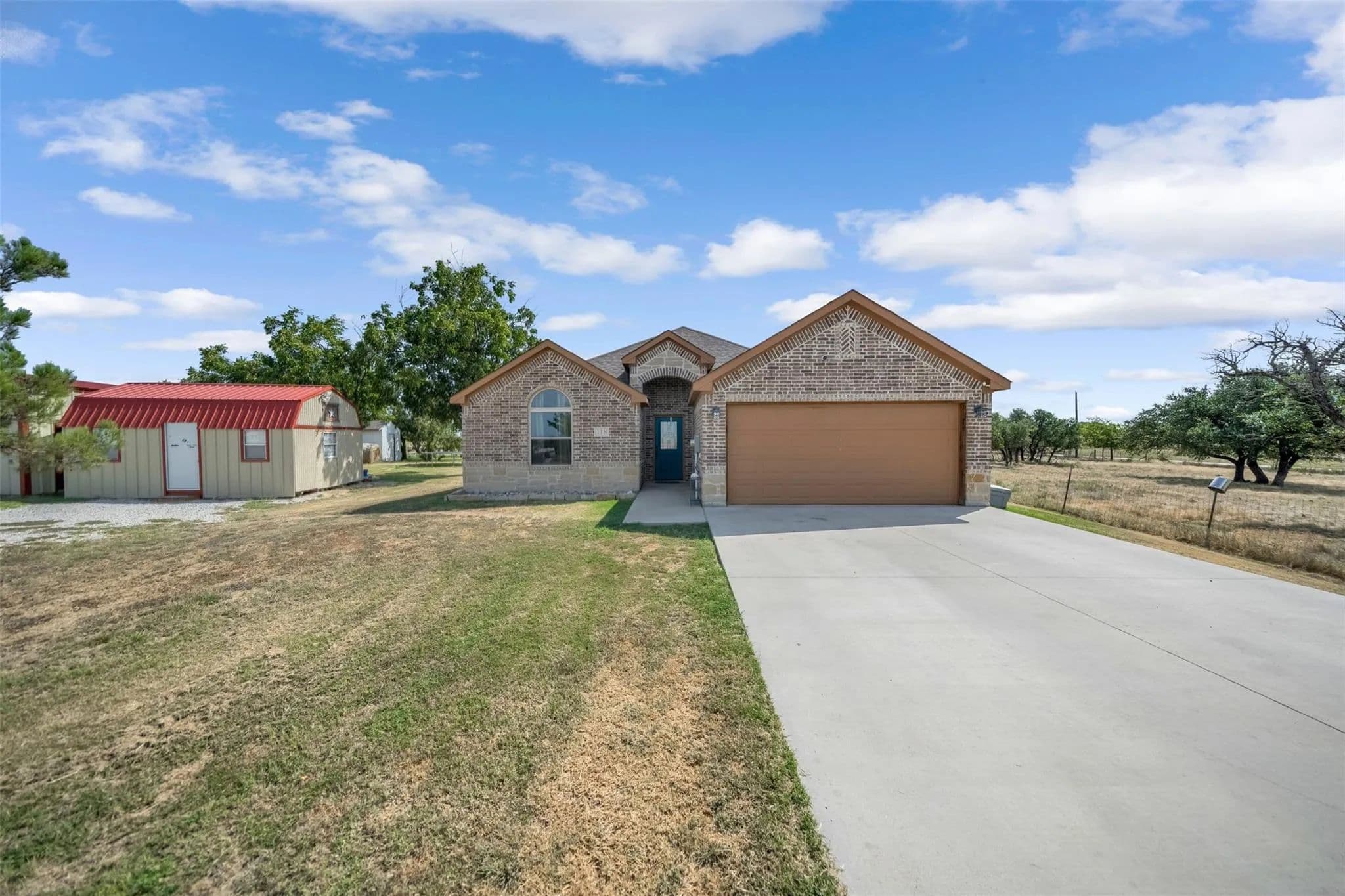 Welcome to your perfect blend of country living and modern comfort! This 2018-built home sits on 5 beautiful acres in Weatherford, offering 1,950 square feet of thoughtfully designed space with 3 bedrooms, 2 bathrooms, and an attached 2-car garage. Inside, youll find an open and inviting layout, perfect for both everyday living and entertaining. The property is fully fenced and currently set up for goats, making it ideal for hobby farming or livestock. A 30x40 insulated shop takes center stage for all your projects complete with heating, cooling, and a full bathroom for year-round functionality. For those who work from home or need a quiet retreat, there's also a separate smaller air-conditioned building currently used as an office. Enjoy the peace and privacy of rural living while still being within a short drive to town amenities. Whether you're seeking a place for animals, a workshop for hobbies or business, or simply a home with space to spread out, this property is a rare find.