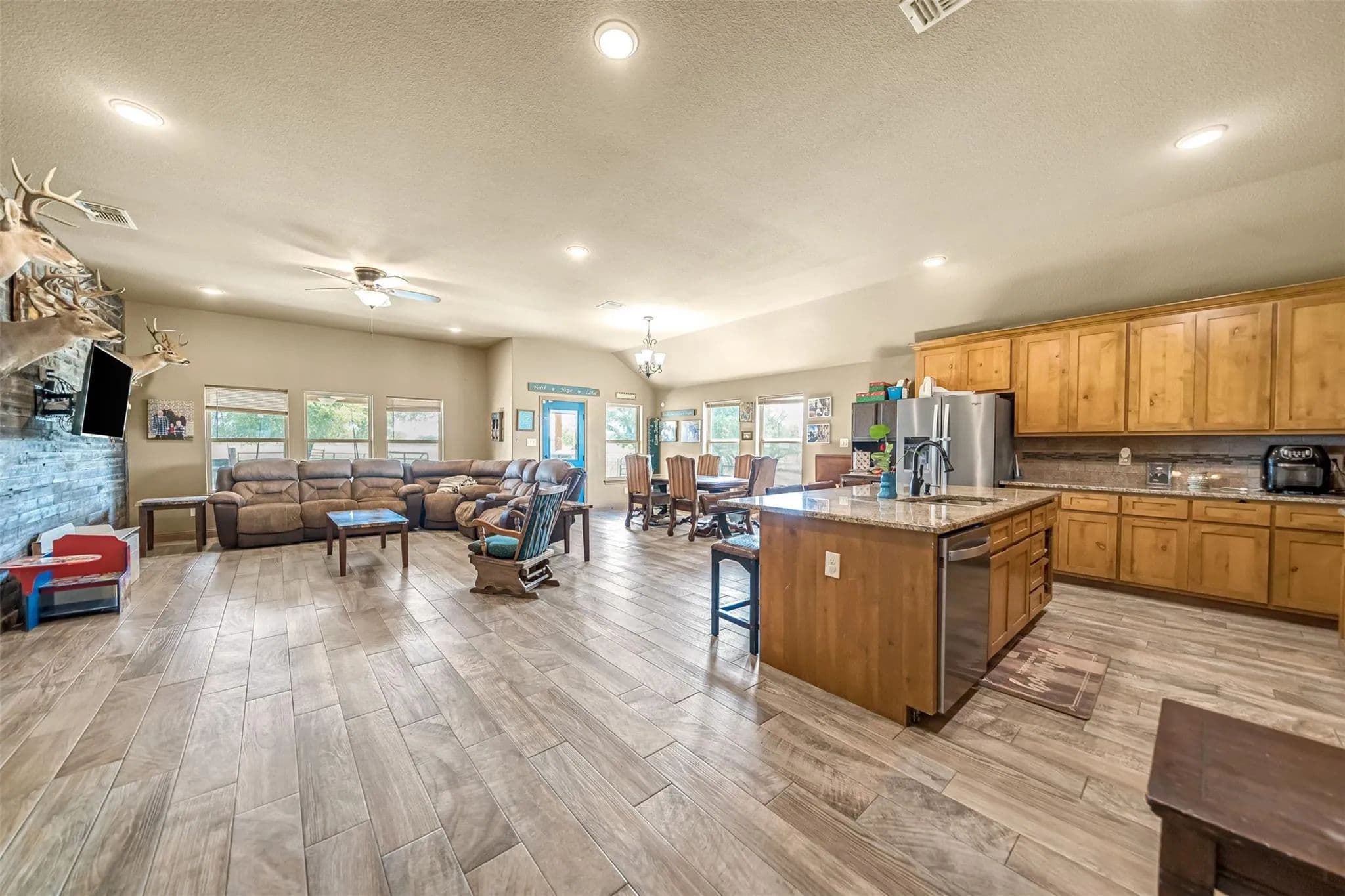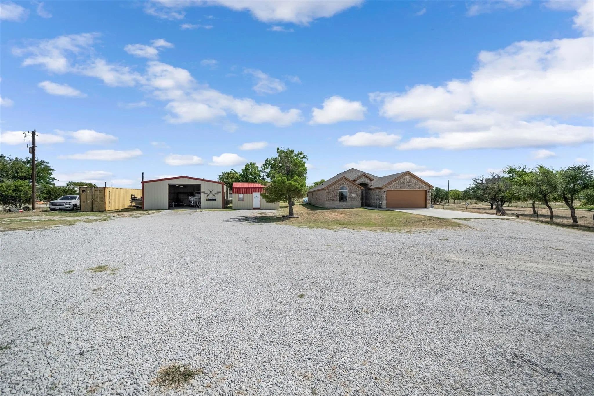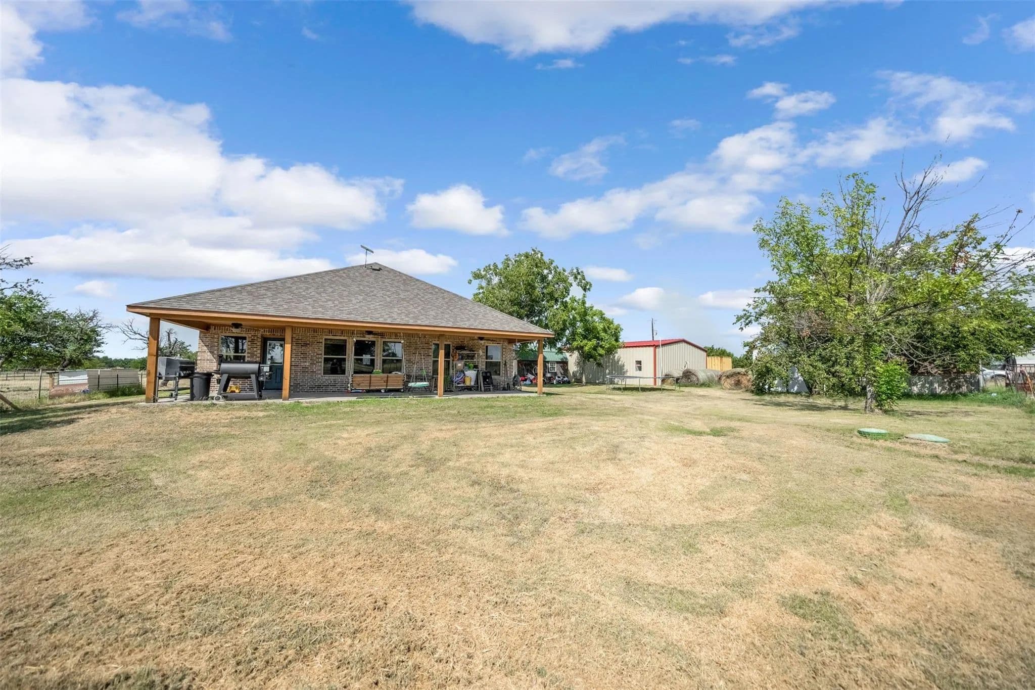 Welcome to your perfect blend of country living and modern comfort! This 2018-built home sits on 5 beautiful acres in Weatherford, offering 1,950 square feet of thoughtfully designed space with 3 bedrooms, 2 bathrooms, and an attached 2-car garage. Inside, youll find an open and inviting layout, perfect for both everyday living and entertaining. The property is fully fenced and currently set up for goats, making it ideal for hobby farming or livestock. A 30x40 insulated shop takes center stage for all your projects complete with heating, cooling, and a full bathroom for year-round functionality. For those who work from home or need a quiet retreat, there's also a separate smaller air-conditioned building currently used as an office. Enjoy the peace and privacy of rural living while still being within a short drive to town amenities. Whether you're seeking a place for animals, a workshop for hobbies or business, or simply a home with space to spread out, this property is a rare find.