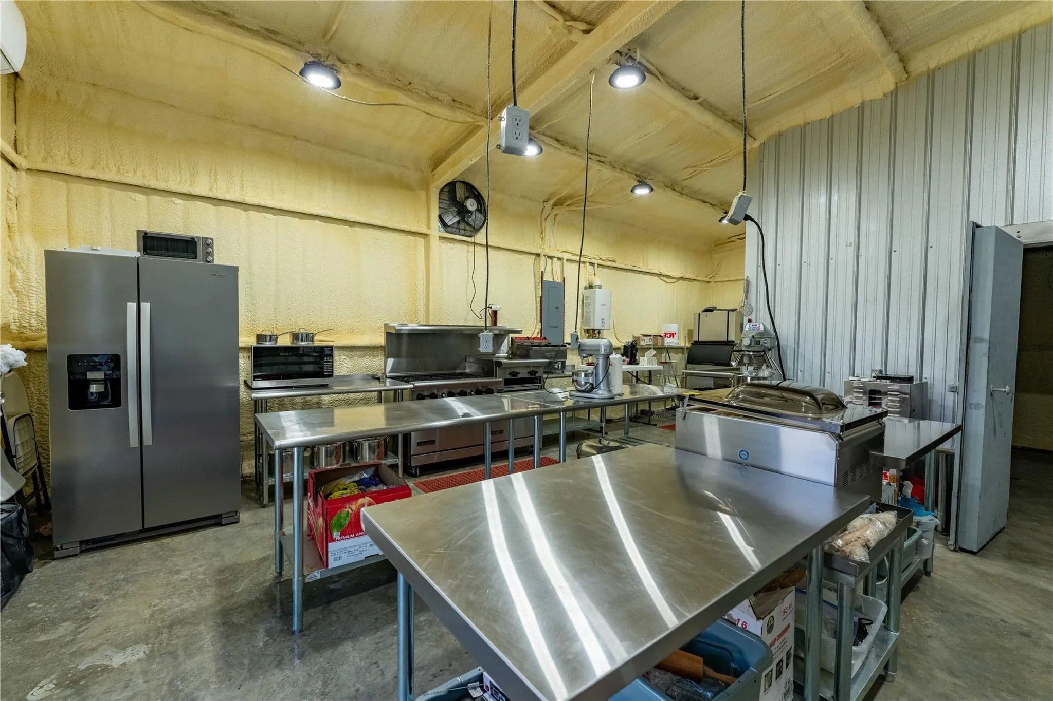 - 20x30 Detached climate-controlled kitchen includes all commercial grade appliances, stainless cooking surfaces and large 10x12 cooler with rails and Coolbot, out side includes cleaning station and equipment storage