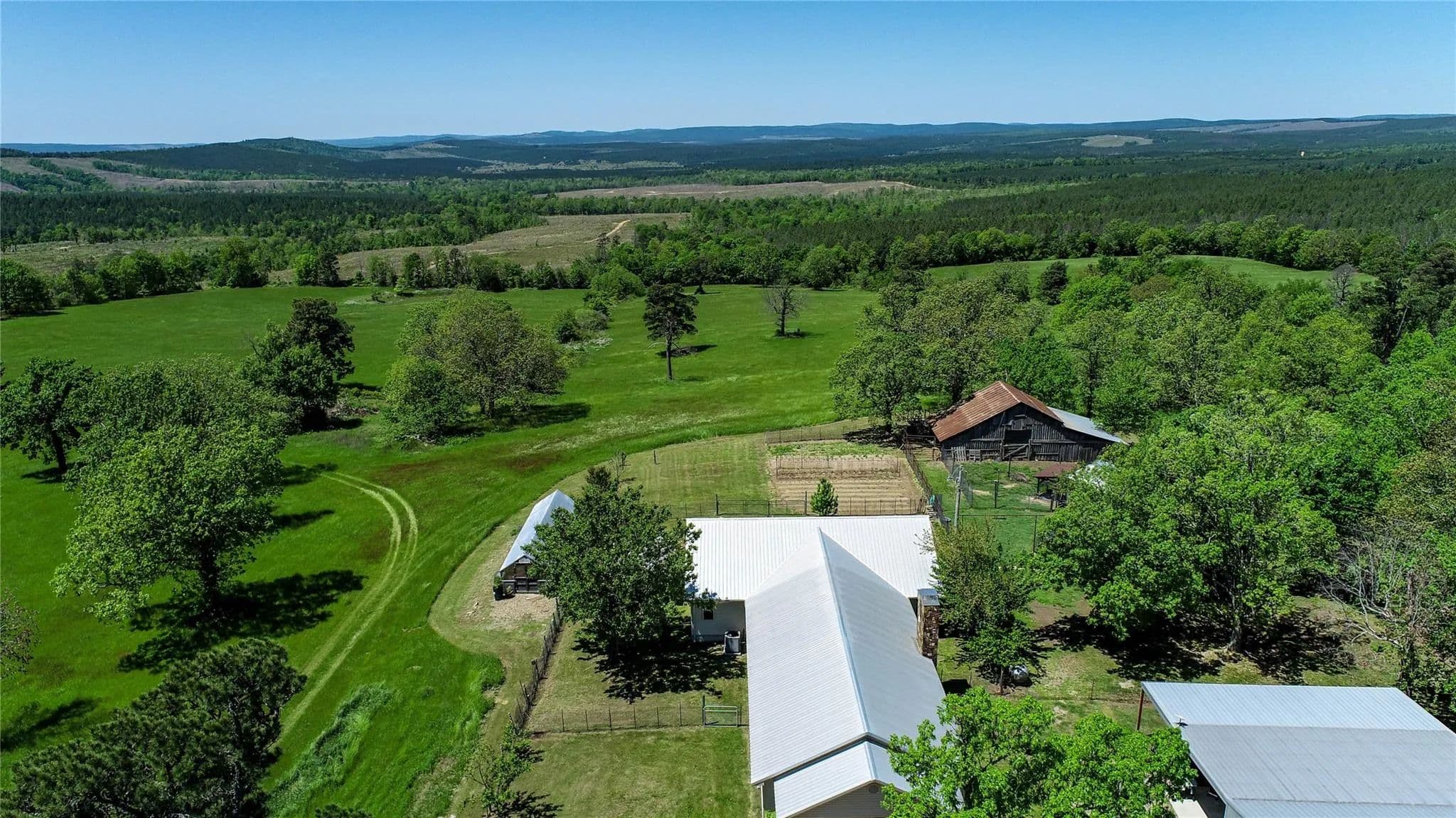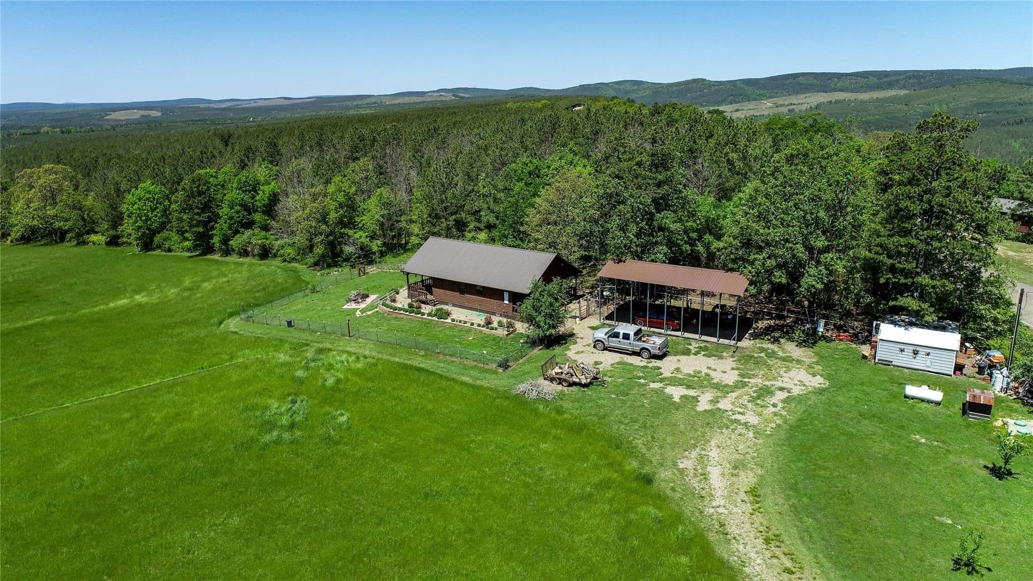 Rarely does a unique offering come available as the Bellissimo Tramonto Casa. Situated in the middle of the Three Rivers WMA, the ranch is a diverse property on the peak of Spring Mountain. Beautiful Mountain views, paved highway access, and secluded ownership make this property one-of-a-kind just 5 miles north of Hochatowns newest development. Enjoy your mountain home and professional grade commercial kitchen to entertain guests and family. The owner has spared no expense or forgot any appointments for the care of wildlife and comforts of rural living. Many amenities, improvements, and unique features go along with the sale including the newly renovated 2,750 sq ft main house, caretaker cabin and multiple shops. Experience the beauty of Kiamichi Wilderness and schedule your private tour today.