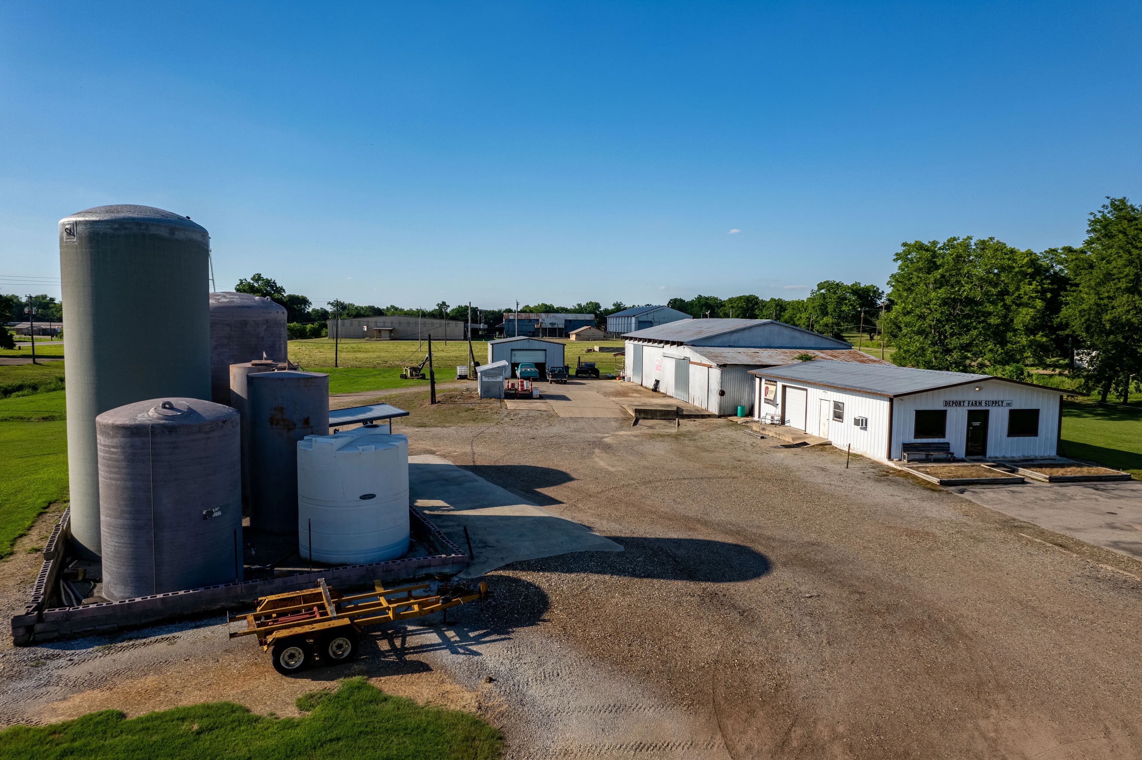 Commercial business opportunity just off of Hwy 271 in Deport, TX. Deport Farm Supply has served eastern Lamar county and surrounding areas for over 45 years. This property features 2.65 acres with room to expand, two points of entry off Choctaw St and Depot St, and an oversized gravel parking lot for truck turn around and parking. The parking lot also includes a truck dock for loading and unloading, overhead and sliding doors. Metal structures include a 95x45 shop, 50x30 main building with heated and cooled office space, and a stand alone 30x25 shop in the back totaling just over 6,500 sq ft of warehouse and office. 7 liquid storage tanks and pump station encompassing 82,800 gallons are also included. This is a one of a kind turnkey opportunity to start an agribusiness company servicing thousands of acres of farmland in Lamar and Red River County. Call today to see your future grow at Deport Farm Supply.