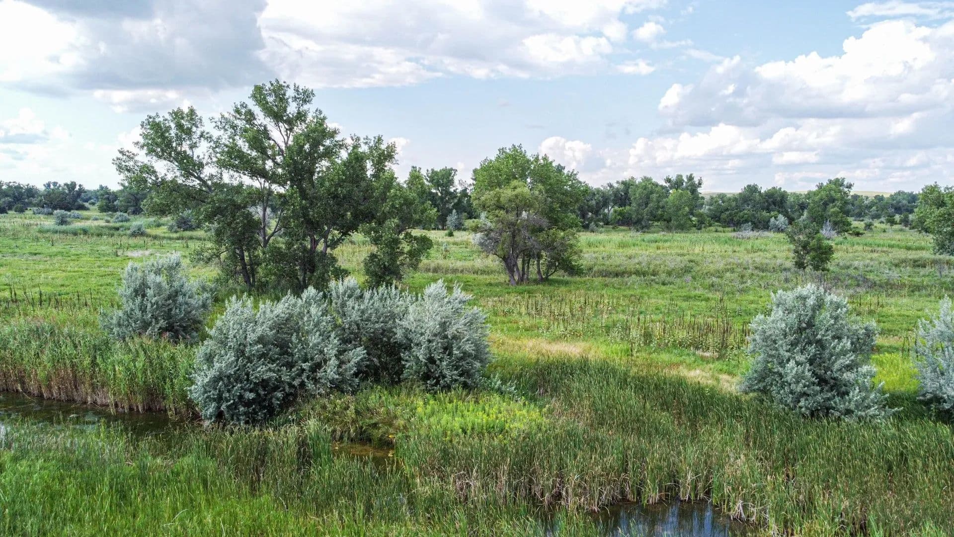Beyond waterfowl, the property holds good numbers of whitetail deer, with thick cedar and Russian olive cover offering ideal bedding and travel corridors. Winding river-bottom trails make for excellent stand sites. Wild turkeys are commonly seen strutting along the riverbanks and feeding out in the open fields every spring.