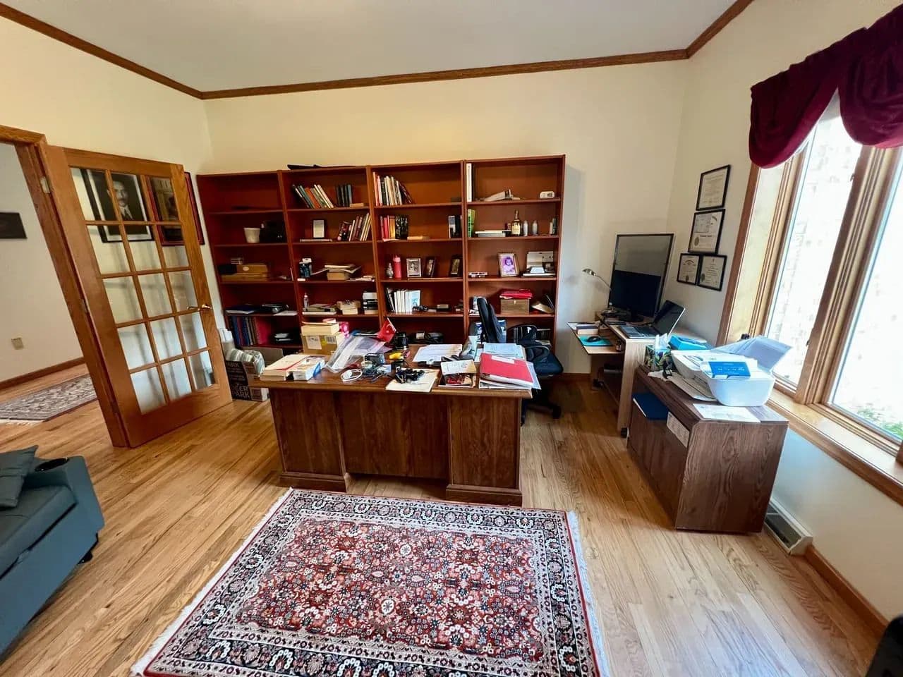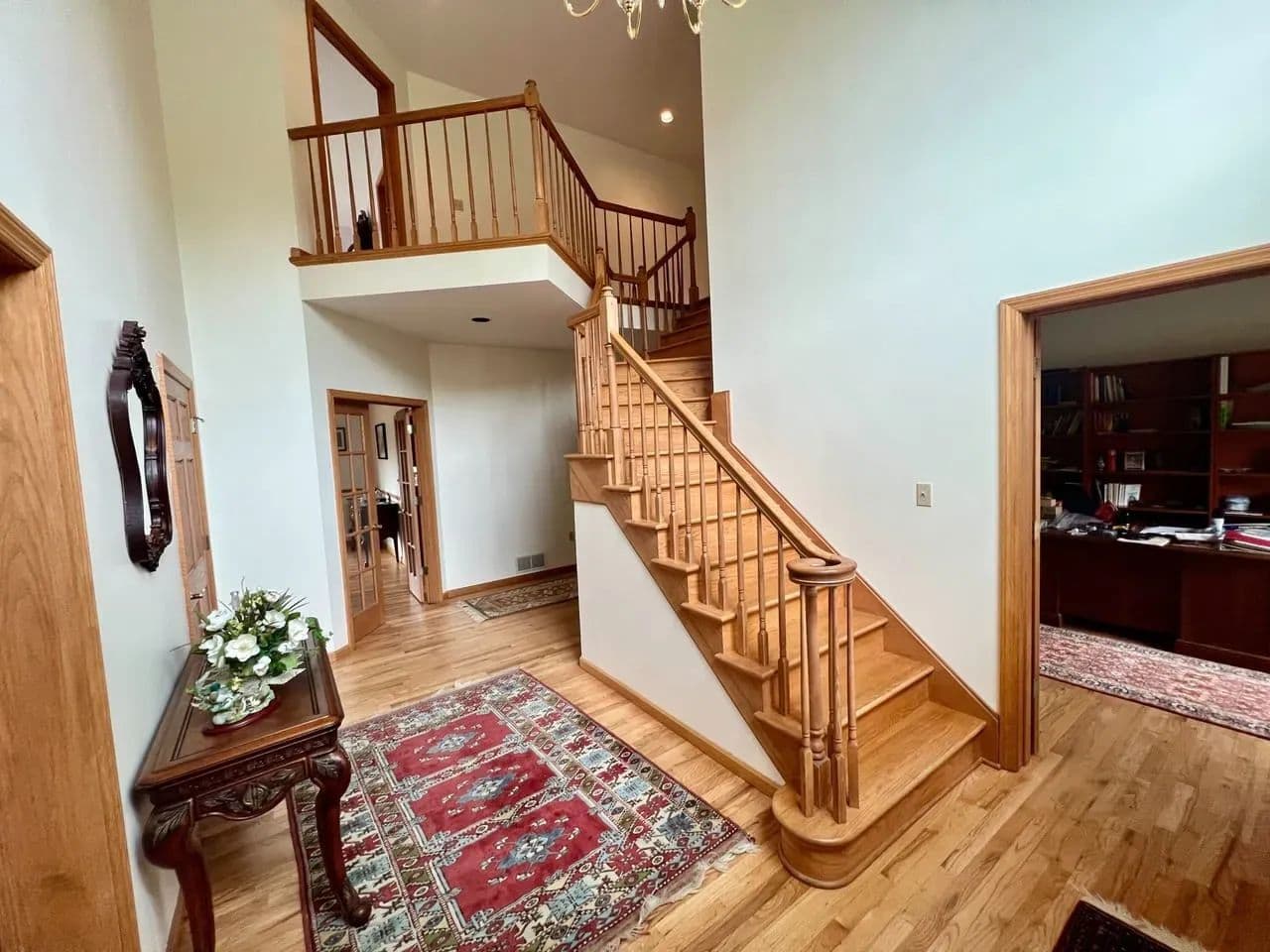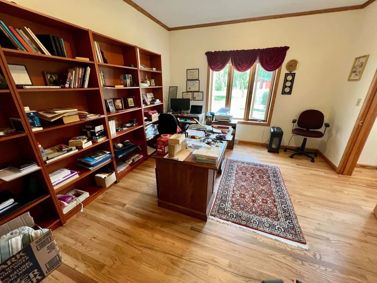 The main level offers a seamless blend of comfort and function, with a full kitchen and breakfast nook, dining room, living room, parlor, and a large family room with a natural gas fireplace. Additional conveniences include a private office, laundry room, powder room, and direct access to the three-car garage. Modern features such as a whole-home intercom system and central vacuum system add to the ease of daily living.