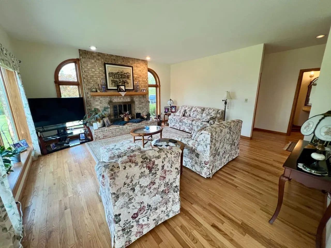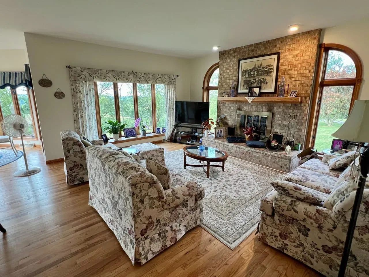 Inside, you’ll find 3,500+ square feet of thoughtfully designed living space, featuring 4 bedrooms and 4.5 baths. The home’s open floor plan is accentuated by expansive windows, filling each room with natural light while capturing sweeping views of the rolling landscape.