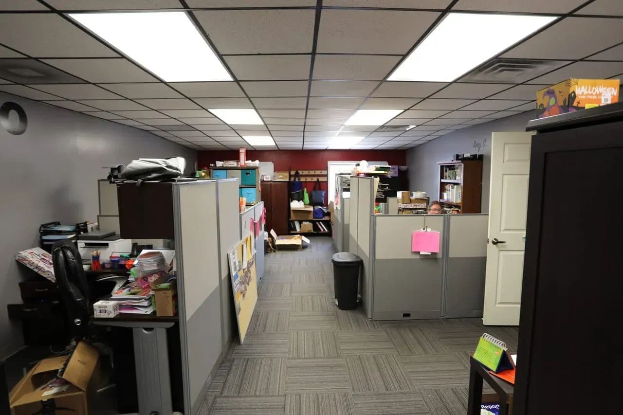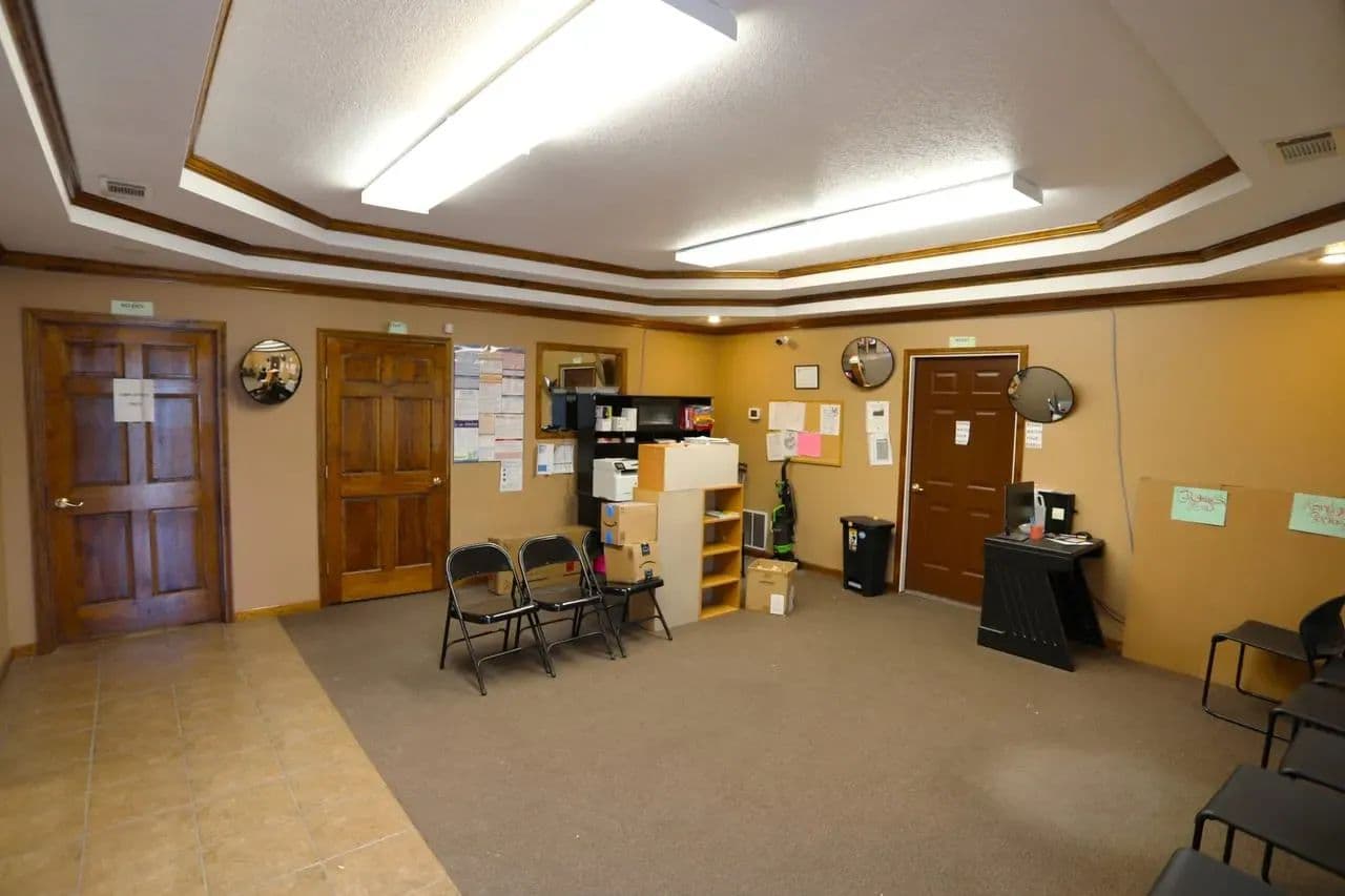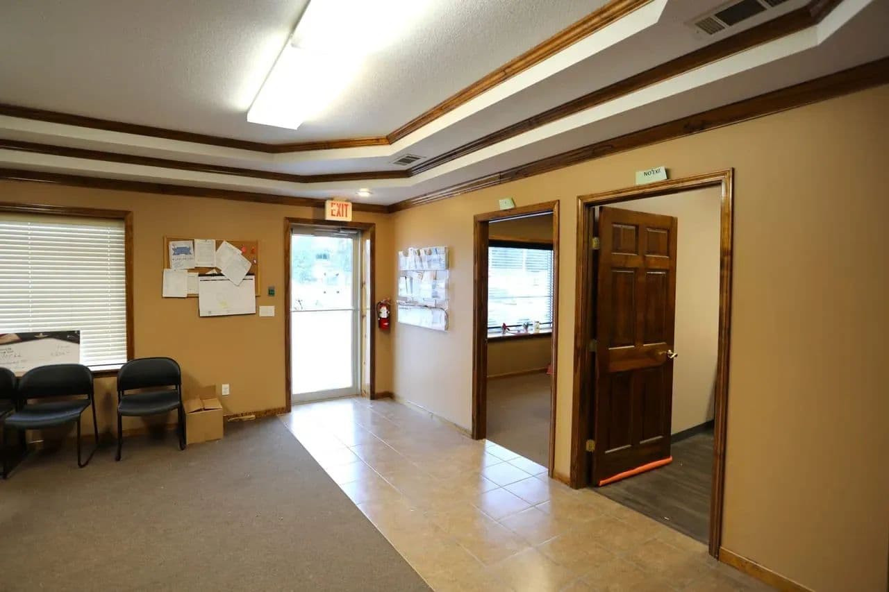 Large Commercial Building for Sale – 1716 South Broadway, Poplar Bluff, MO For sale is a spacious red iron clear-span commercial building (70’x125’) offering flexibility for a wide variety of uses. Currently tenant-occupied, this well-maintained property provides a combination of office, warehouse, and storage space. The front 37’x70’ portion is spray-foam insulated and fully finished on two levels. The main floor features a welcoming entry foyer, 4 offices, conference area, ¾ bath, ½ bath, and full kitchen/break room. Upstairs, you’ll find 2 single offices, 2 large open finished areas, and an additional bathroom. Multiple zoned all-electric HVAC systems ensure maximum efficiency throughout. The rear of the building (88’x70’) sits on a heavy-duty concrete slab with floor drain, includes 2,700 sq ft of mezzanine storage, and 4 oversized 14’ overhead doors. On the north side, the property provides fenced and gated storage, while the remaining grounds allow for ample parking and easy maneuverability. Built for low maintenance and efficiency, this property has been occupied by the same tenant since 2019. Real estate only is being offered for sale. Showings by appointment only.