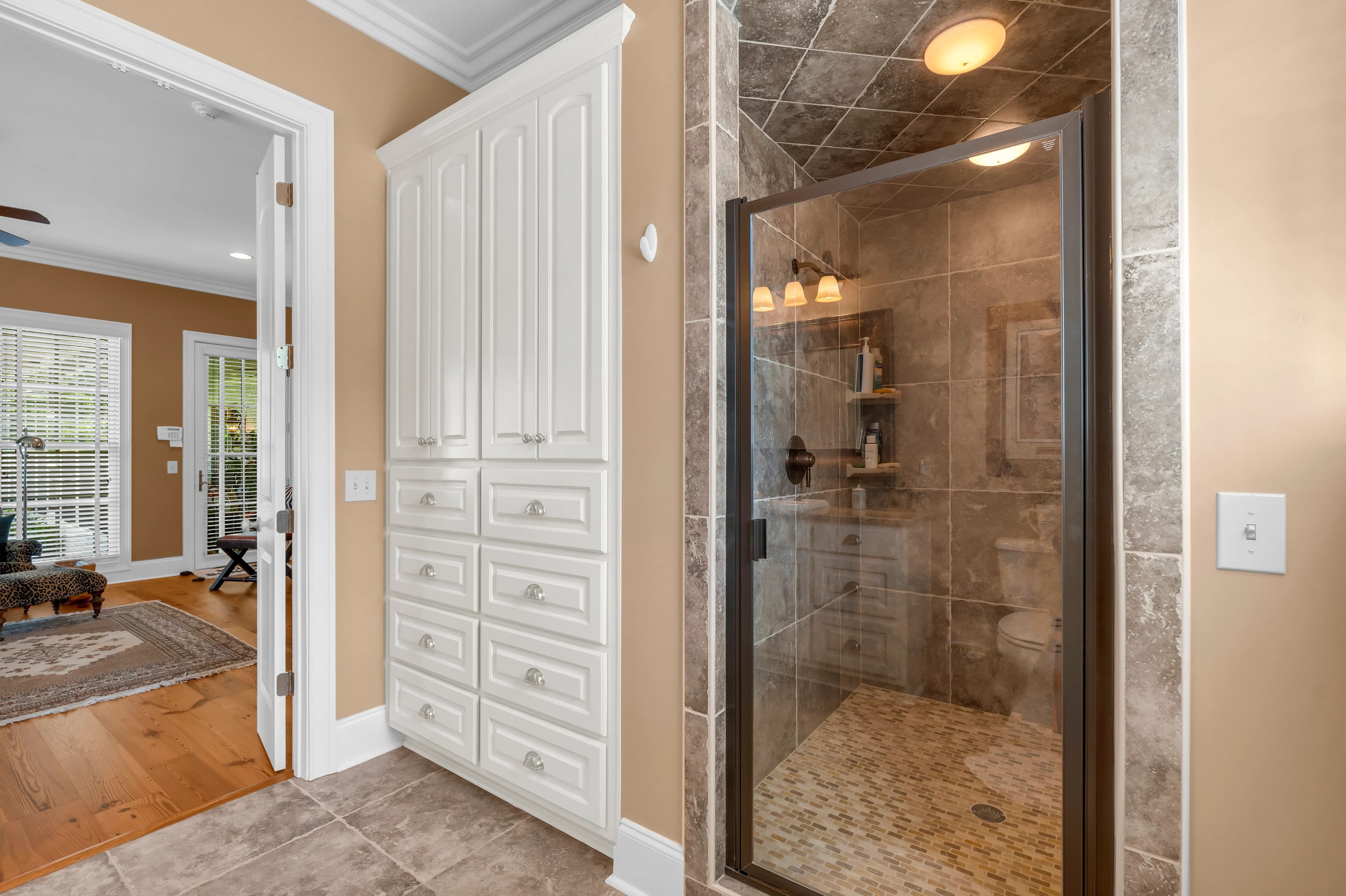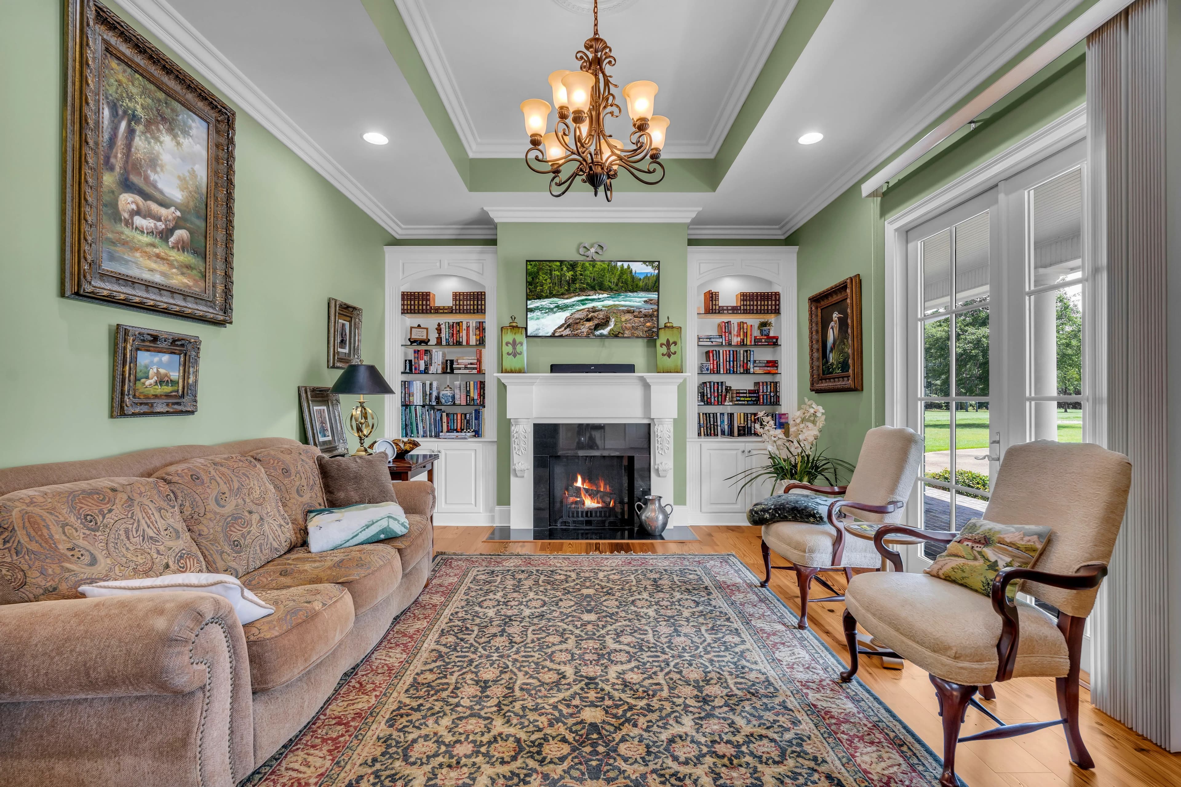 The main residence, built in 2013, offers 4,421± square feet of refined living space with three bedrooms, three and a half baths, heart pine flooring, custom cabinetry, and a detached five-car garage.