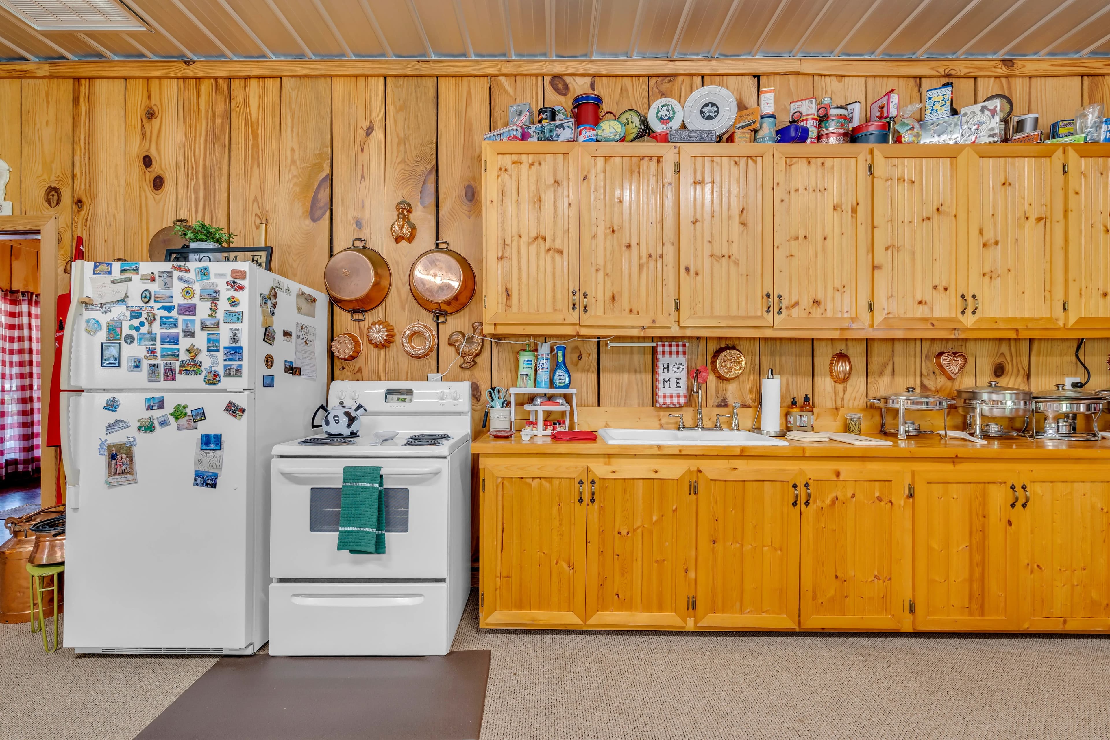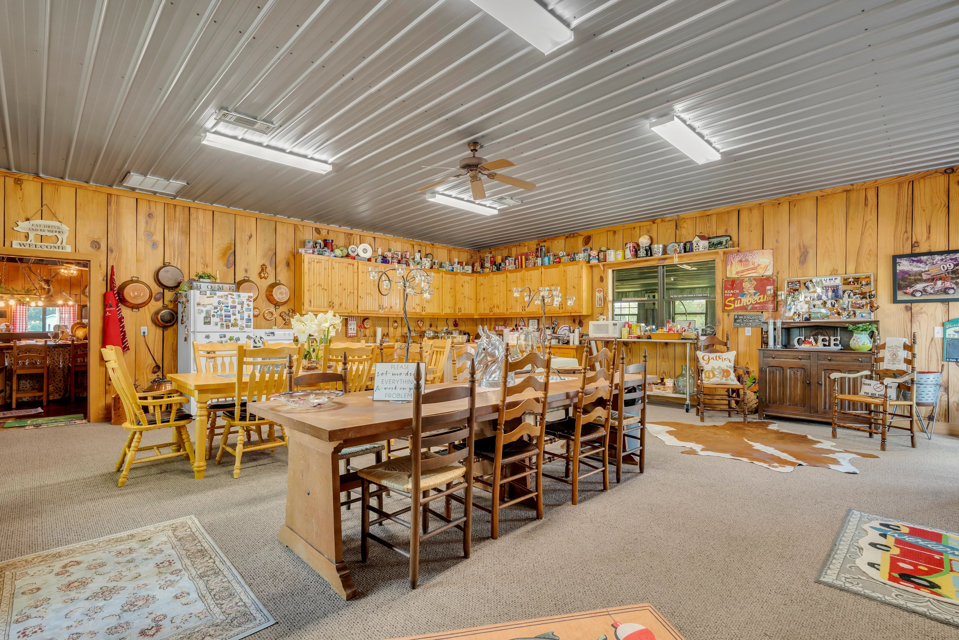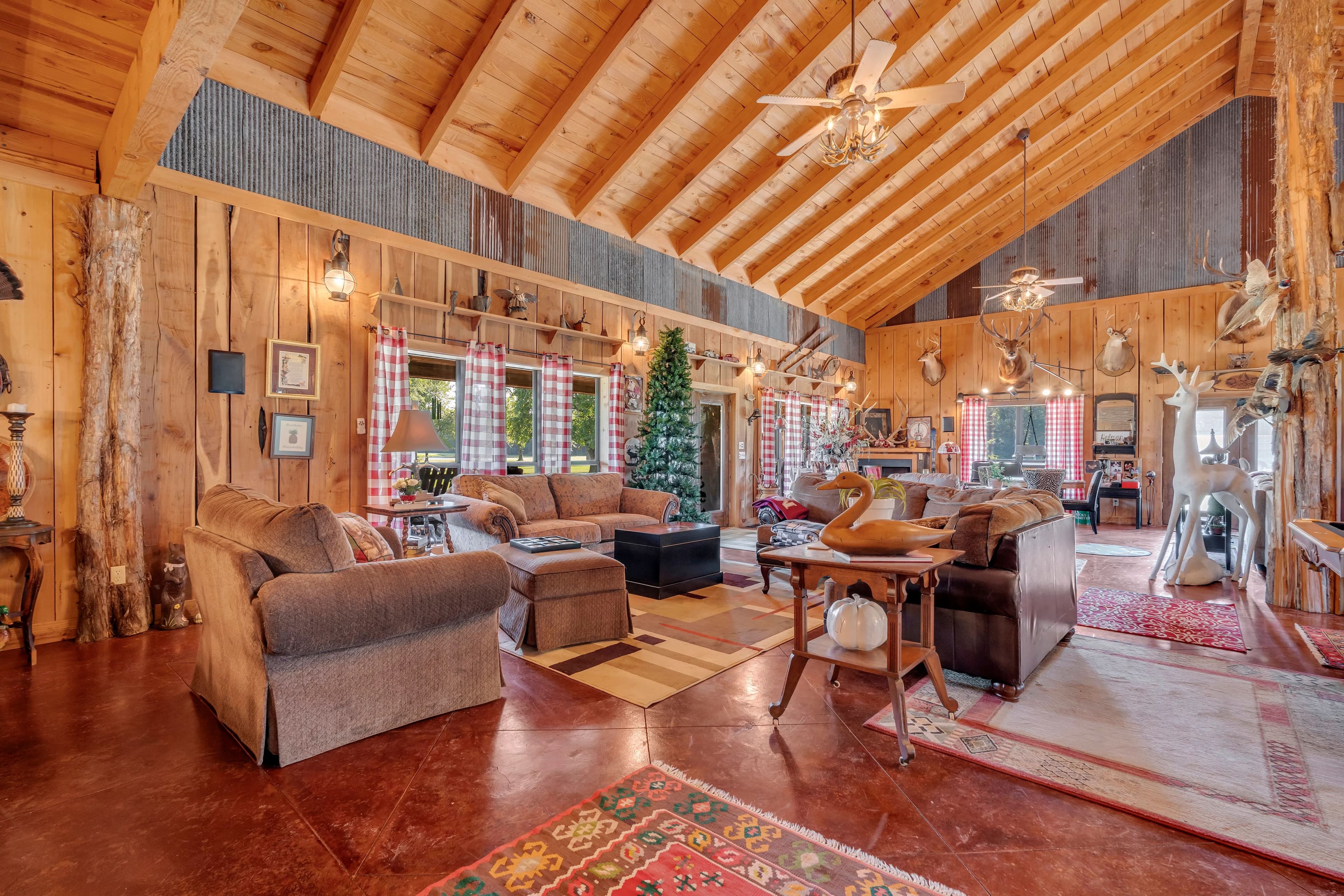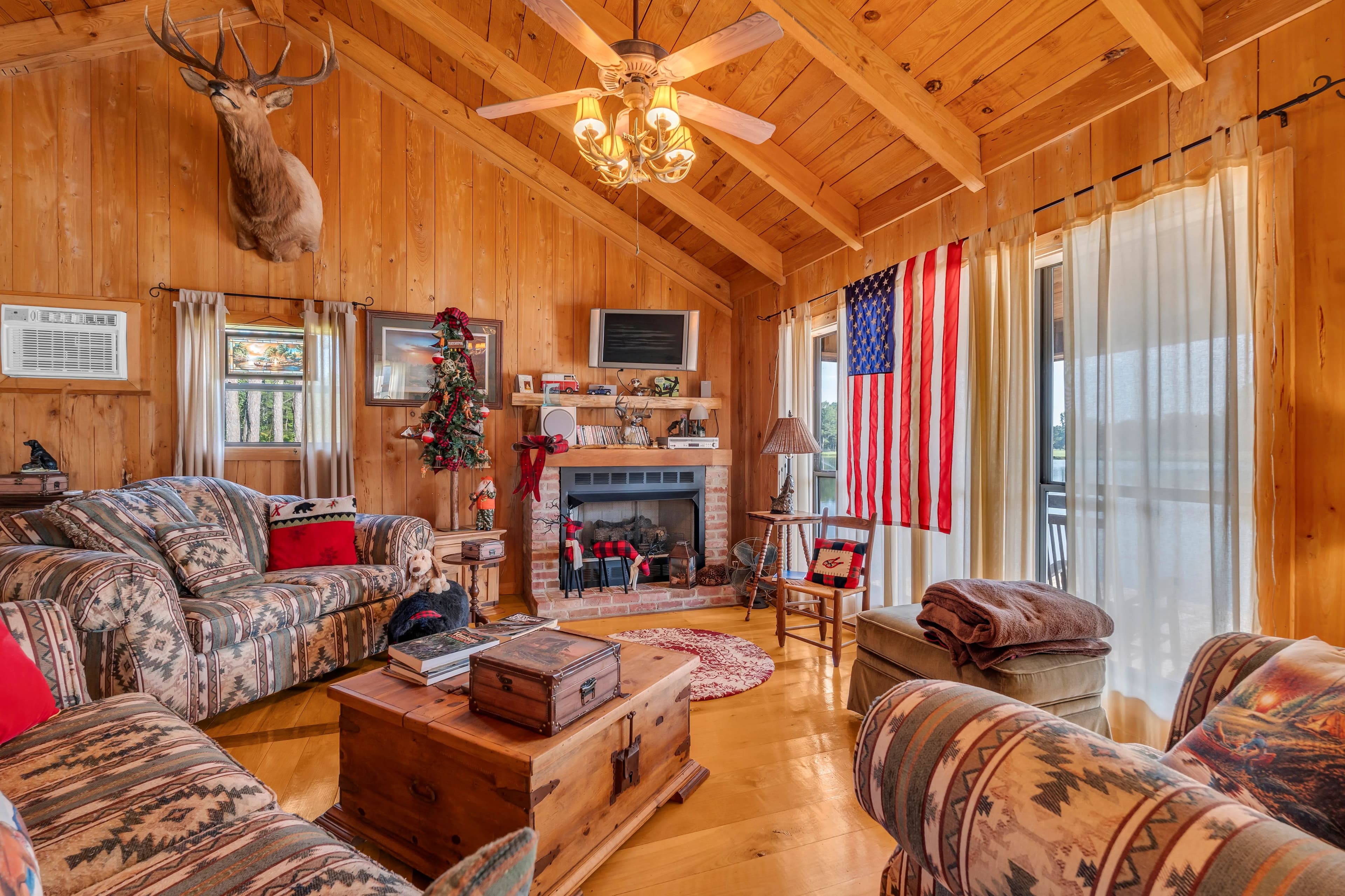 A separate 3,200± square foot lodge adds charm and flexibility with two bedrooms, one bath, a large kitchen, expansive living area, wrap-around porch, and an outdoor kitchen — perfect for entertaining. Overlooking the lake is a cozy 900± square foot cabin, complete with a bathroom, kitchenette, sleeping space, and a peaceful back porch with direct lake access.