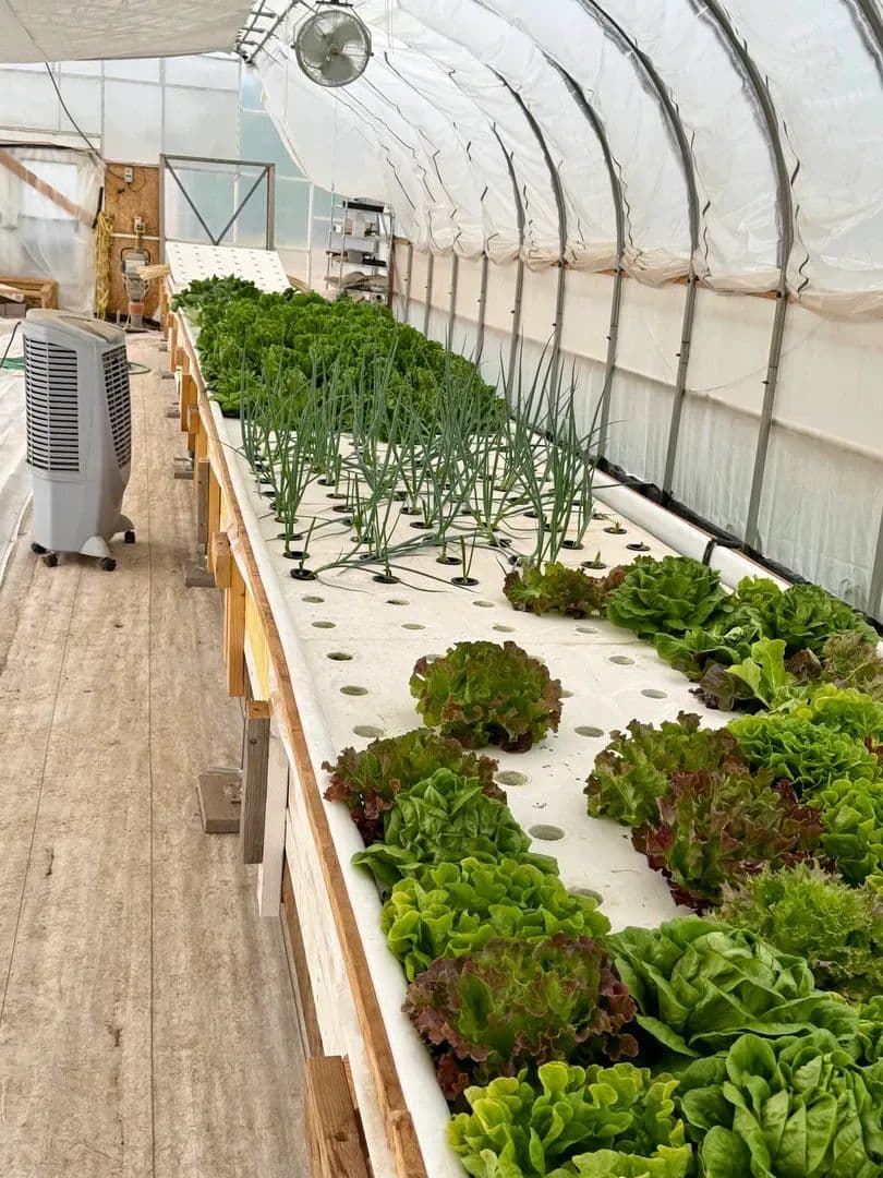 A new 12×32-foot sales shed just inside the gate of the property includes a CoolBot walk-in cooler for post-harvest storage, while a 12×24-foot storage shed provides space for tools and supplies. A 10×10-foot pump shed houses the solar and water system infrastructure, and a separate 10×10-foot climate-controlled cooling shed—maintained at a steady 60 degrees—stores seed, produce, and hydroponics chemicals.