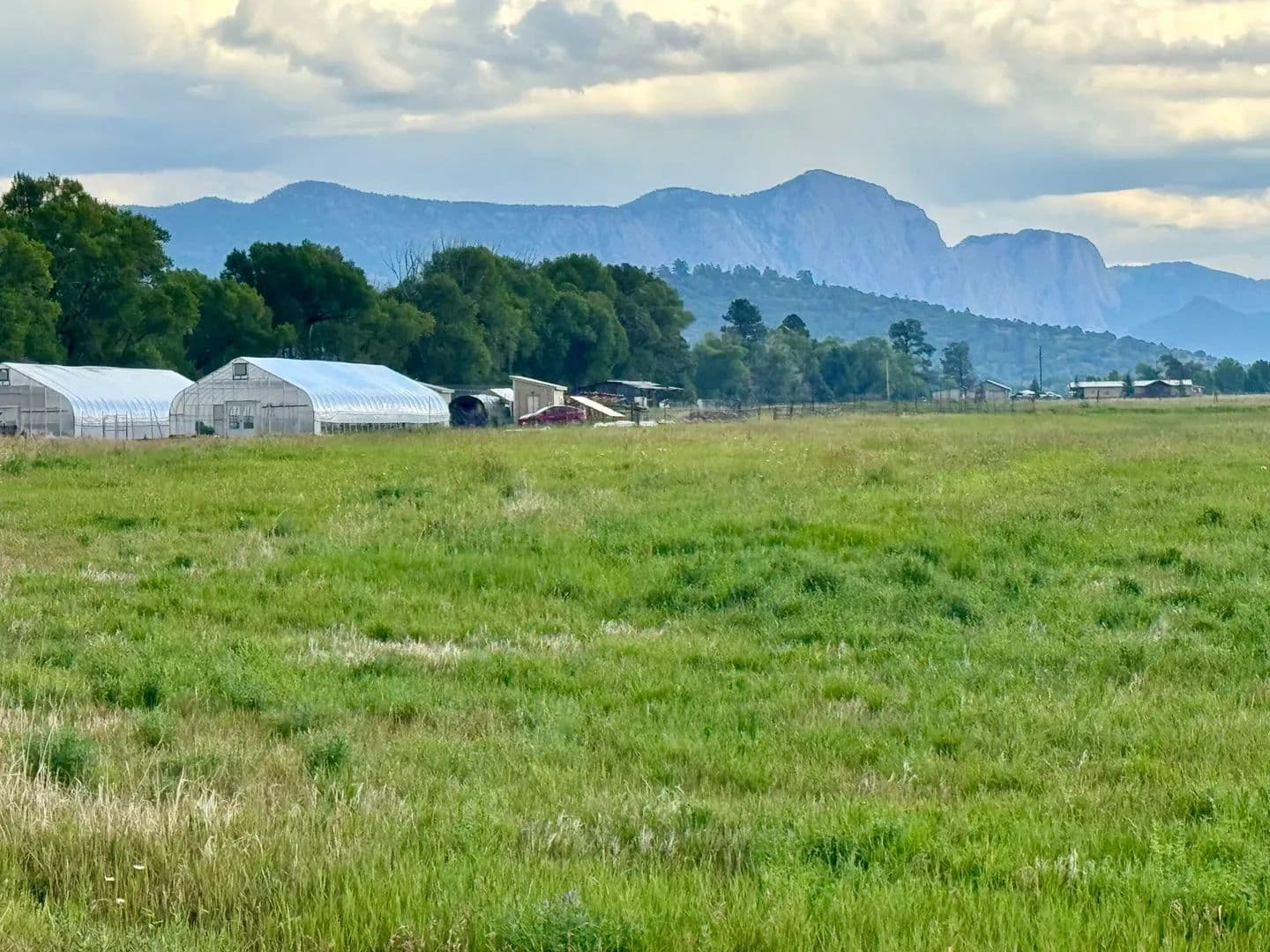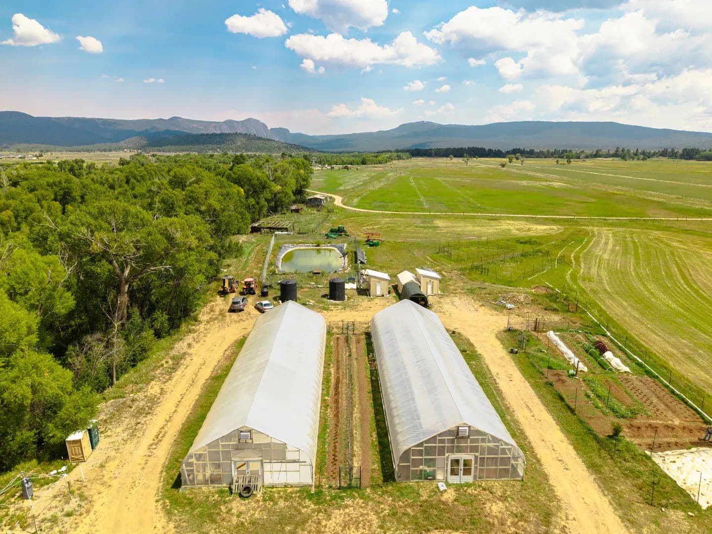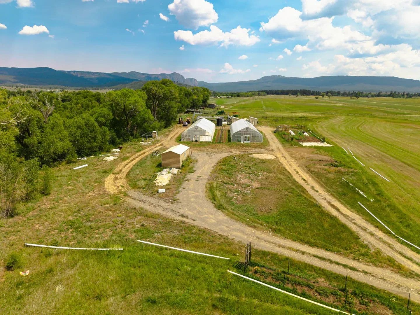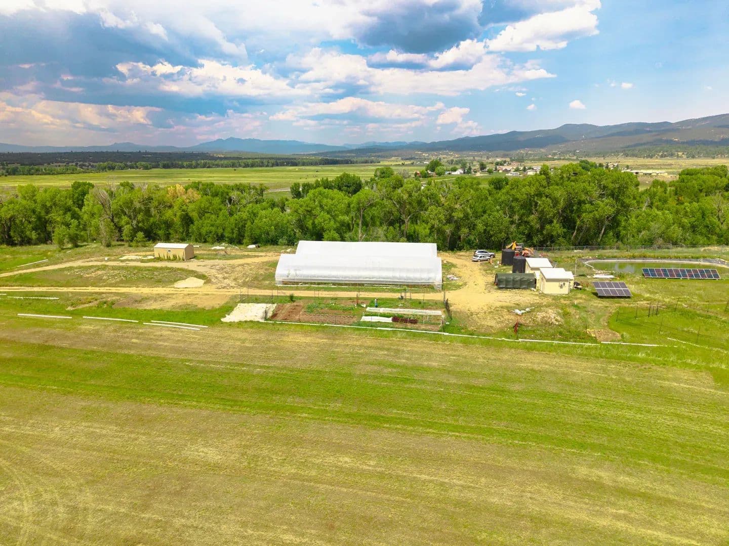 Brazos View Farm encompasses ±13.7 deeded acres of irrigated hay fields and commercial vegetable production, with 13.3 acre-feet of senior water rights from the Parkview Community Ditch. Featuring two commercial greenhouses, solar-powered hydroponics, and multiple outbuildings, this turnkey farm delivers proven income potential in one of the most beautiful settings in northern New Mexico, with the iconic Brazos Cliffs as a dramatic backdrop. Land At an elevation of approximately 7,250 feet in the fertile Chama Valley, the Brazos View Farm combines ±13.7 acres of level, irrigated hay fields, productive vegetable plots, and hydroponic greenhouse space with excellent year-round access off US HWY 64/84. Fully fenced with a gated entrance along the highway, the farm includes timothy grass fields, in-ground vegetable beds, and controlled-environment growing systems. An acequia, sand-bed filtration pond, two large water storage tanks and underground 8-inch mainline with above-ground valves provide efficient irrigation to both outdoor crops and greenhouses.