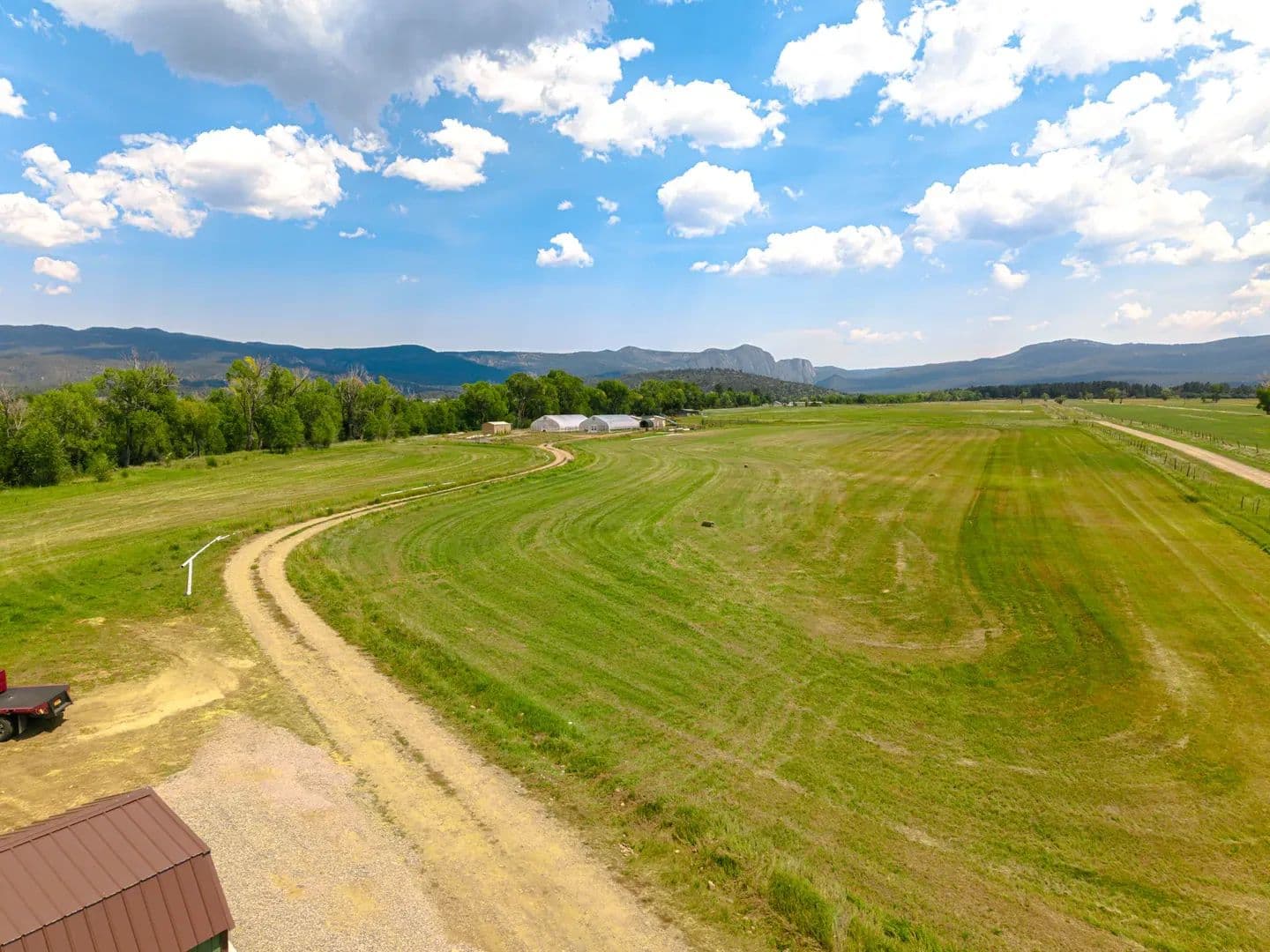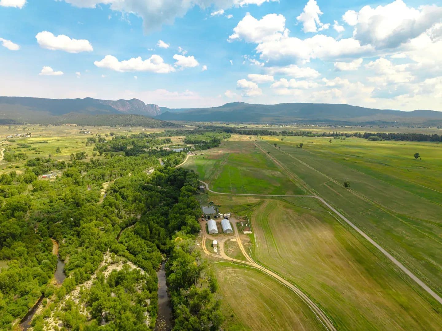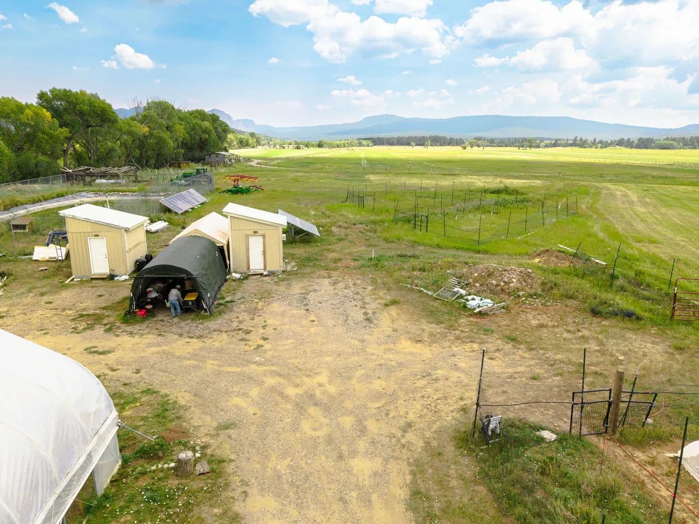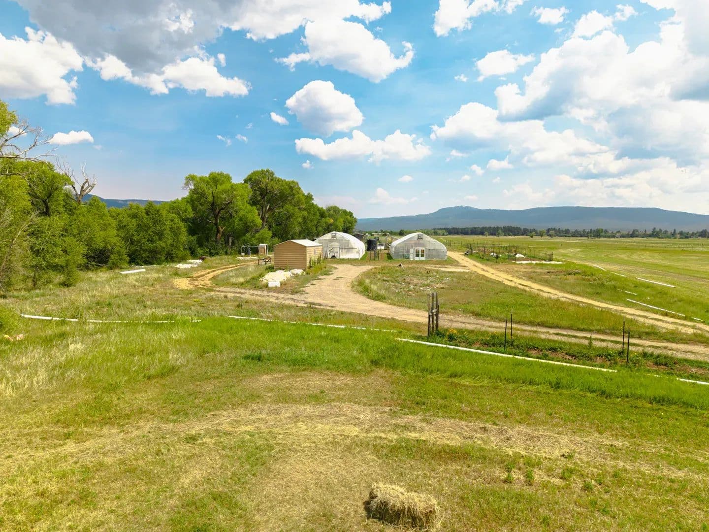 Brazos View Farm encompasses ±13.7 deeded acres of irrigated hay fields and commercial vegetable production, with 13.3 acre-feet of senior water rights from the Parkview Community Ditch. Featuring two commercial greenhouses, solar-powered hydroponics, and multiple outbuildings, this turnkey farm delivers proven income potential in one of the most beautiful settings in northern New Mexico, with the iconic Brazos Cliffs as a dramatic backdrop. Land At an elevation of approximately 7,250 feet in the fertile Chama Valley, the Brazos View Farm combines ±13.7 acres of level, irrigated hay fields, productive vegetable plots, and hydroponic greenhouse space with excellent year-round access off US HWY 64/84. Fully fenced with a gated entrance along the highway, the farm includes timothy grass fields, in-ground vegetable beds, and controlled-environment growing systems. An acequia, sand-bed filtration pond, two large water storage tanks and underground 8-inch mainline with above-ground valves provide efficient irrigation to both outdoor crops and greenhouses.
