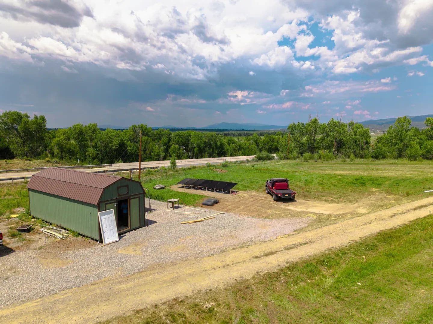 Although the entirety of the farm operation is currently powered by solar and the ditch-supplied irrigation water, grid electricity is available along the highway and a city water tap is already installed near the sales shed, so propsective buyers looking to build a home can live off-grid, on-grid, or a combination of both!