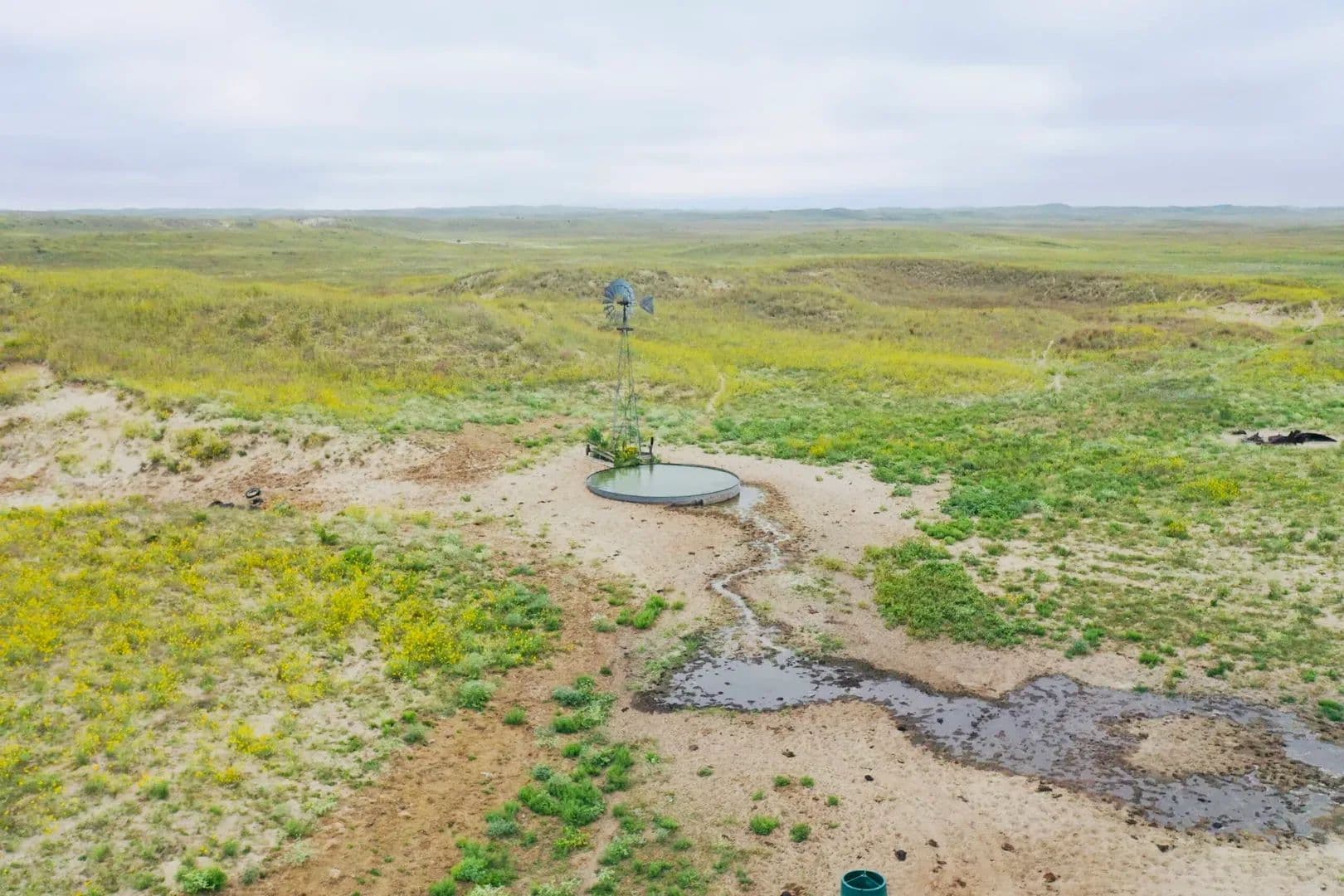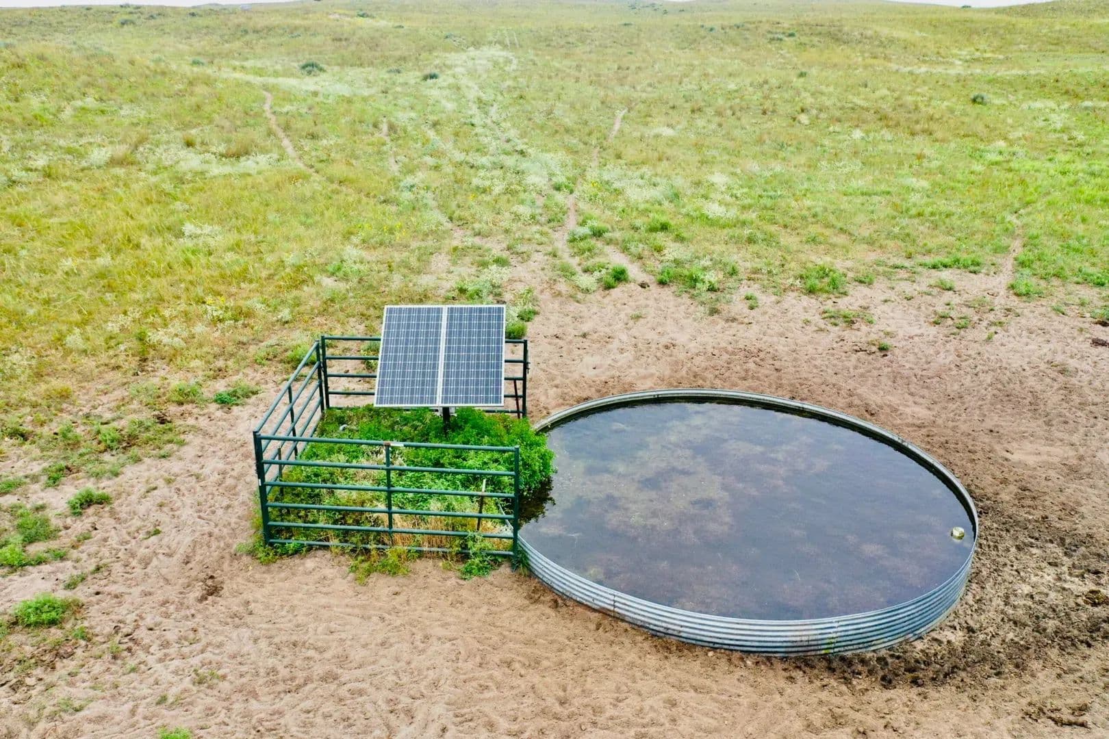 The property features three reliable water sources for livestock, including two windmills and a solar well that was newly installed around three years ago, ensuring consistent access to water throughout the grazing season.