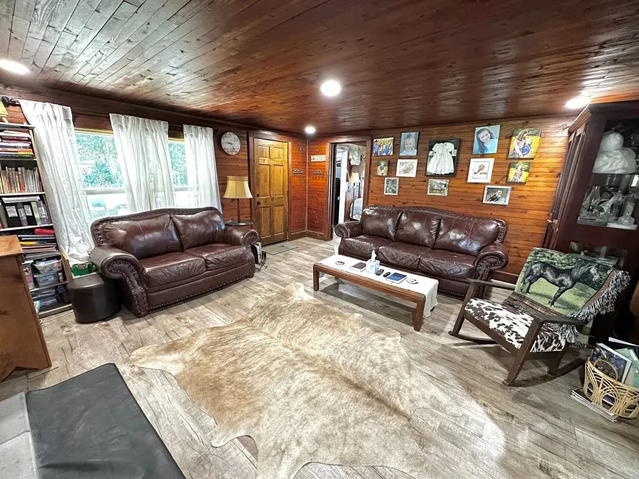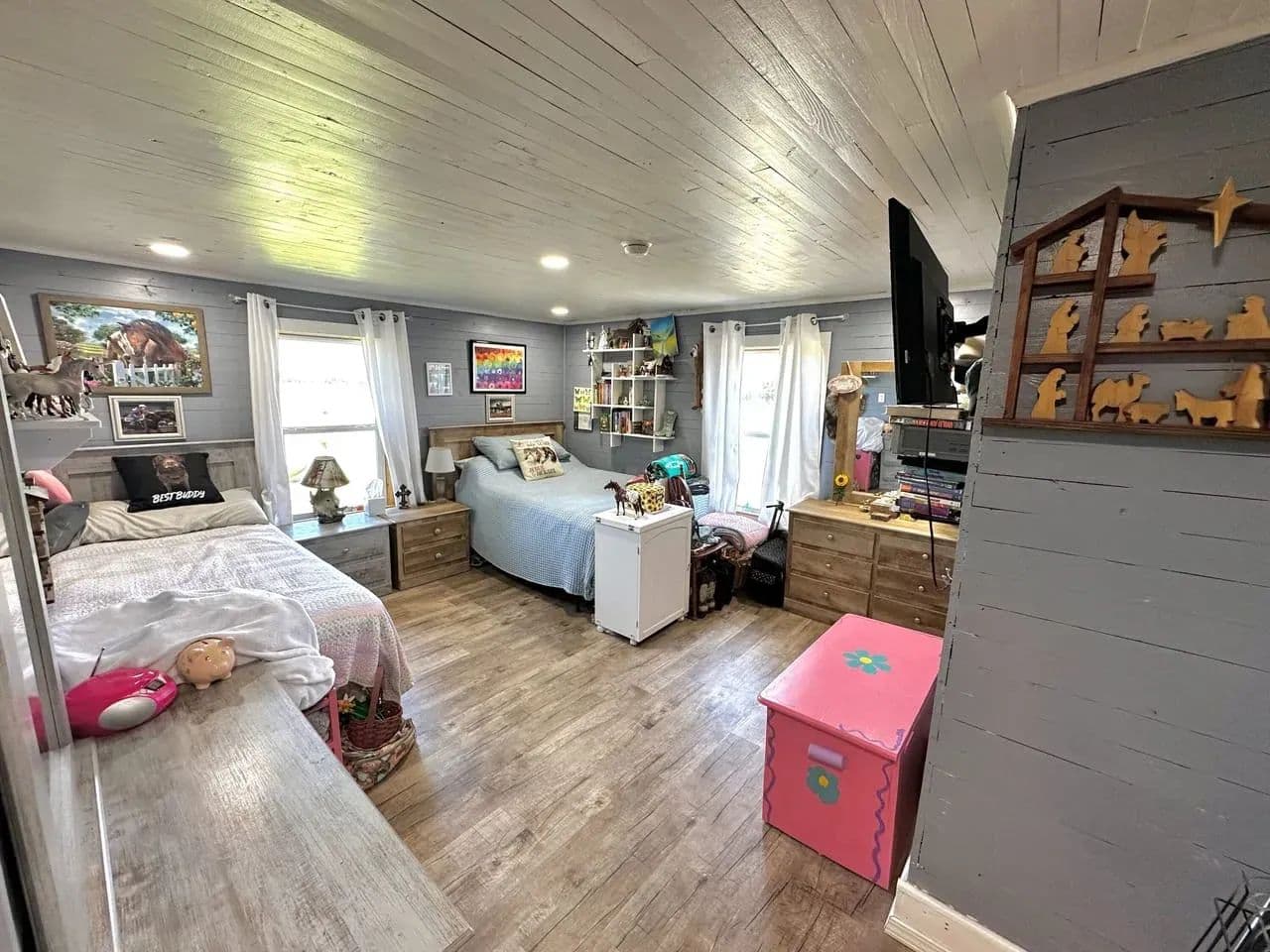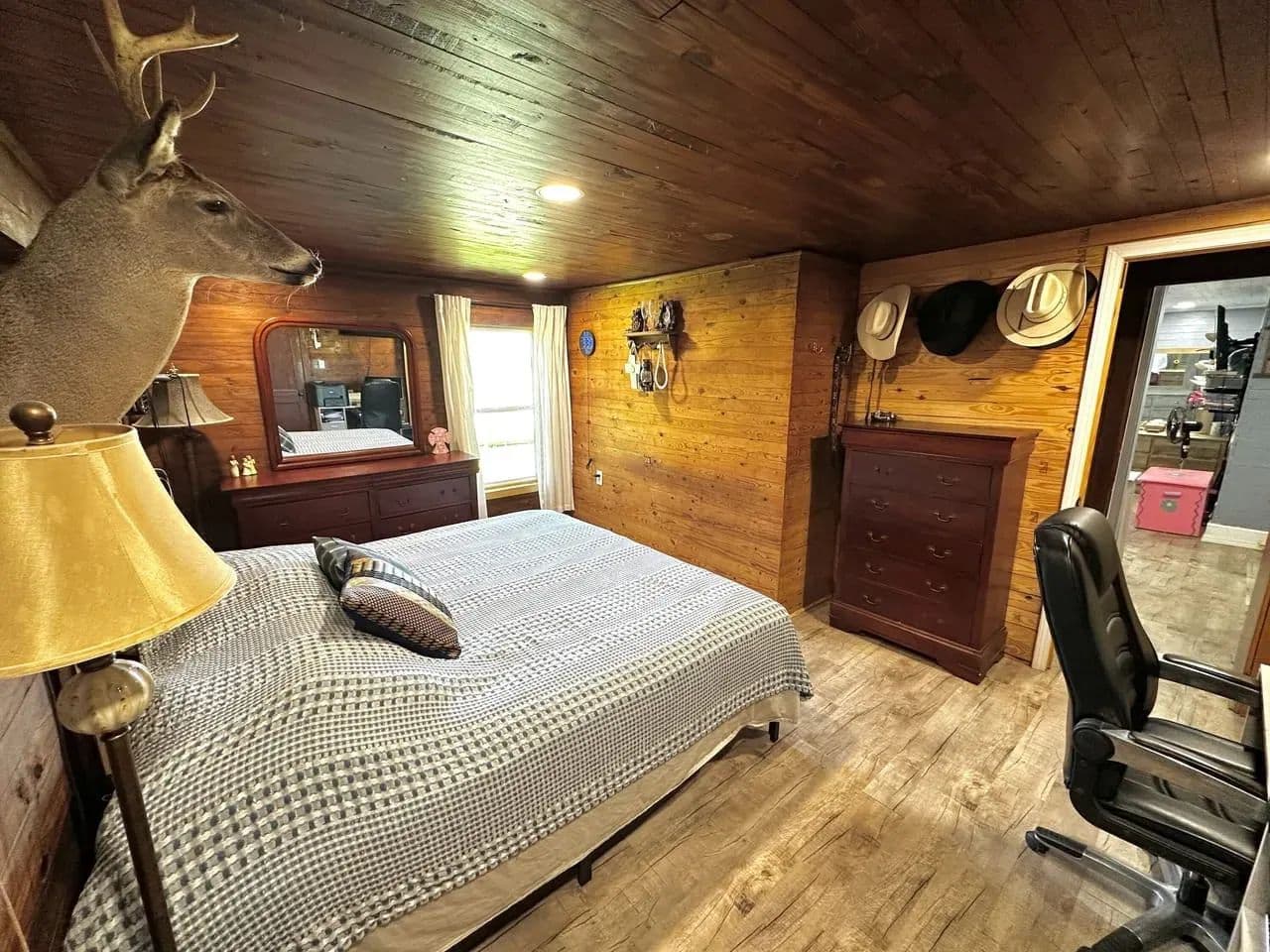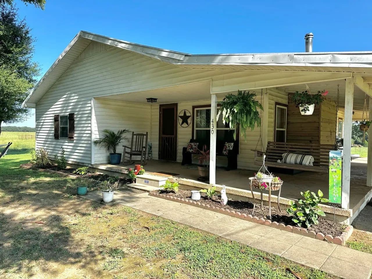 Nestled on the land is an updated 1100 sq ft 1957 farmhouse featuring: original tongue-and-groove walls and ceilings, harvested from the property. New windows, flooring, and an updated bath. Wood-burning stove for cozy, efficient heating. Covered front porch and attached carport- perfect for relaxing evenings and sunset views.