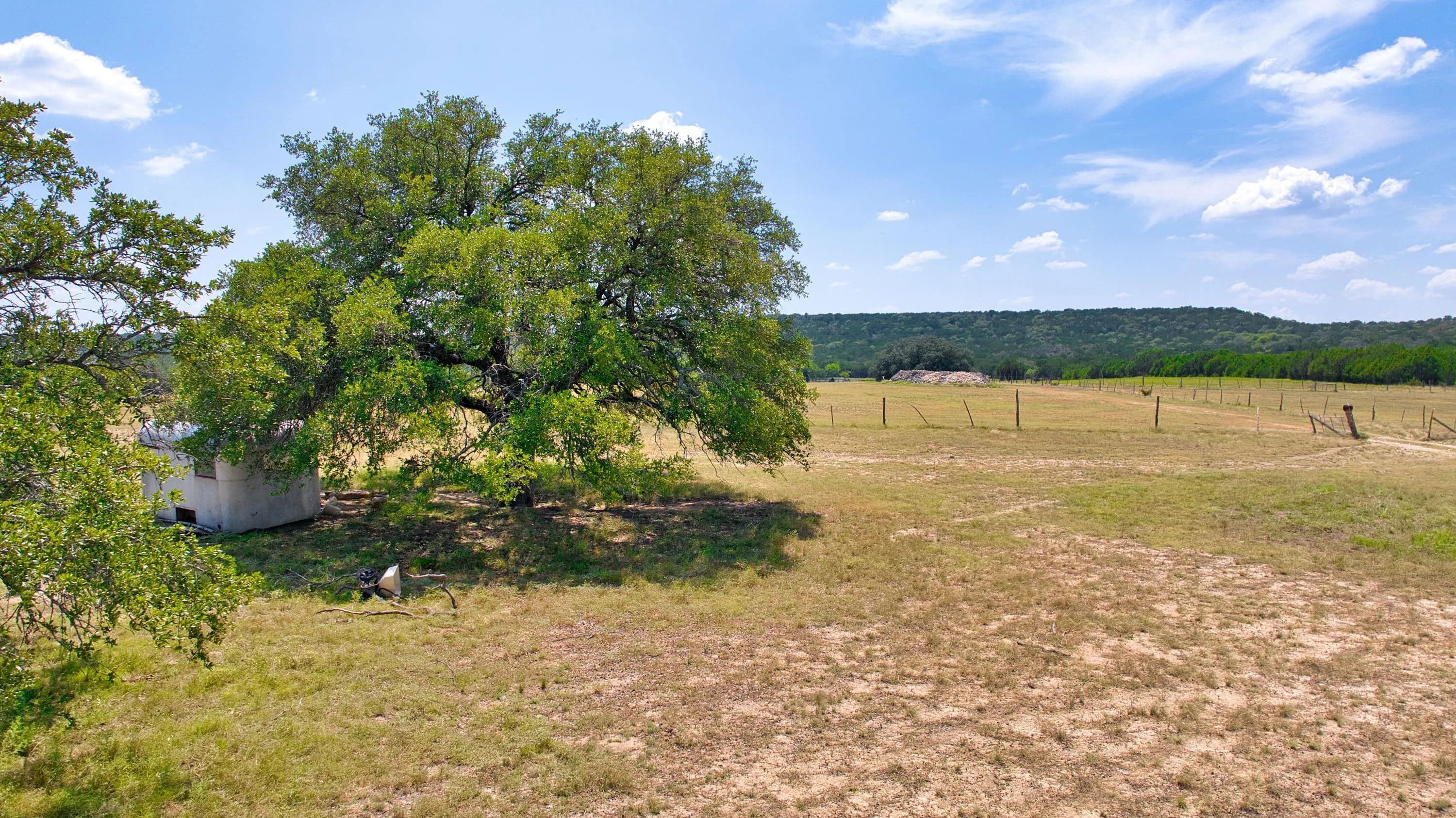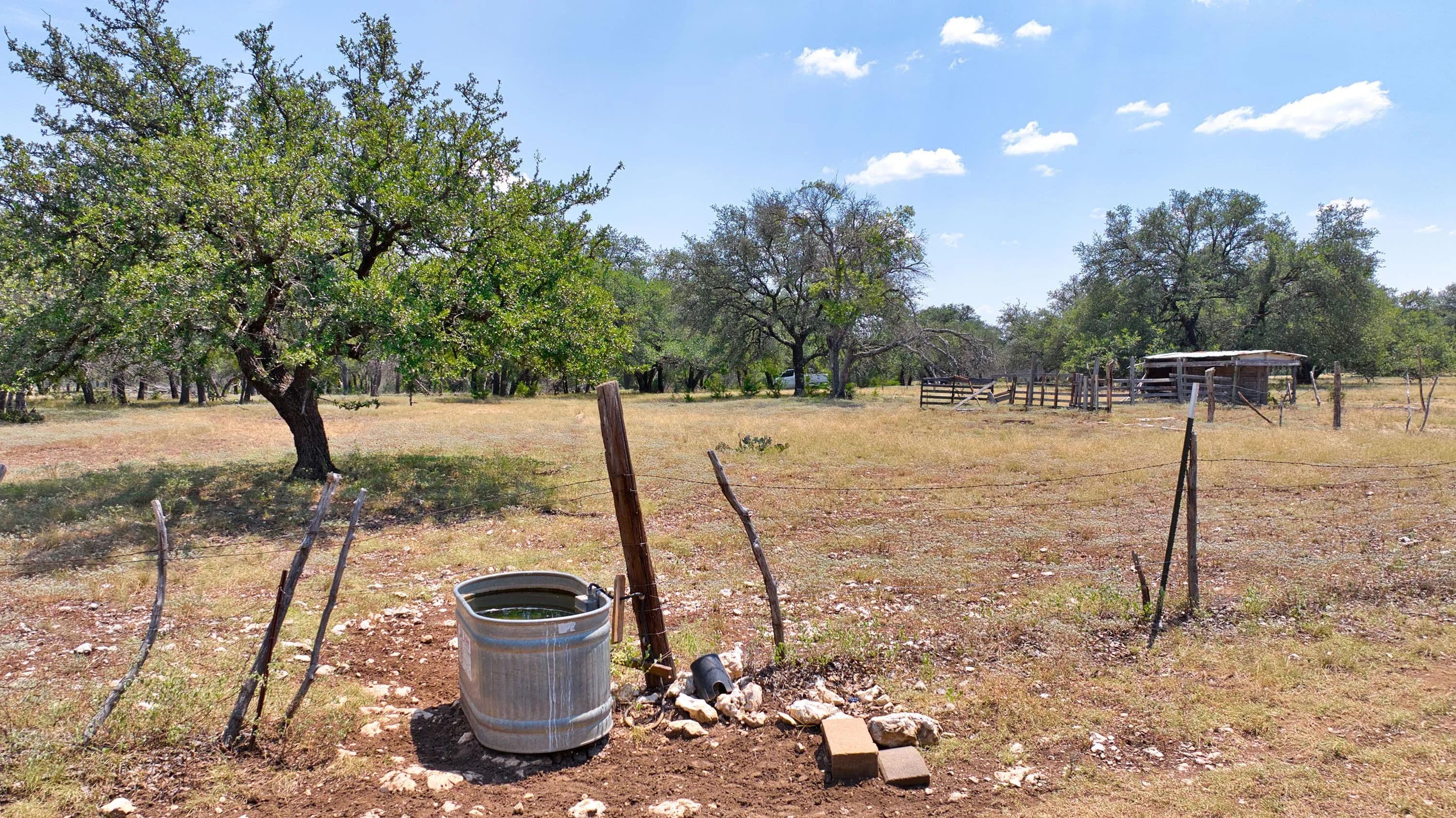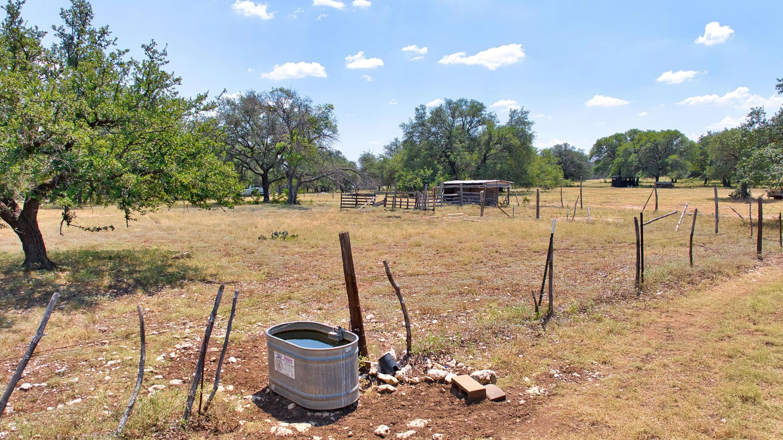 The ranch is fully fenced with barbed wire perimeter fencing and cross-fencing. Water is plentiful, with three stock ponds and multiple troughs supplied by a water meter from Topsey Water.