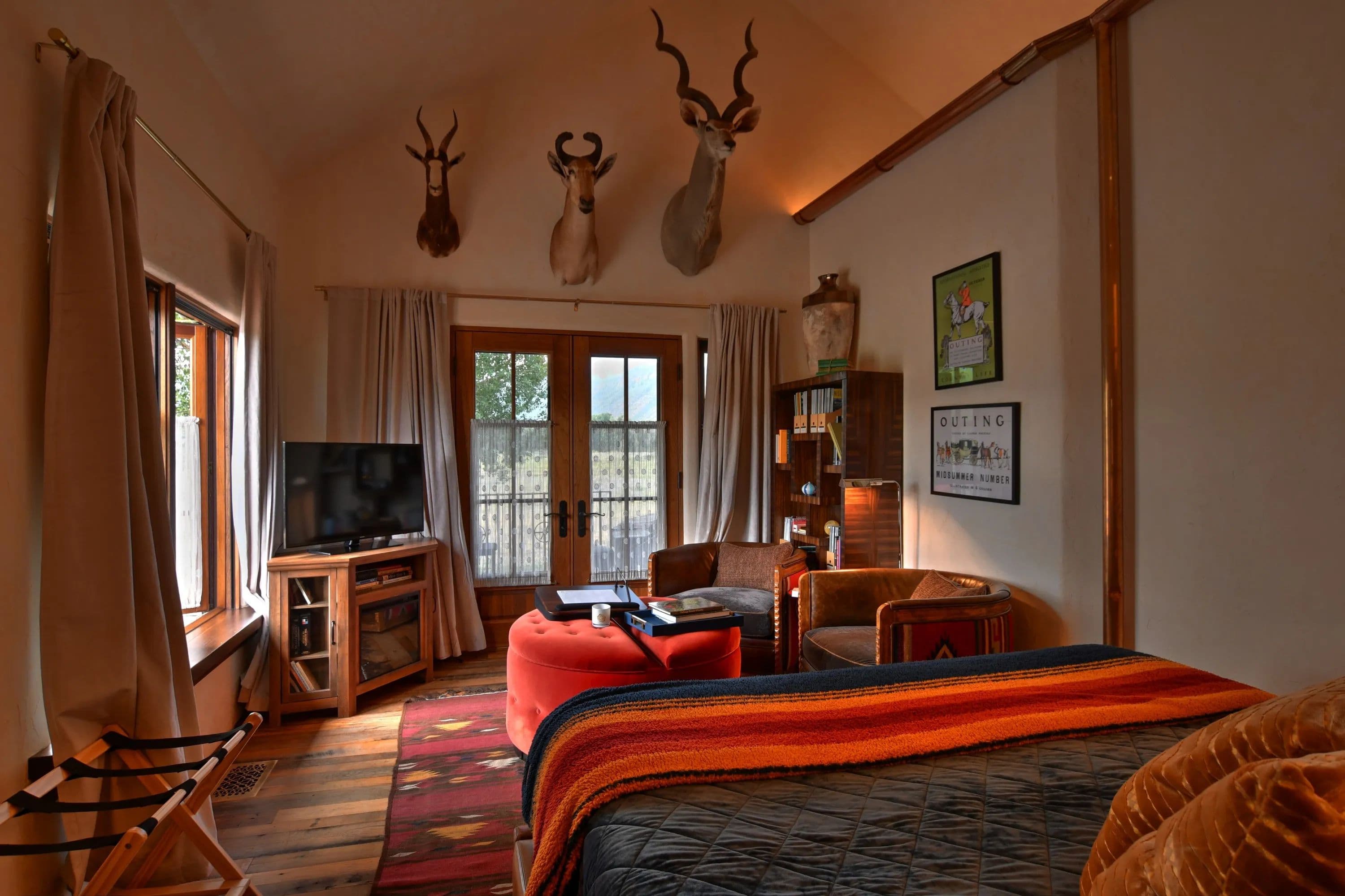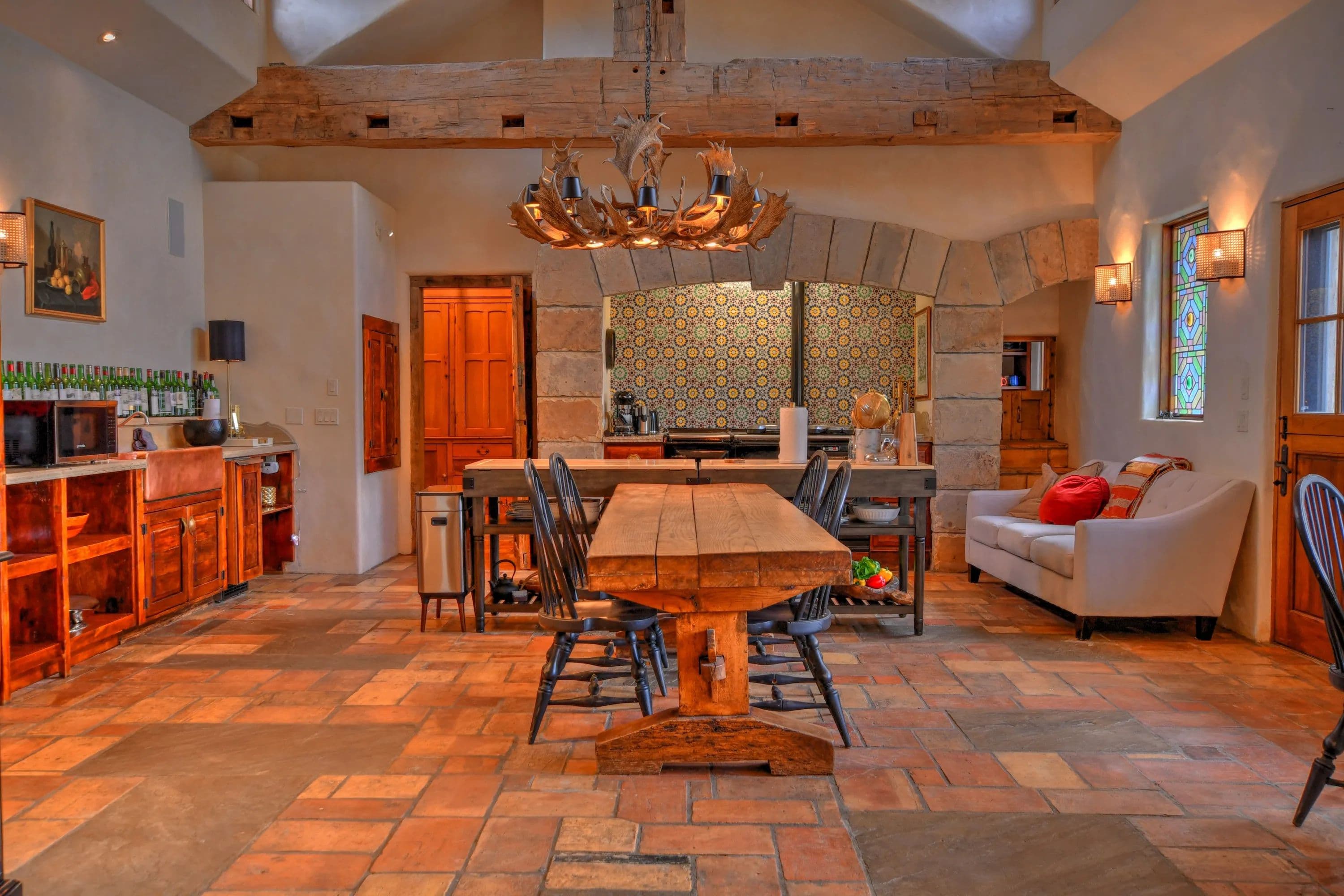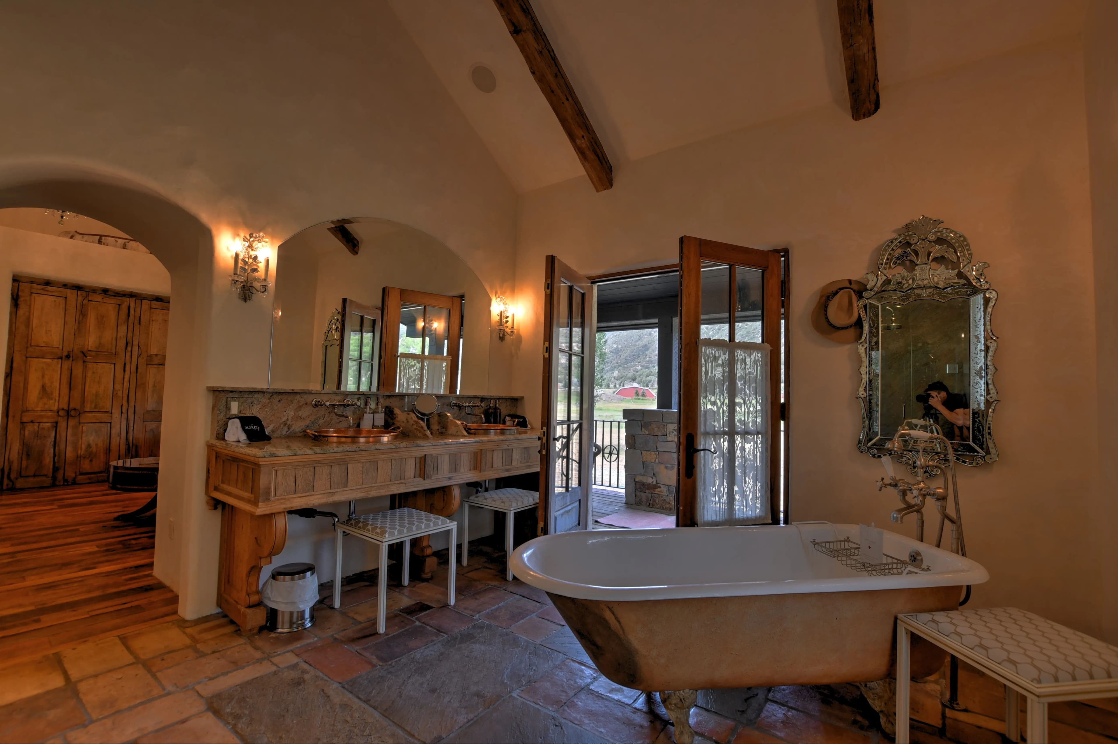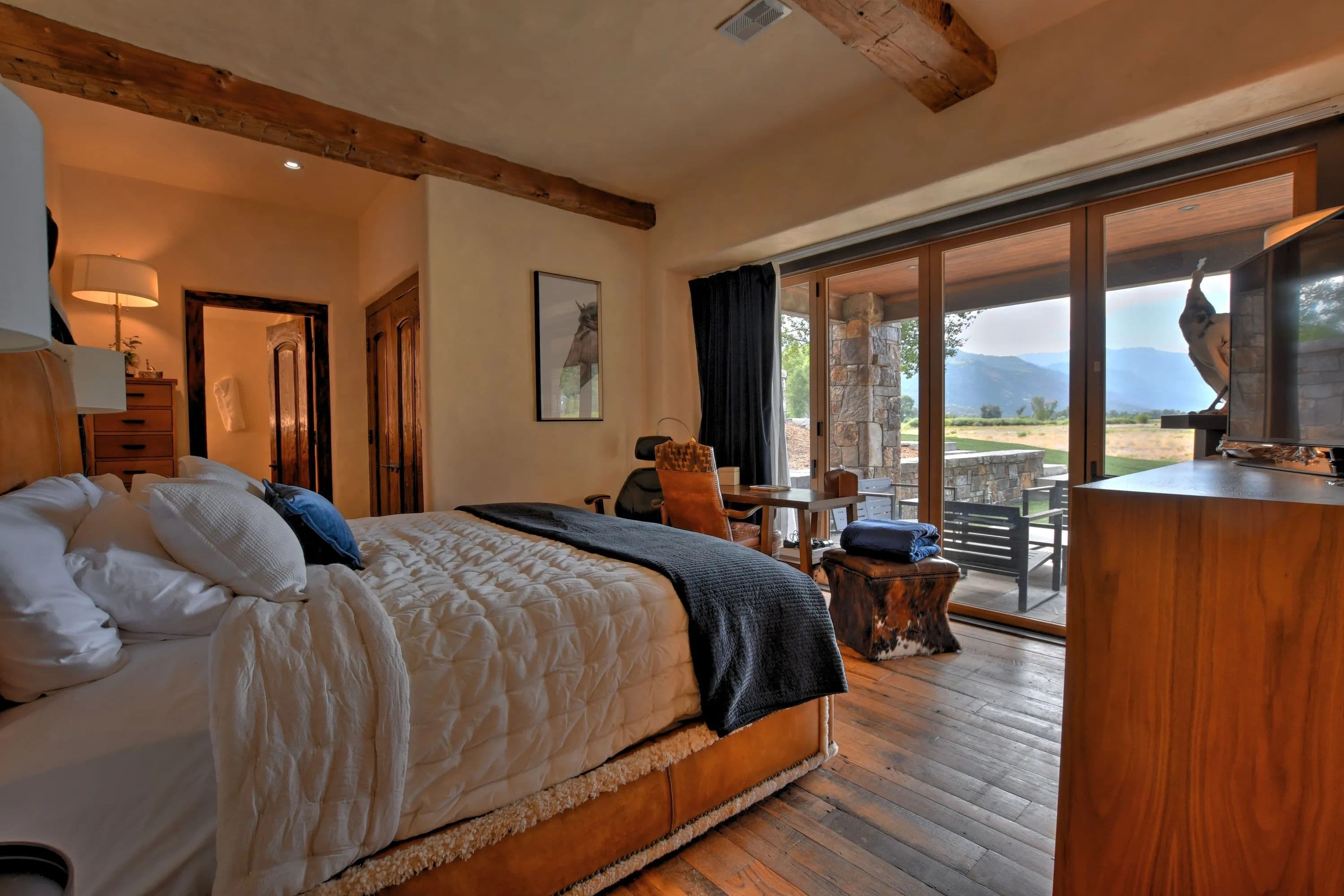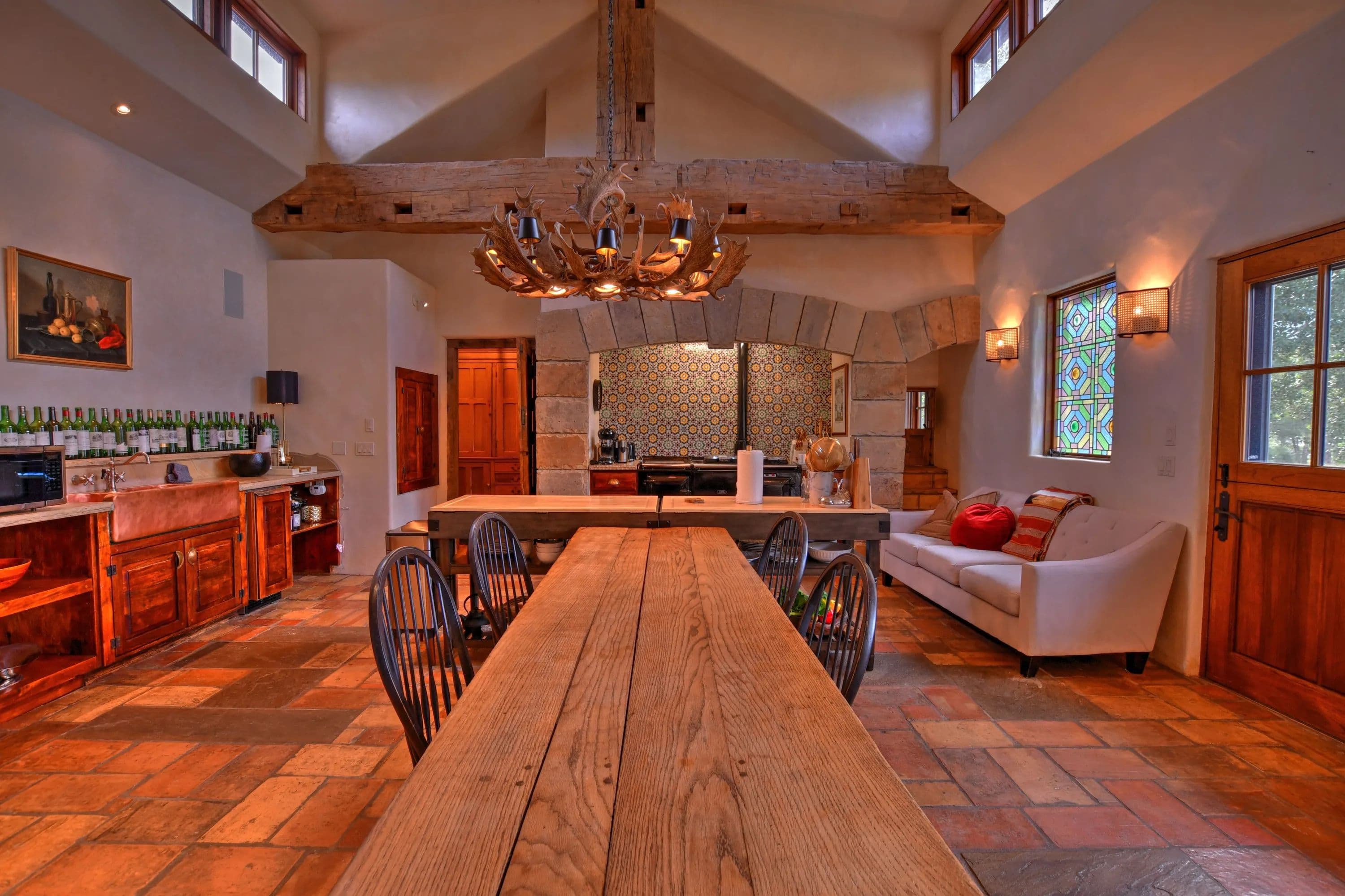 Inspired by the aesthetics of Ralph Lauren's Double RL, the main structures incorporate hand-hewn 200-year-old log timberframes and rustic barnwood finishes, creating a timeless mountain lodge atmosphere. The landscape features rolling meadows, wildflowers, and mature cottonwoodsall supported by robust water rights, including Dallas & Kettle Ditch allocations, multiple wells, and a 9 acre-foot (AF) lease from Ridgway Reservoir (approx. 3 million gallons/year).