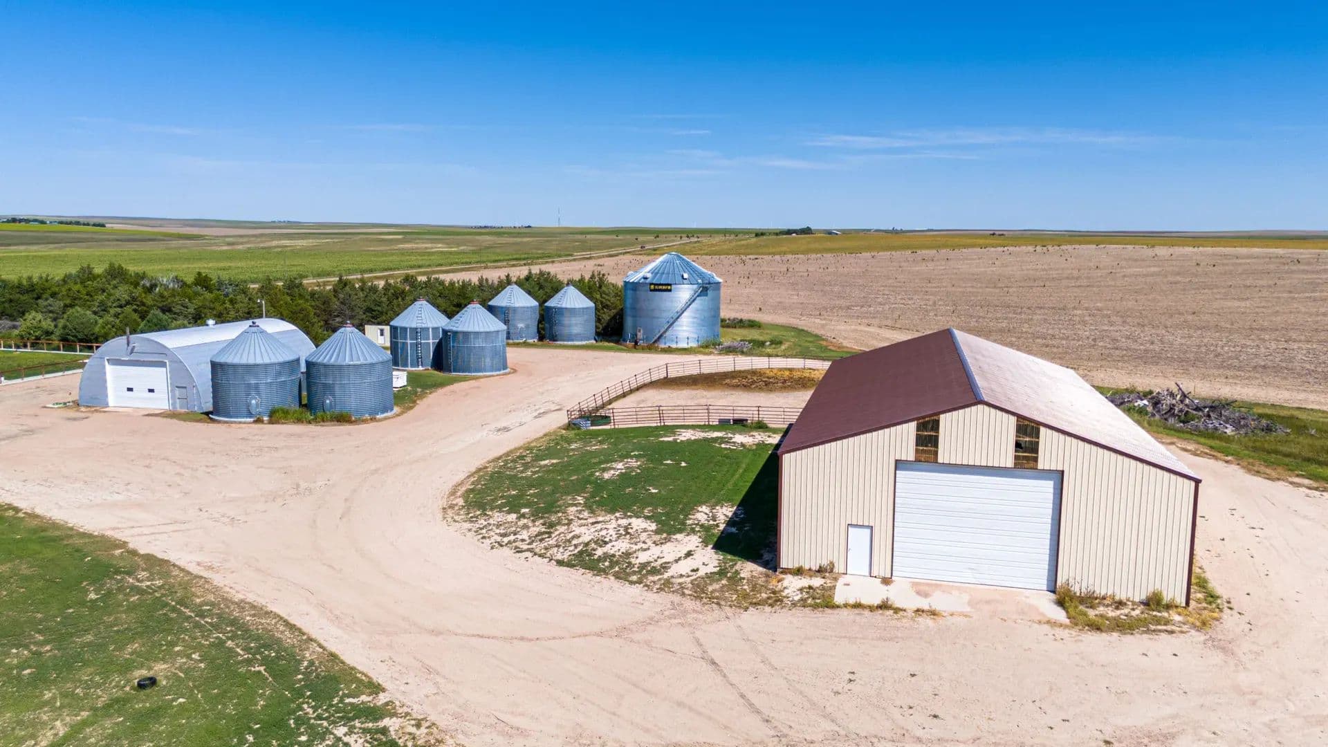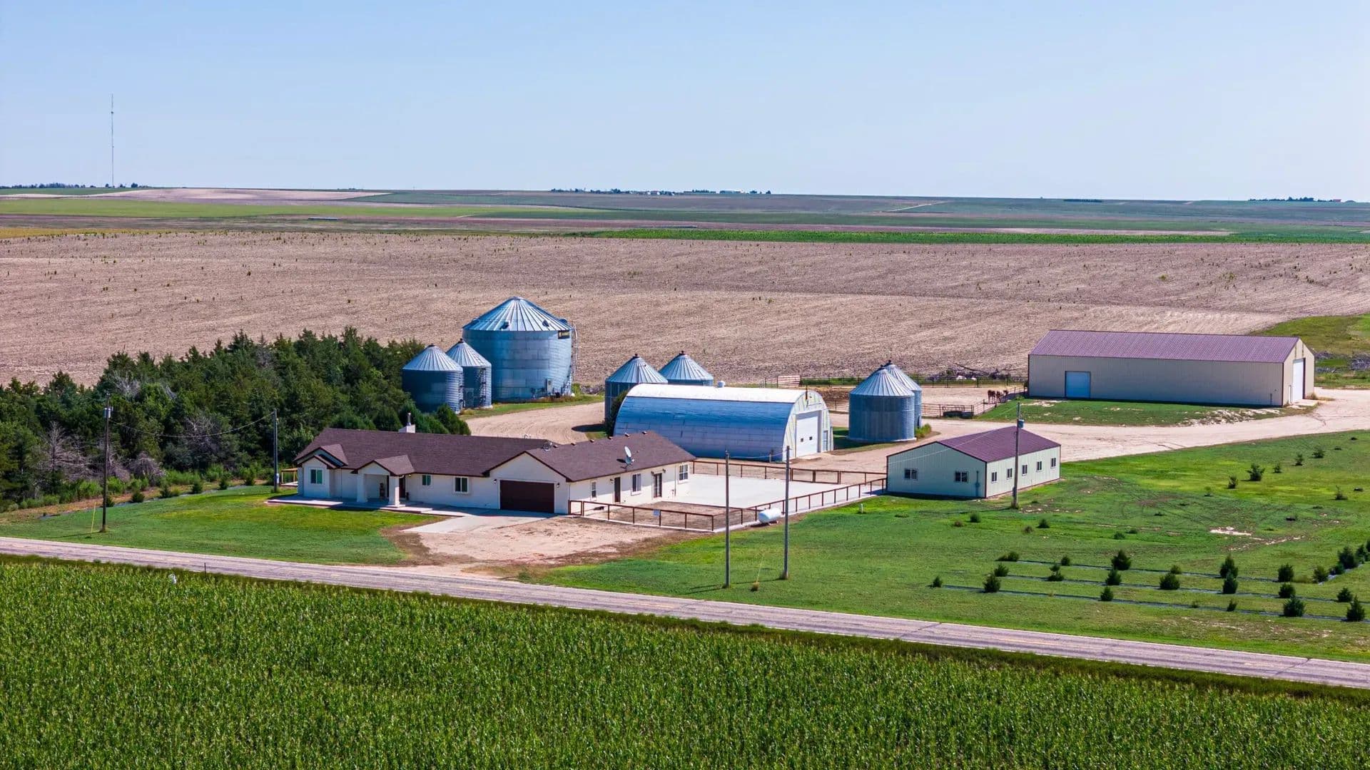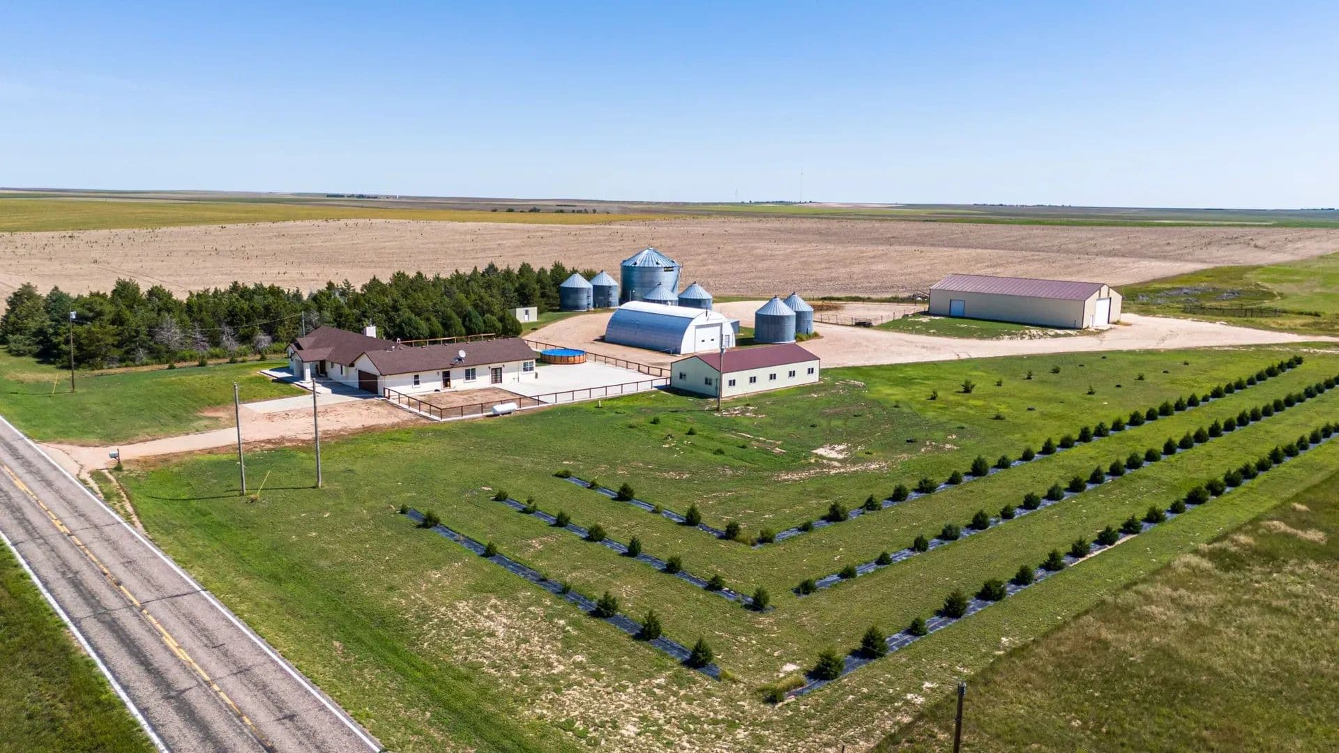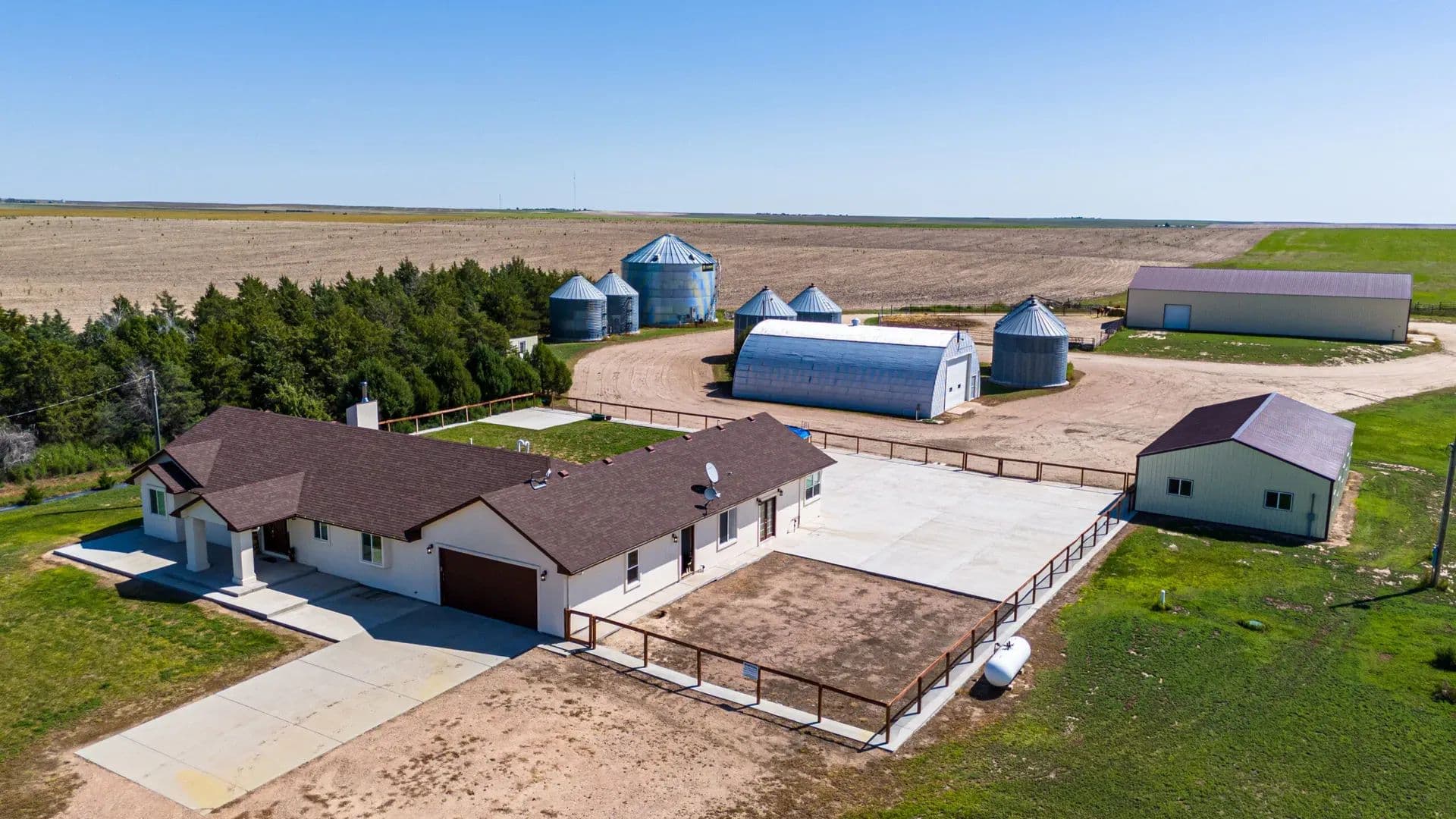 The Jones Farm offers 160± acres with a 4,620 sq ft custom home, guest house, multiple outbuildings, and 7 grain bins. Located 17 mi N of Otis and 20 mi SE of Sterling, CO, this turnkey farm features top-tier improvements, open farmland, and a private, treed homesite. Ideal for farming, livestock, or a rural family headquarters in Colorado’s productive Eastern Plains. Land Covering 160± acres, The Jones Farm offers a balance of production, privacy, and rural lifestyle in a scenic country setting. The homesite is thoughtfully positioned amid mature tree rows on the north and south, offering protection from prevailing winds and enhancing the sense of privacy and seclusion. The land itself is gently rolling and highly functional, suitable for continued farming, grazing, and rural living. A large, fenced concrete patio and yard area surround the main residence, creating an ideal space for recreation, entertaining, or pets. With plenty of room to grow and expand, the land serves as a well-rounded base for a wide range of agricultural pursuits.