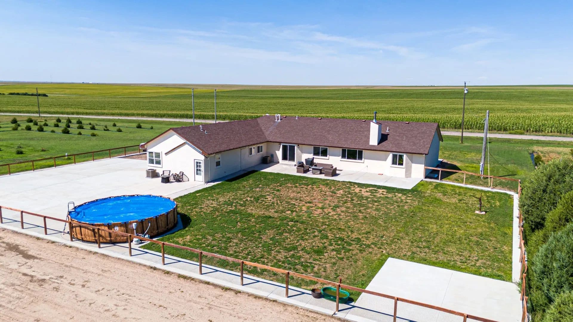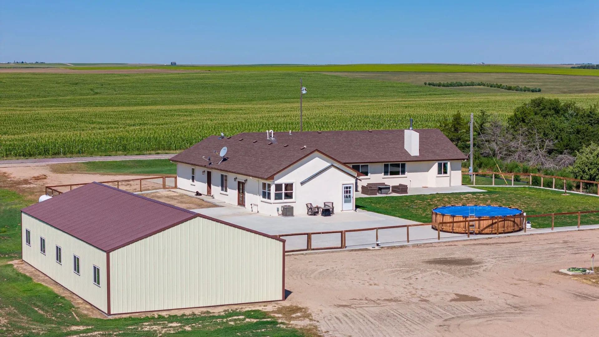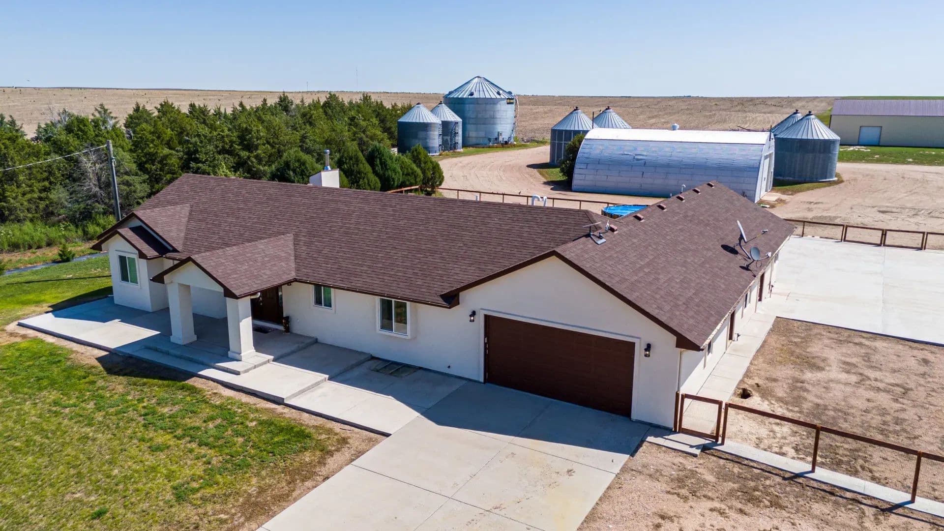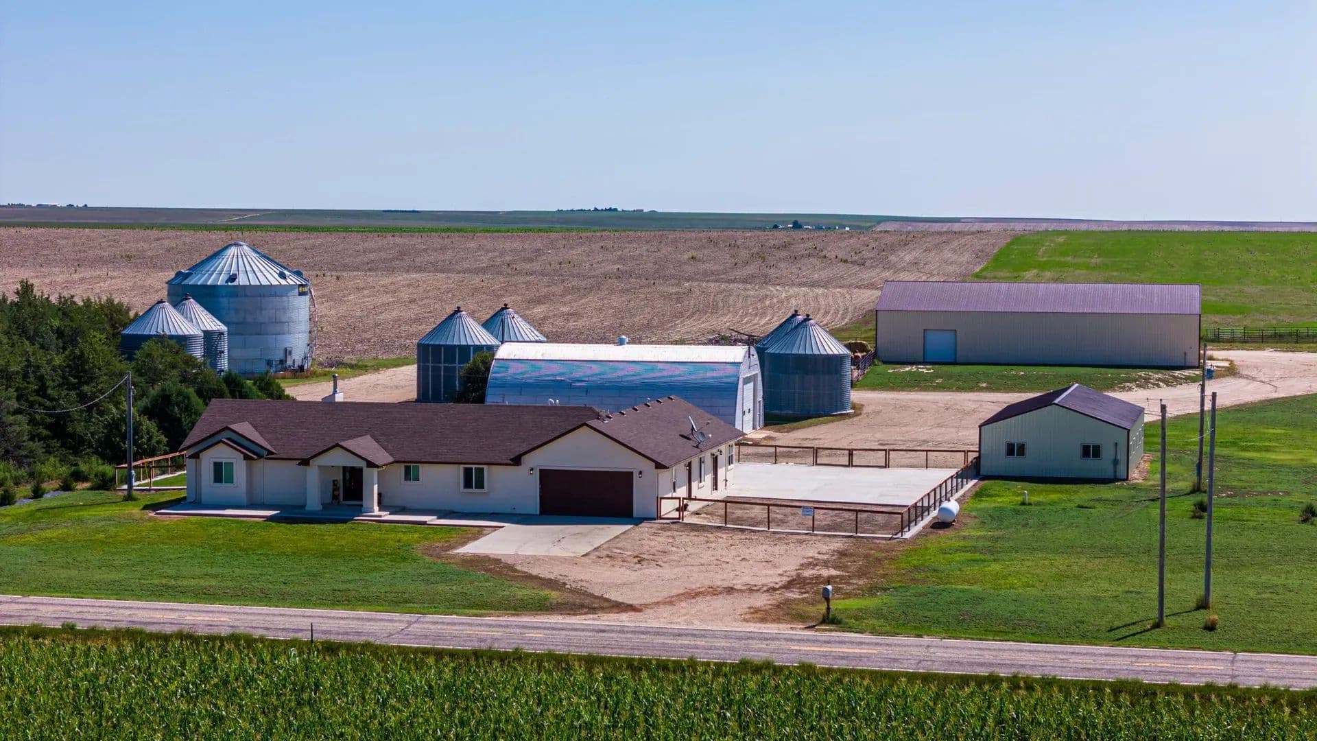 The Jones Farm offers 160± acres with a 4,620 sq ft custom home, guest house, multiple outbuildings, and 7 grain bins. Located 17 mi N of Otis and 20 mi SE of Sterling, CO, this turnkey farm features top-tier improvements, open farmland, and a private, treed homesite. Ideal for farming, livestock, or a rural family headquarters in Colorado’s productive Eastern Plains. Land Covering 160± acres, The Jones Farm offers a balance of production, privacy, and rural lifestyle in a scenic country setting. The homesite is thoughtfully positioned amid mature tree rows on the north and south, offering protection from prevailing winds and enhancing the sense of privacy and seclusion. The land itself is gently rolling and highly functional, suitable for continued farming, grazing, and rural living. A large, fenced concrete patio and yard area surround the main residence, creating an ideal space for recreation, entertaining, or pets. With plenty of room to grow and expand, the land serves as a well-rounded base for a wide range of agricultural pursuits.