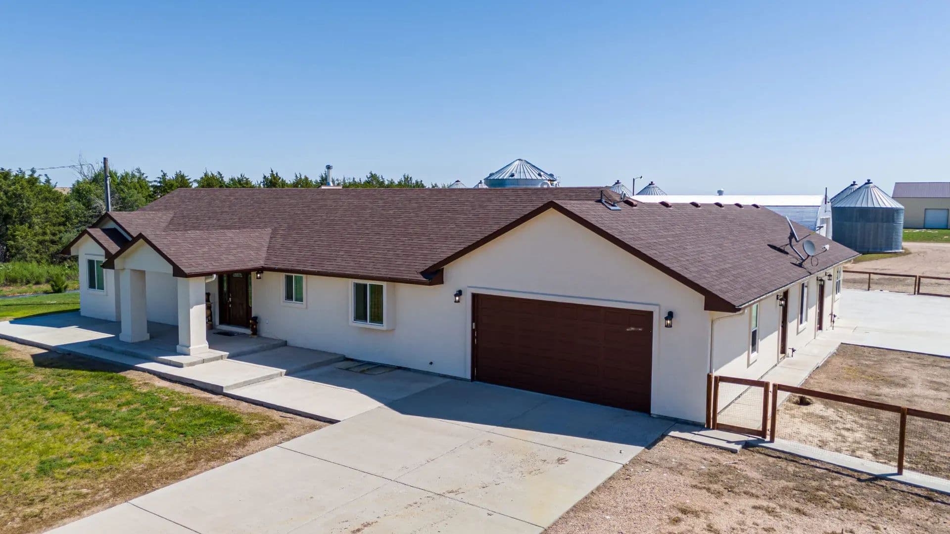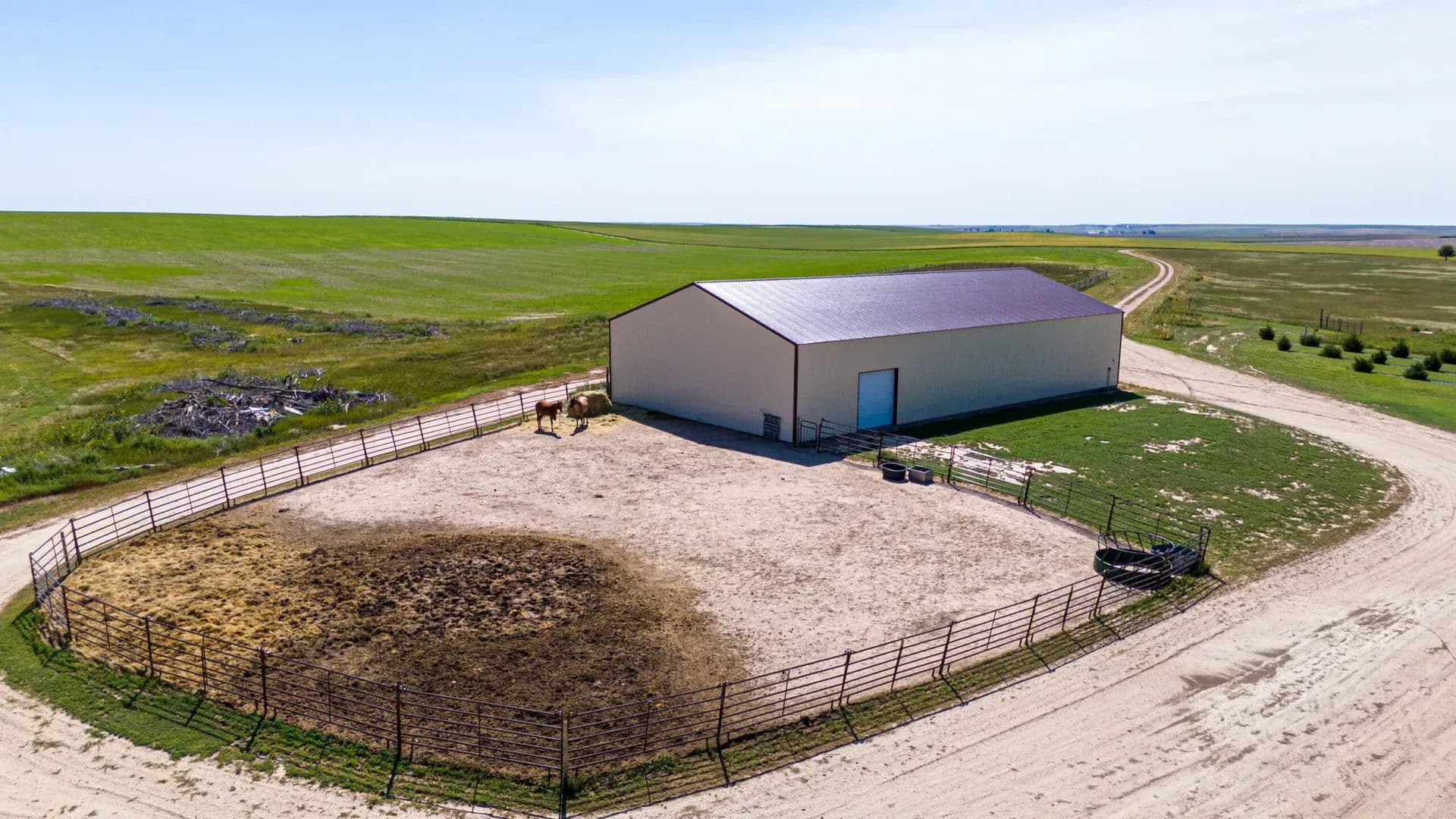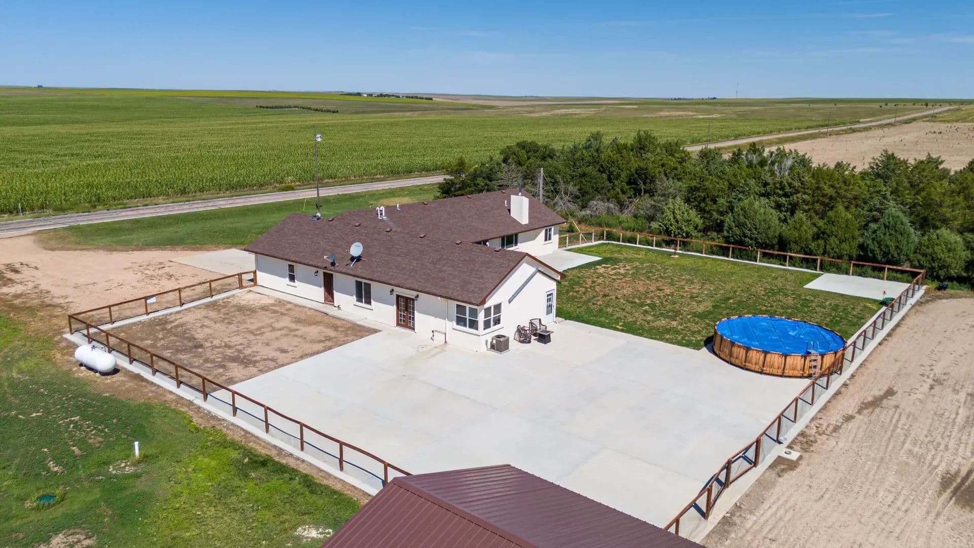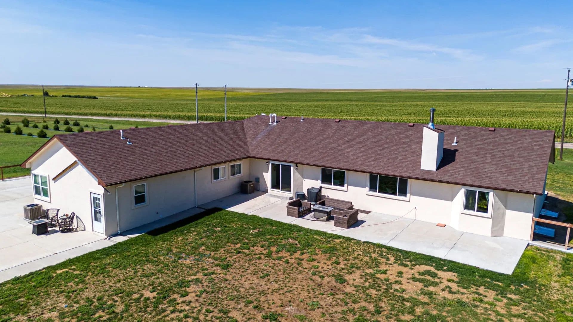 The Jones Farm offers 160± acres with a 4,620 sq ft custom home, guest house, multiple outbuildings, and 7 grain bins. Located 17 mi N of Otis and 20 mi SE of Sterling, CO, this turnkey farm features top-tier improvements, open farmland, and a private, treed homesite. Ideal for farming, livestock, or a rural family headquarters in Colorado’s productive Eastern Plains. Land Covering 160± acres, The Jones Farm offers a balance of production, privacy, and rural lifestyle in a scenic country setting. The homesite is thoughtfully positioned amid mature tree rows on the north and south, offering protection from prevailing winds and enhancing the sense of privacy and seclusion. The land itself is gently rolling and highly functional, suitable for continued farming, grazing, and rural living. A large, fenced concrete patio and yard area surround the main residence, creating an ideal space for recreation, entertaining, or pets. With plenty of room to grow and expand, the land serves as a well-rounded base for a wide range of agricultural pursuits.