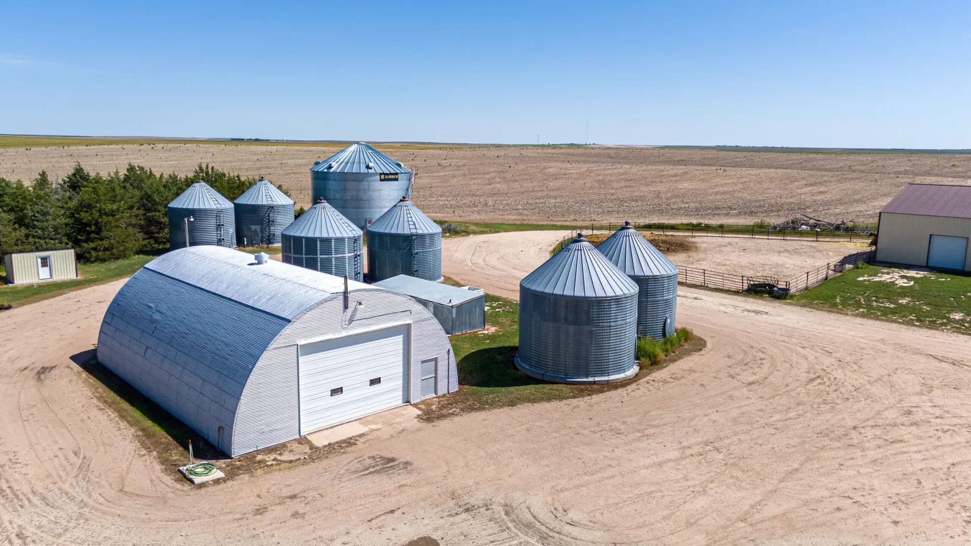 Agriculture The Jones Farm is an established agricultural operation with the infrastructure in place for both farming and equipment storage. Farm improvements include a 50′ x 100′ farm implement building, a 40′ x 60′ Quonset building, and a 30′ x 60′ shop, providing substantial room for machinery, tools, repairs, and indoor storage. The seven on-site grain bins support grain handling and storage, helping facilitate a more self-sufficient operation with reduced hauling needs during harvest.