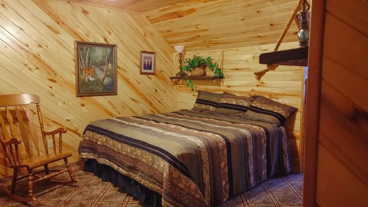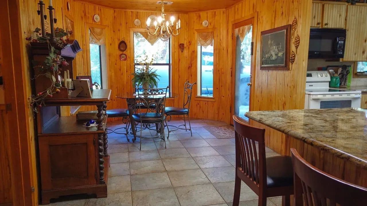 Overlooking the water is a 3,804 sq ft rustic log cabin with expansive windows that frame stunning views of the lake. The home features four bedrooms and two bathrooms in a spacious two-story layout, with the primary suite conveniently located downstairs. The primary suite is exceptionally large, offering a comfortable sitting area, a massive bathroom, and private access to a deck complete with a hot tub for the ultimate retreat. Inside, the living area is anchored by a charming wood-burning fireplace, creating a warm and inviting focal point. A breakfast nook provides the perfect spot to enjoy casual meals with a view, while a large pantry and laundry room add convenience and functionality. A generous front porch offers an ideal place to start the morning or wind down in the evening while overlooking the peaceful lake. Combining the warmth and charm of log cabin living with modern comfort, this home is equally well-suited as a full-time residence or a weekend getaway.