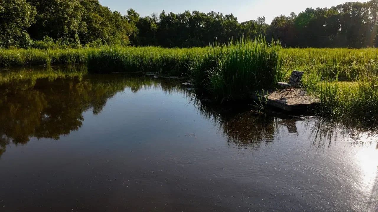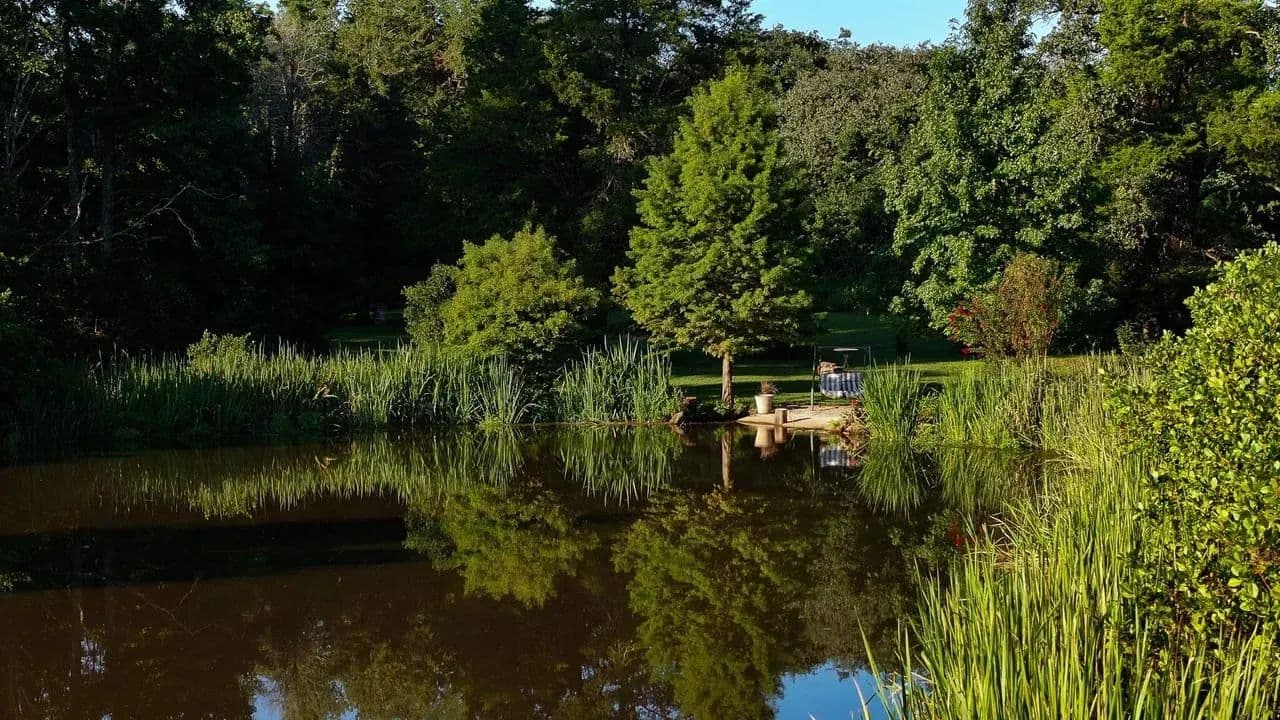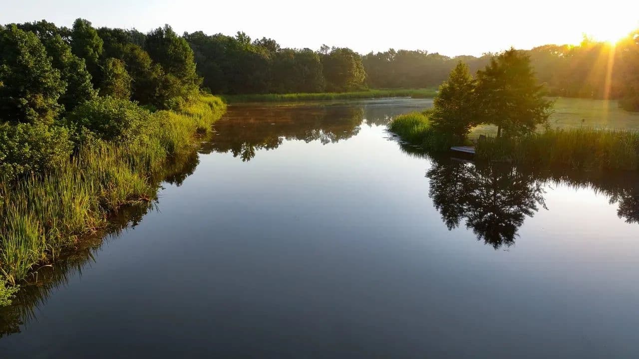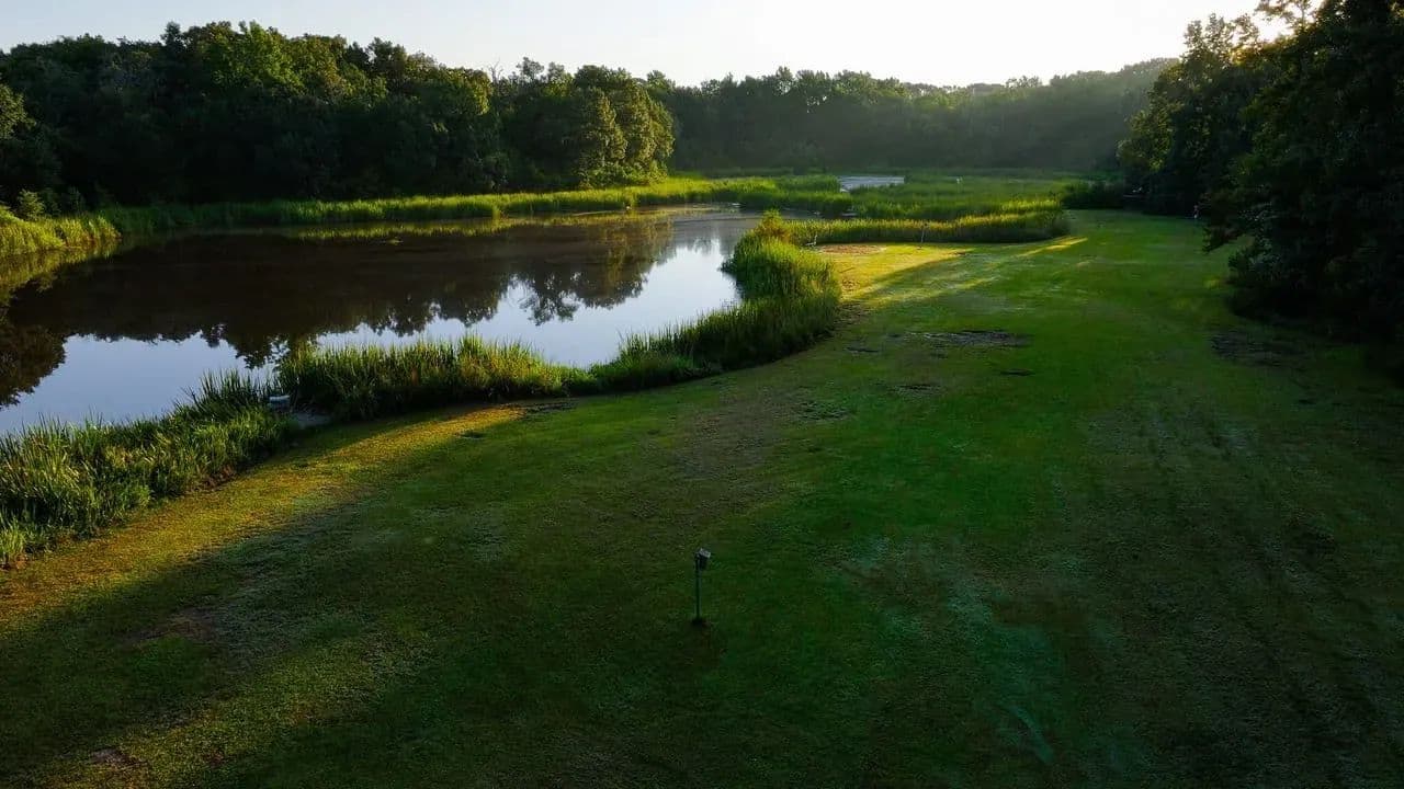 Four well-placed fishing docks provide excellent access to the water, while the lake itself is hidden from the road by mature tree cover—creating unmatched privacy and seclusion. In the winter, thousands of ducks pour into the lake, making this property a dream for waterfowl enthusiasts.