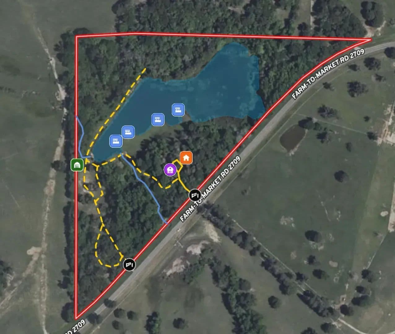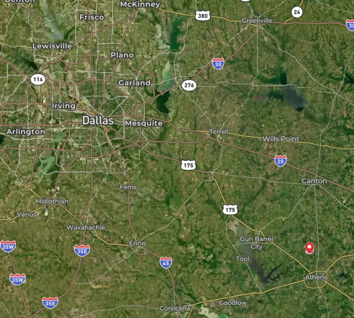 Hidden Lake Ranch offers a rare blend of trophy bass fishing, abundant wildlife, rustic charm, and convenience. Despite its seclusion, the property features paved road access, a winding driveway, and is only 10 miles from downtown Athens, which offers shopping and dining. Even better, it’s only 1 hour and 10 minutes from downtown Dallas, making weekend getaways simple and convenient.