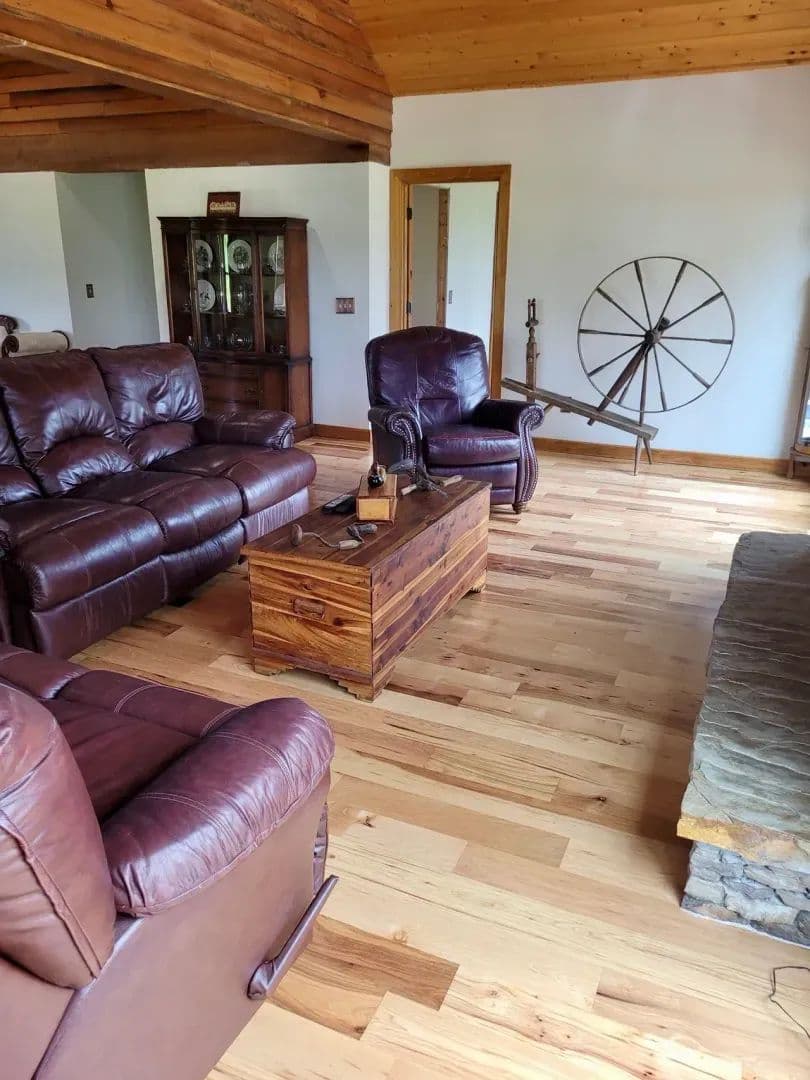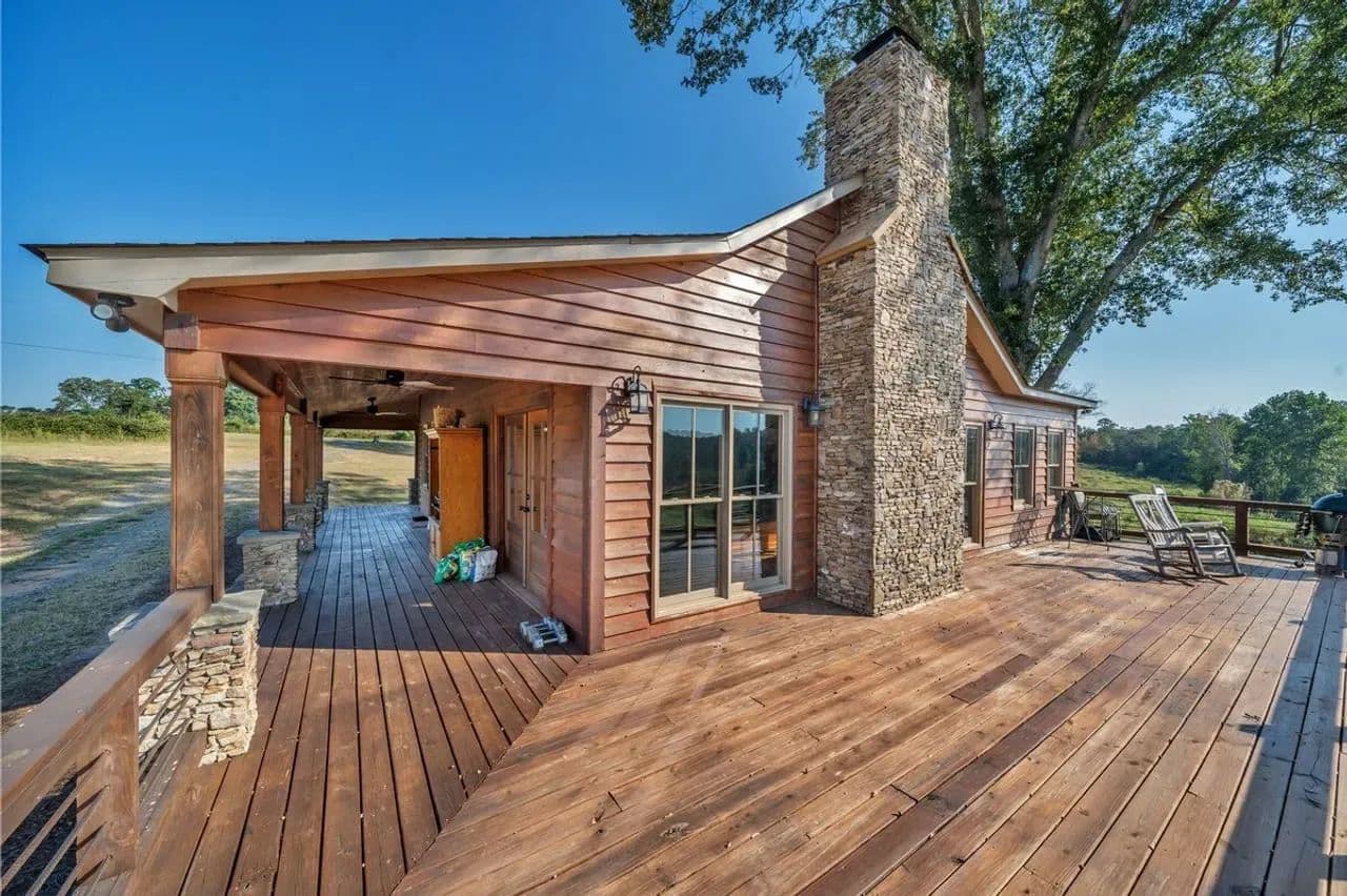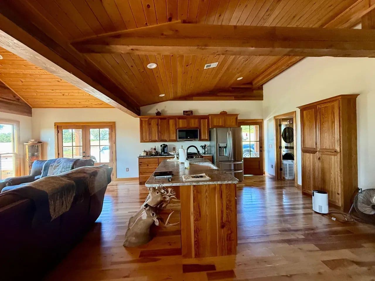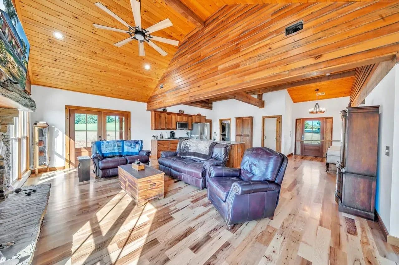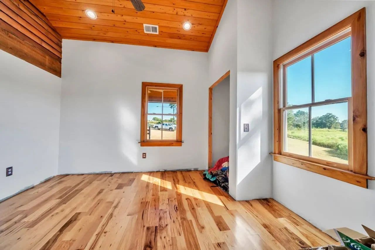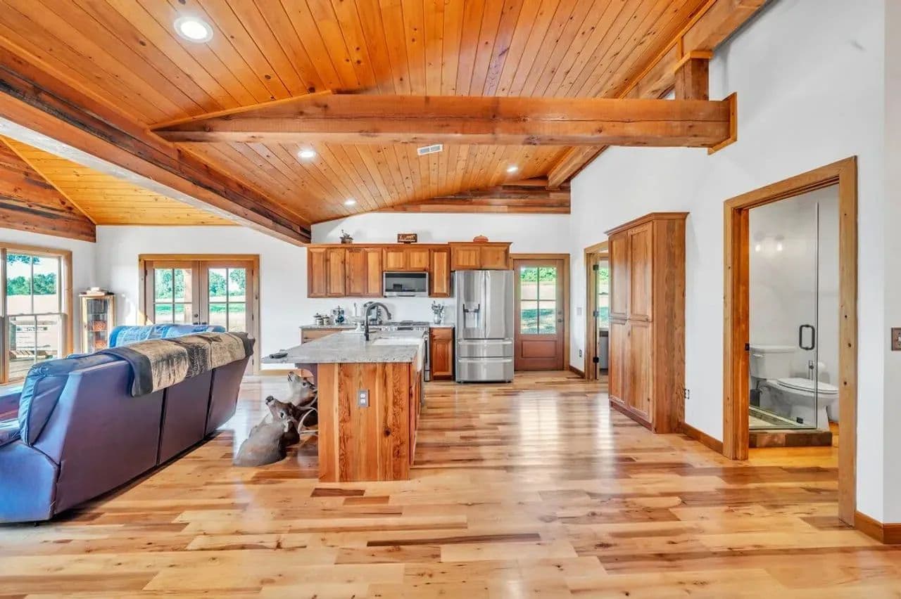 2br 2ba 1295 sq ft beautiful custom wood cabin. Cypress siding and ceilings, hickory floors, granite countertops, heart pine cabinets, 2.5 ton heat pump, LP gas, tankless water heater Rinnai unit, gas fireplace, and gas stovetop.