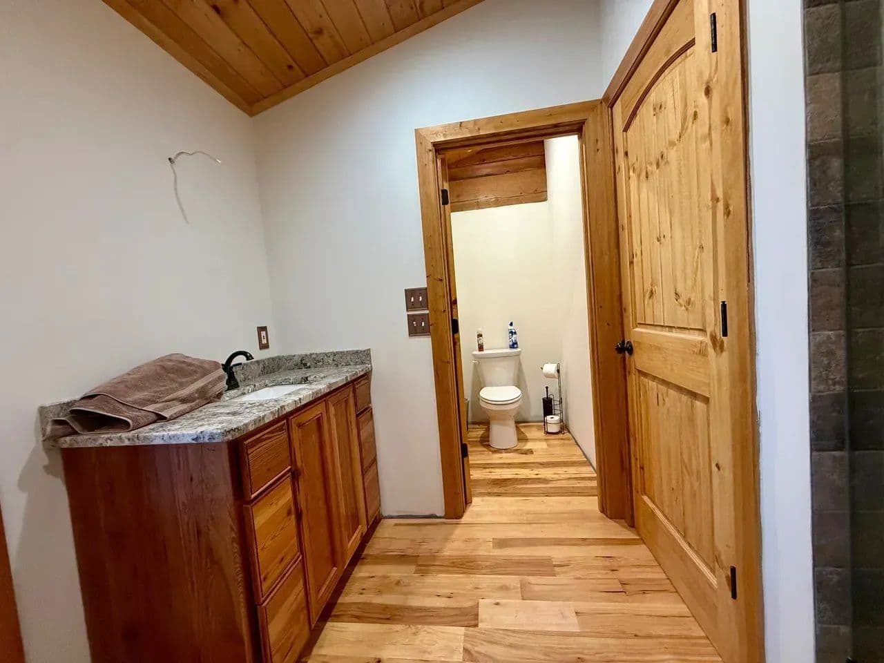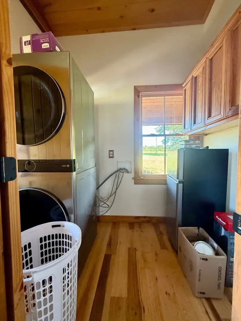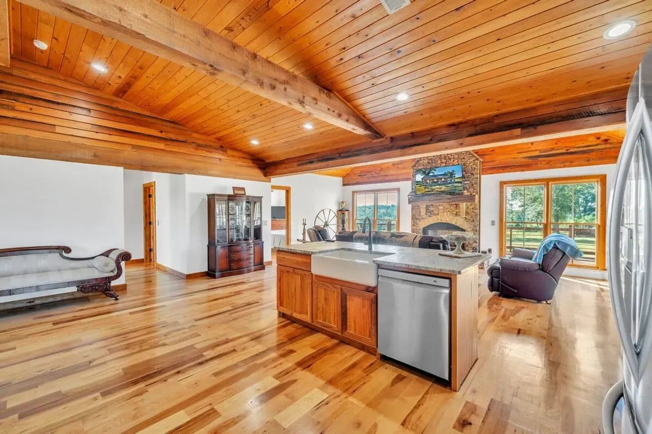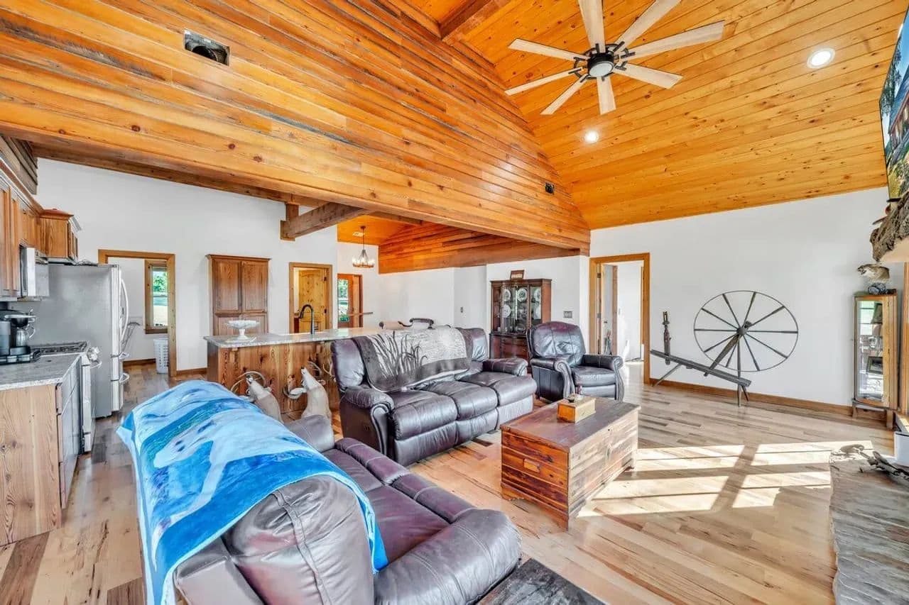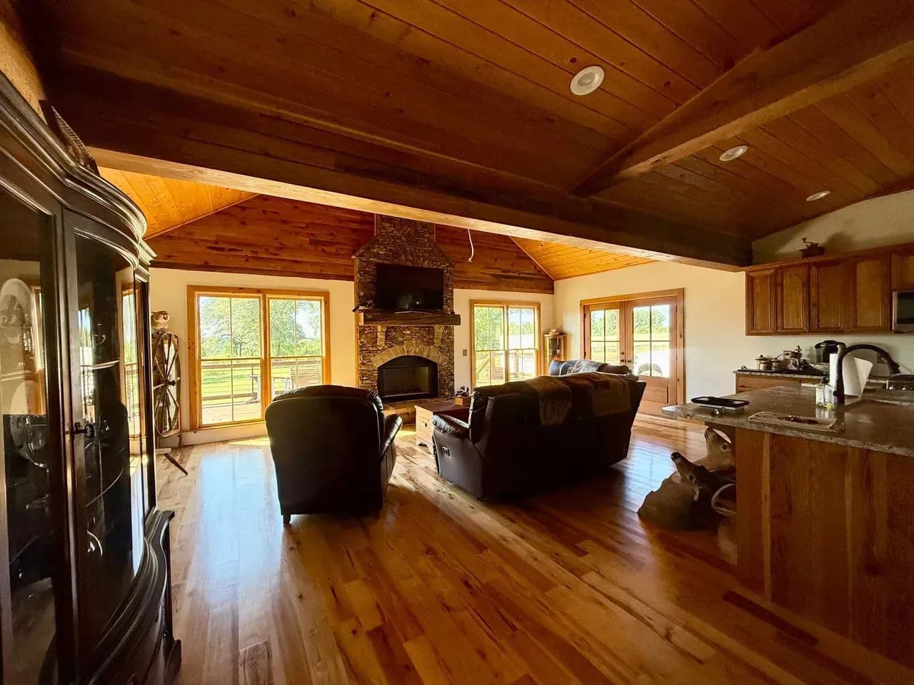 2br 2ba 1295 sq ft beautiful custom wood cabin. Cypress siding and ceilings, hickory floors, granite countertops, heart pine cabinets, 2.5 ton heat pump, LP gas, tankless water heater Rinnai unit, gas fireplace, and gas stovetop.