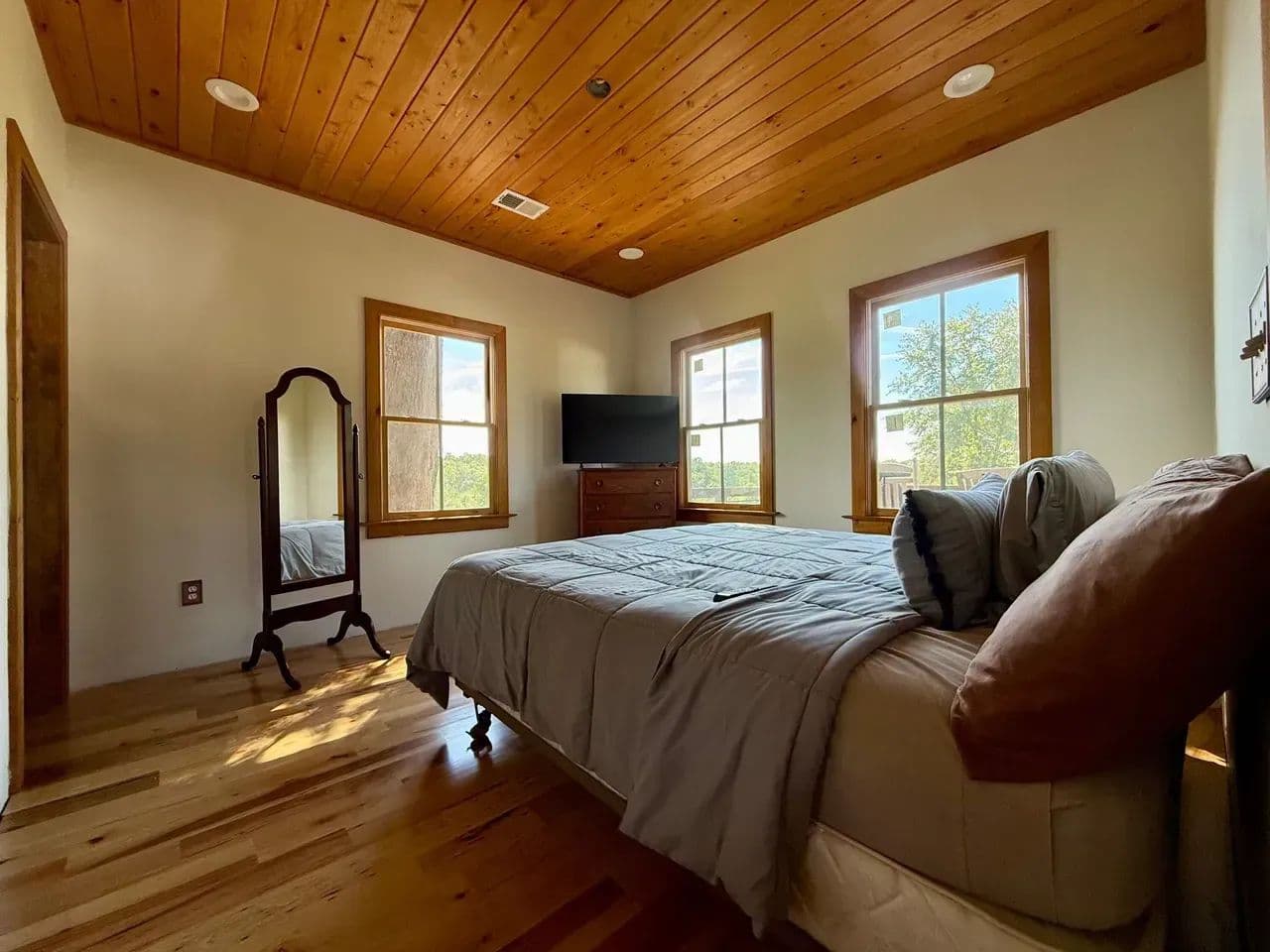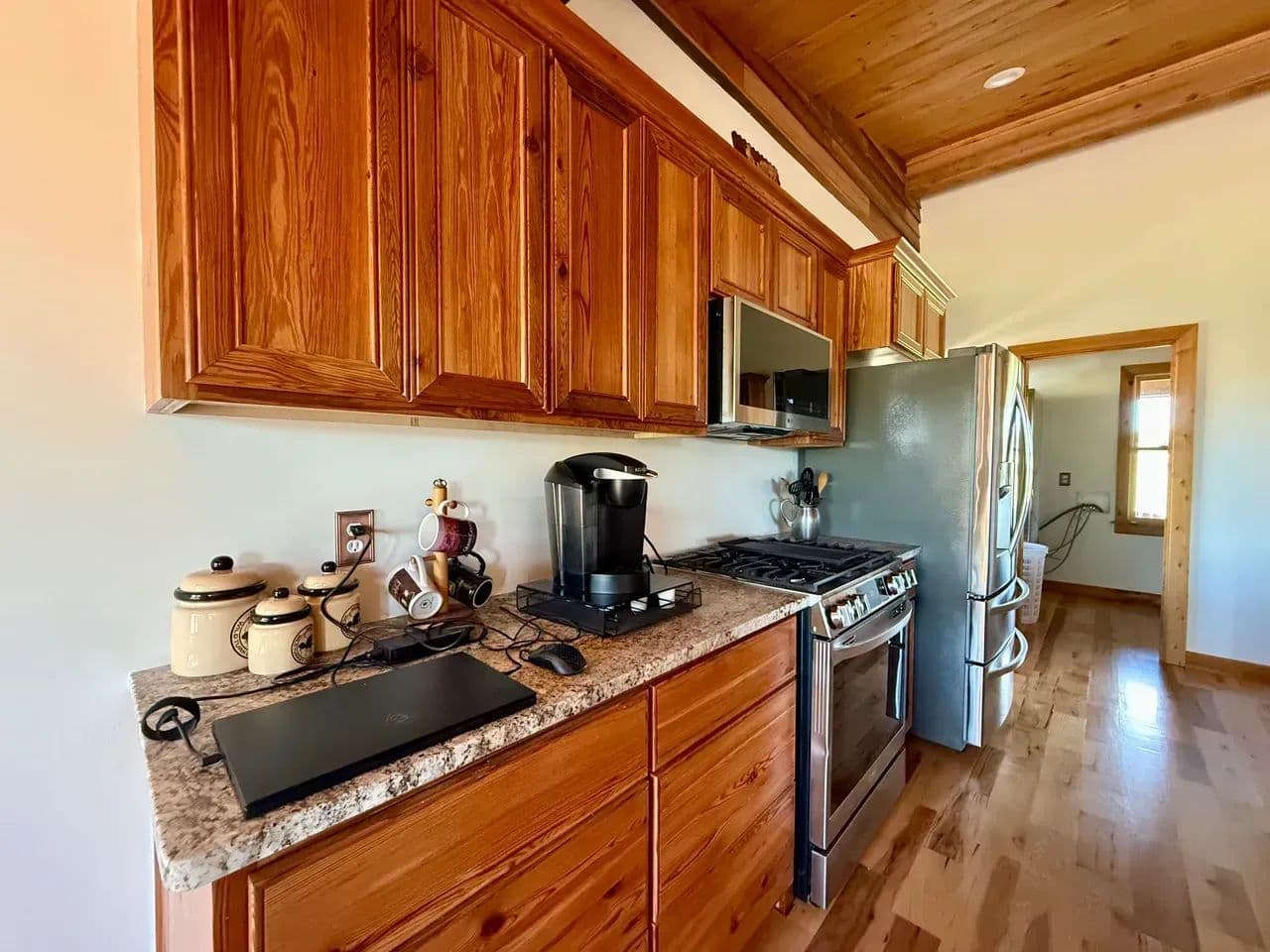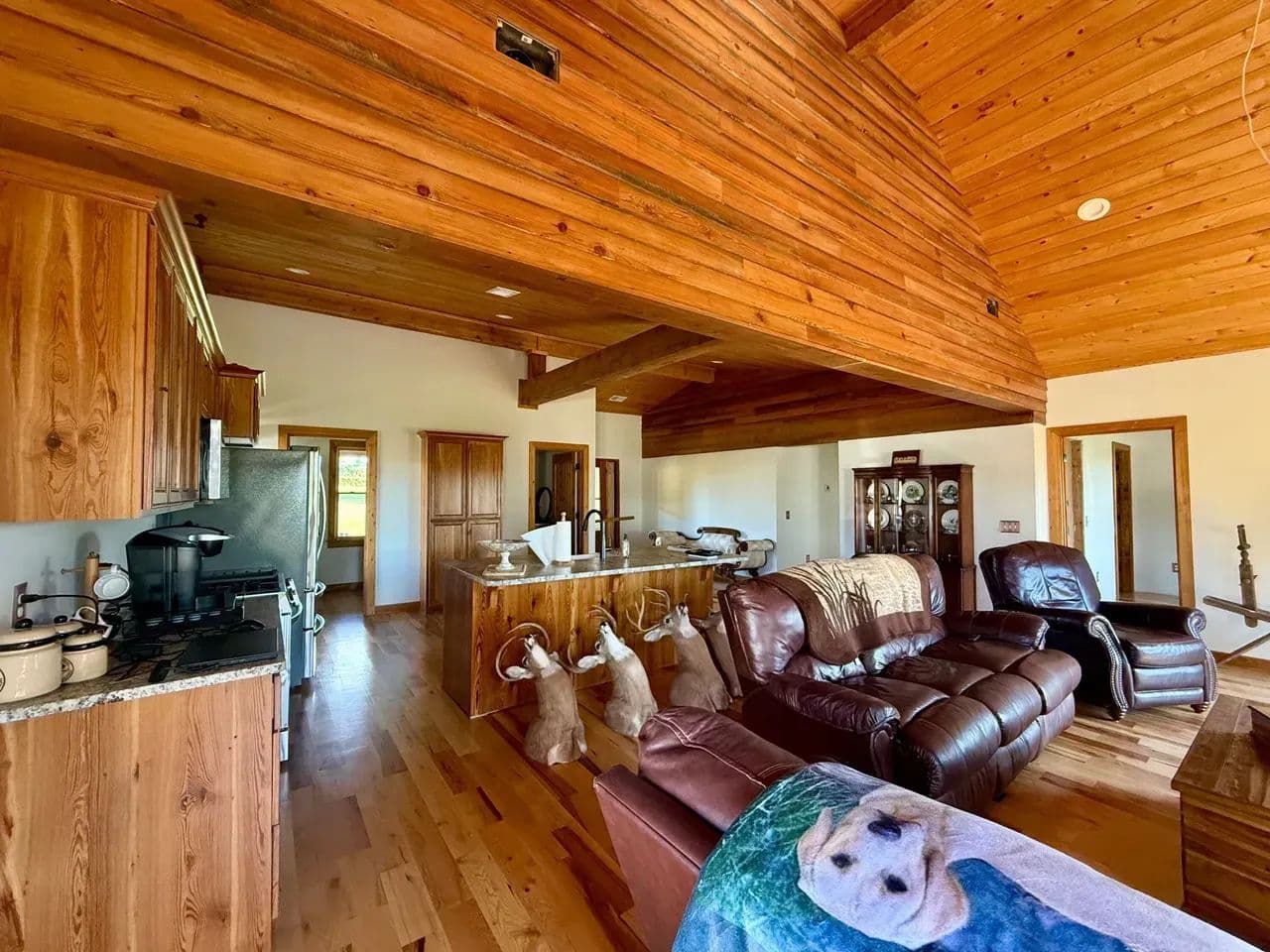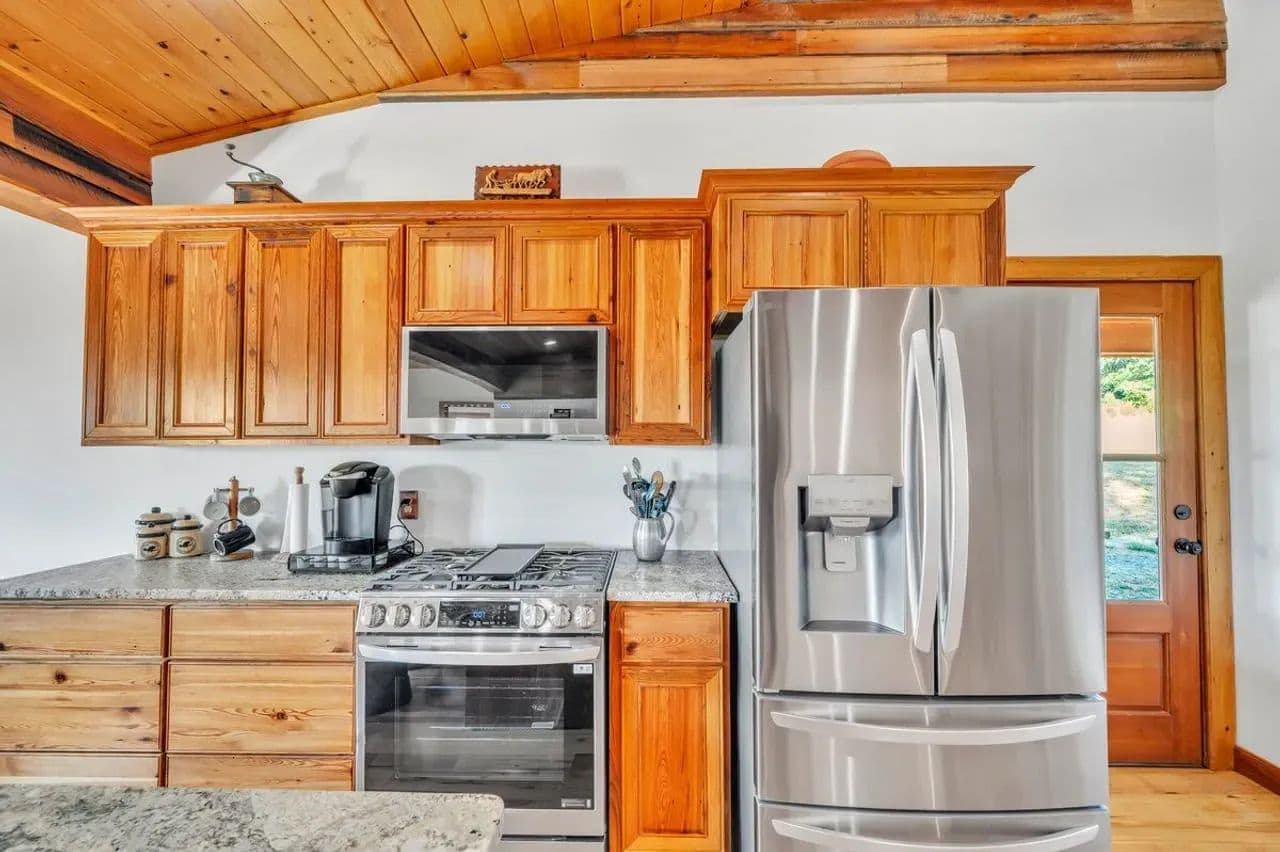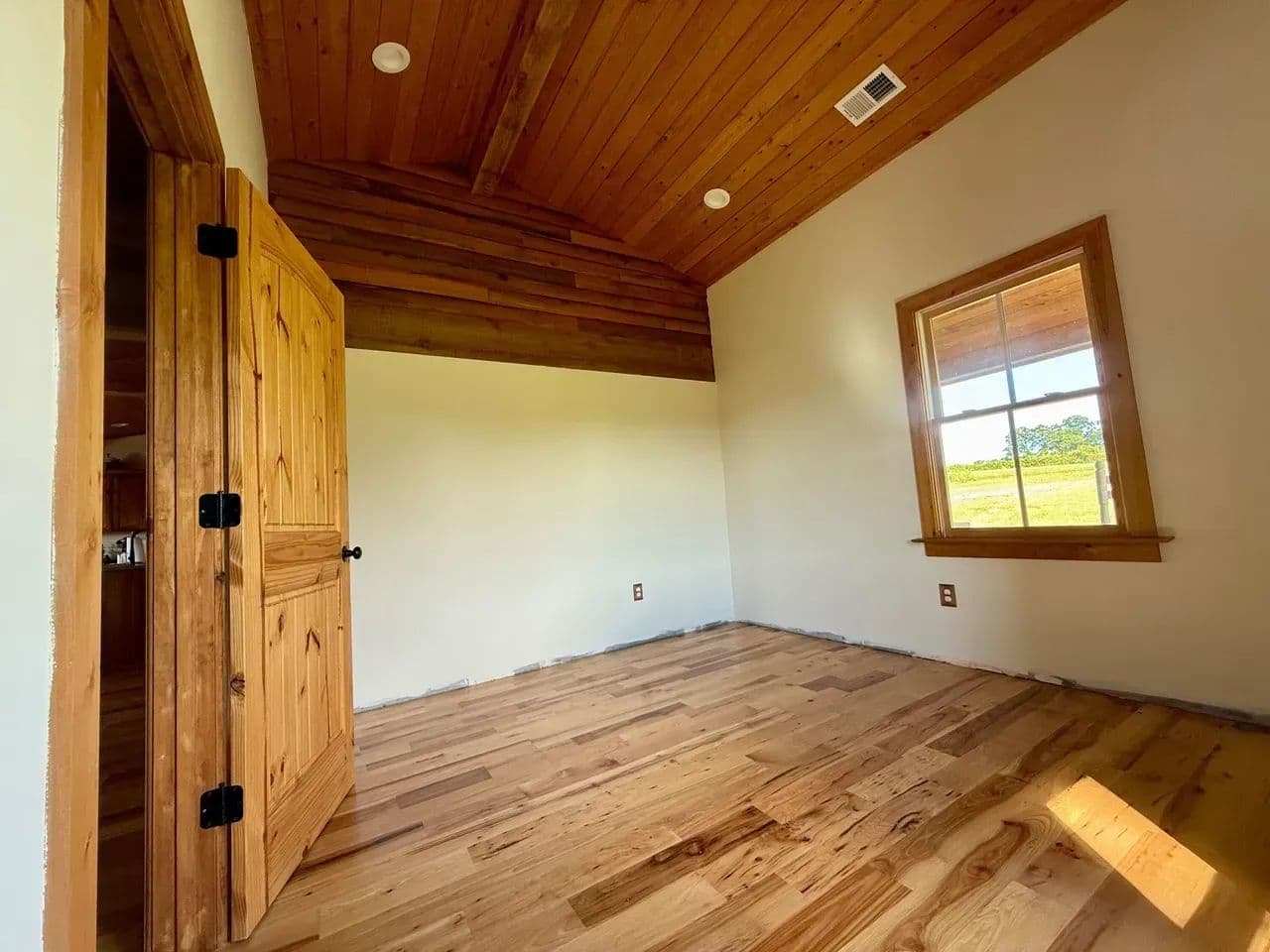 2br 2ba 1295 sq ft beautiful custom wood cabin. Cypress siding and ceilings, hickory floors, granite countertops, heart pine cabinets, 2.5 ton heat pump, LP gas, tankless water heater Rinnai unit, gas fireplace, and gas stovetop.