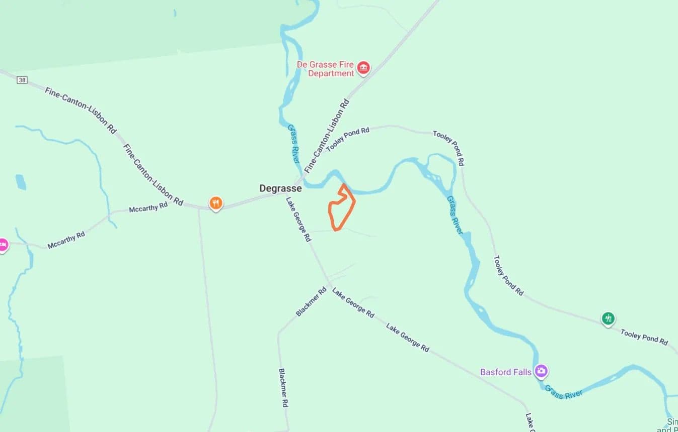 This property is located on the banks of the south branch of the Grasse River in the town of Russell, NY. This 4-acre wooded parcel boasts an elevated site perfect for a cabin or camper, offering stunning river views. While there’s an older 12 x 16 cabin on the lot, before use, it would require some repair and tender loving care.