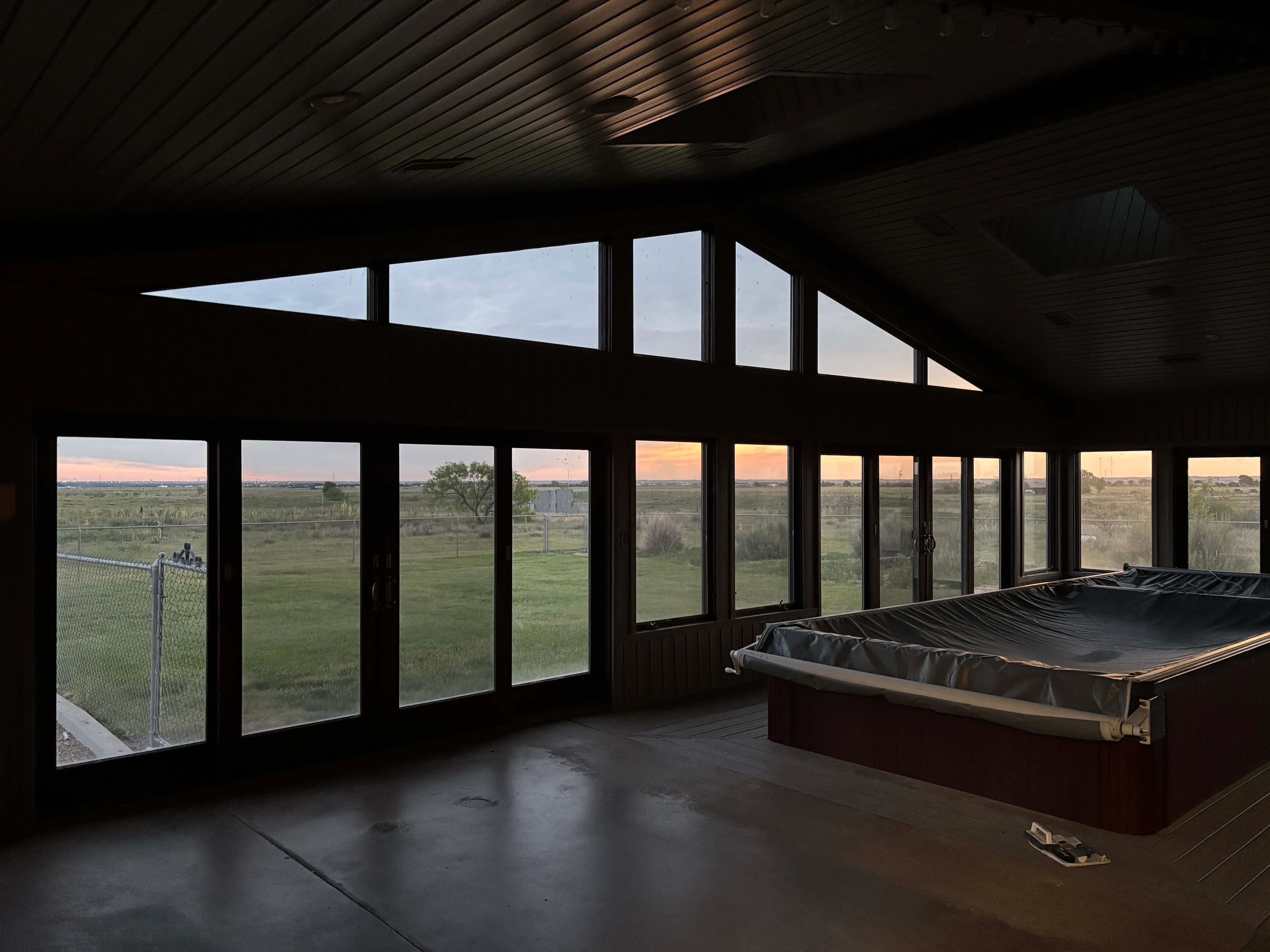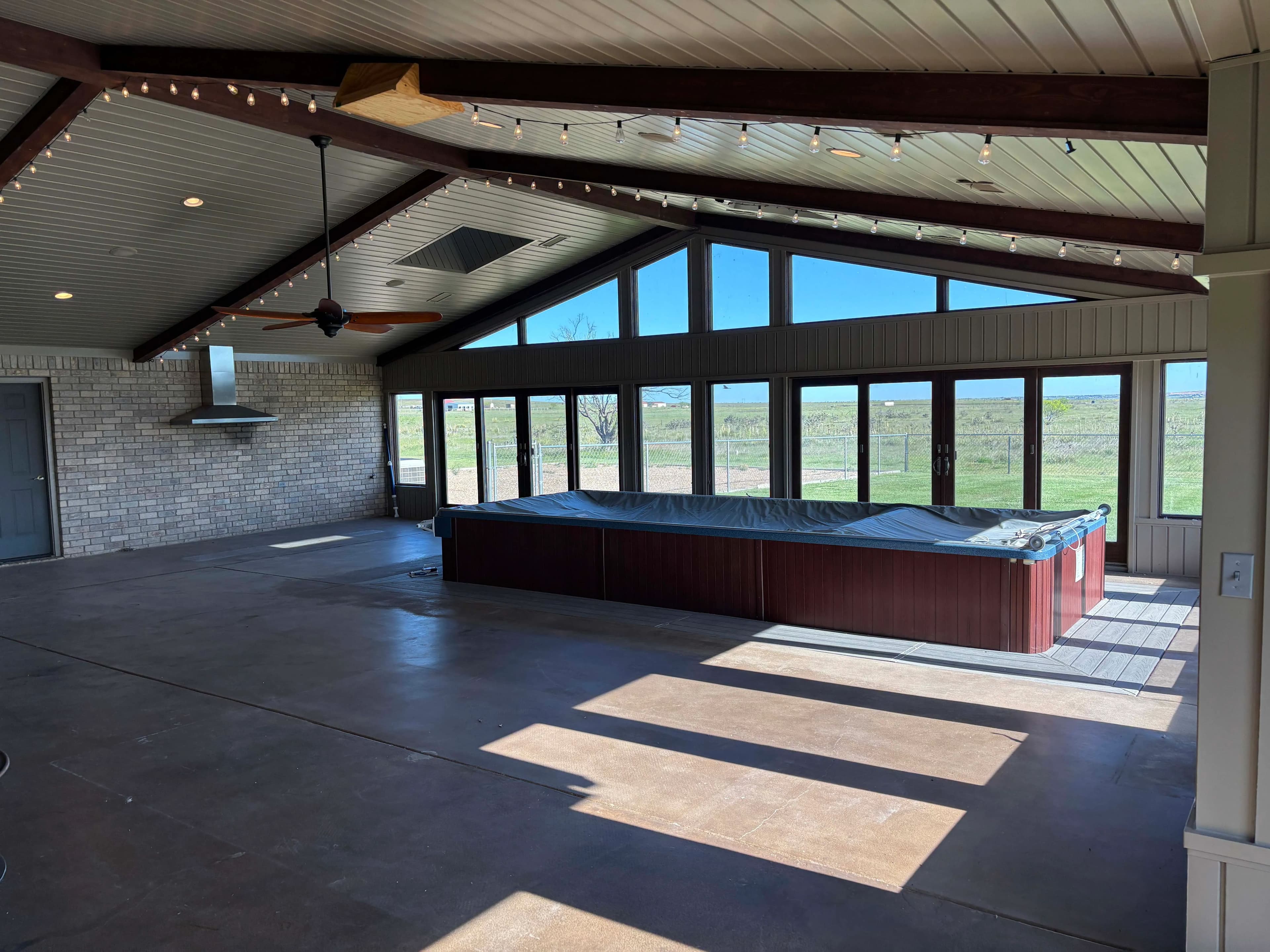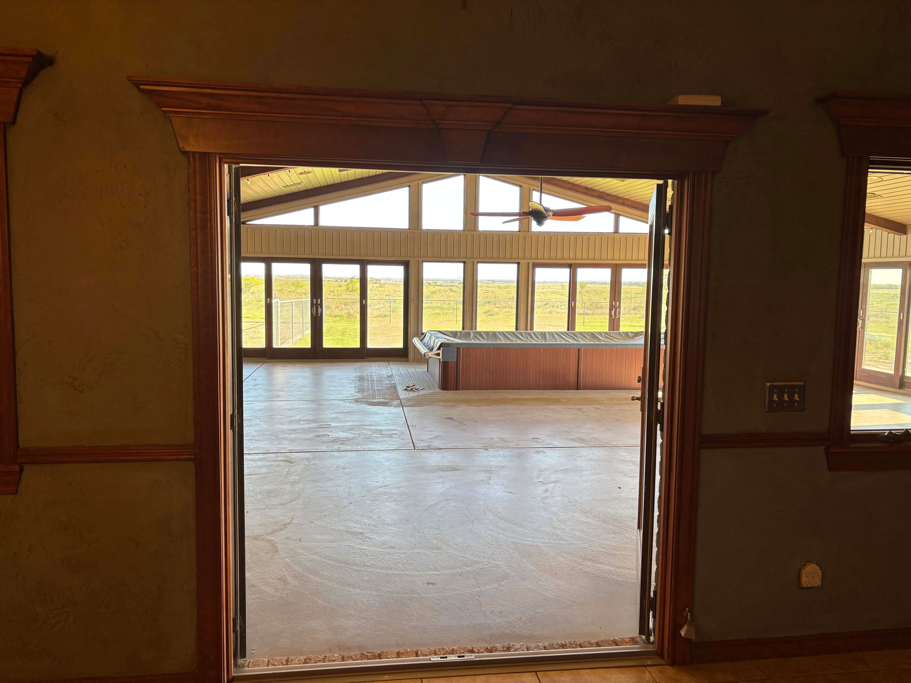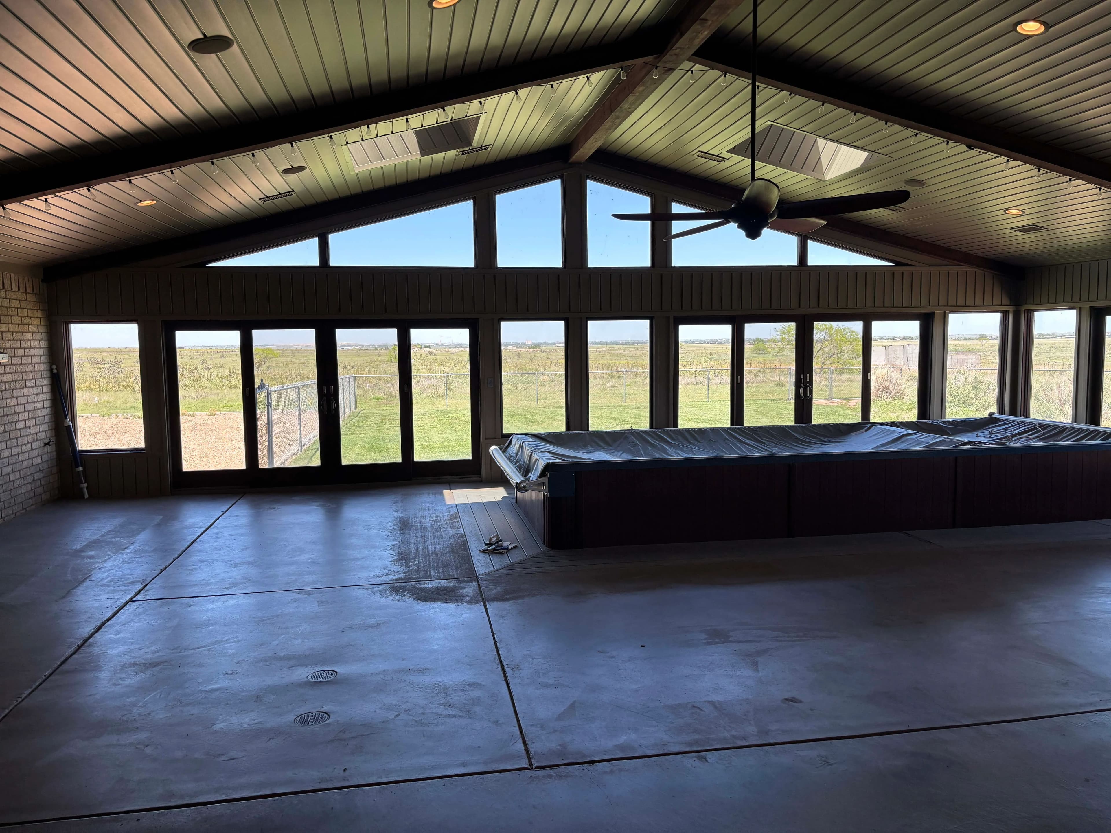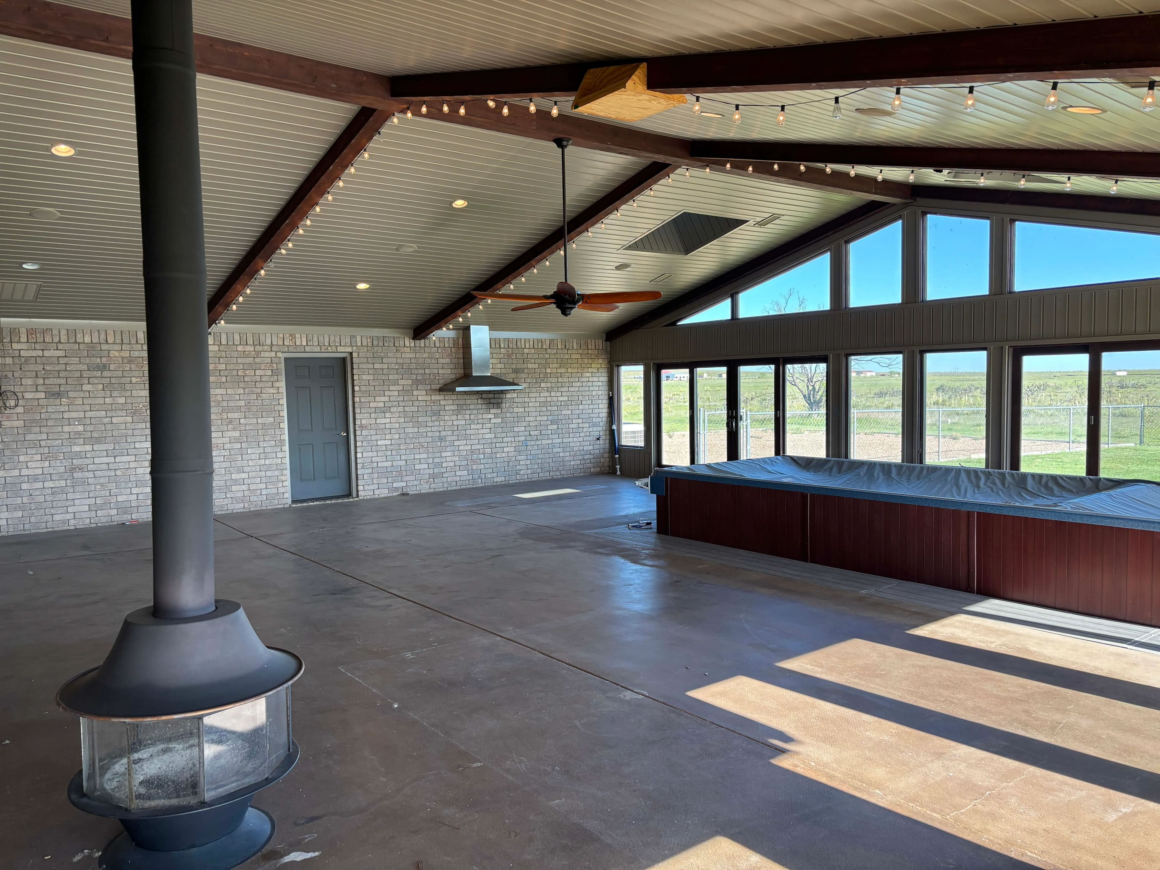 This 76 +/- acre gem is a rare opportunity located just 6.5 miles south of Canyon, TX, on Buffalo Lake Road (FM 1714). It truly has everything you could want in a country property! The custom three-bedroom, two-bath brick home built in 2005 features 2,338 sq ft of thoughtfully designed living space. The isolated master suite includes his and hers closets, a soaking tub, and a spacious walk-in shower. Two additional bedrooms share a hall bath on the opposite side of the home, with a centrally located bonus room perfect for an office, craft space, or media nook. The open-concept kitchen and living area flow seamlessly into the heart of the home—a 1,413 sq ft climate-controlled indoor/outdoor entertainment haven. Soak in the hot tub, swim in the endless pool, and take in sweeping, unobstructed views through a wall of windows. With surround sound, a vent hood, and a cozy fireplace, it’s a showstopper for entertaining family and friends. Open the surrounding windows and doors to welcome in the cool evening breeze or the scent of spring rain.