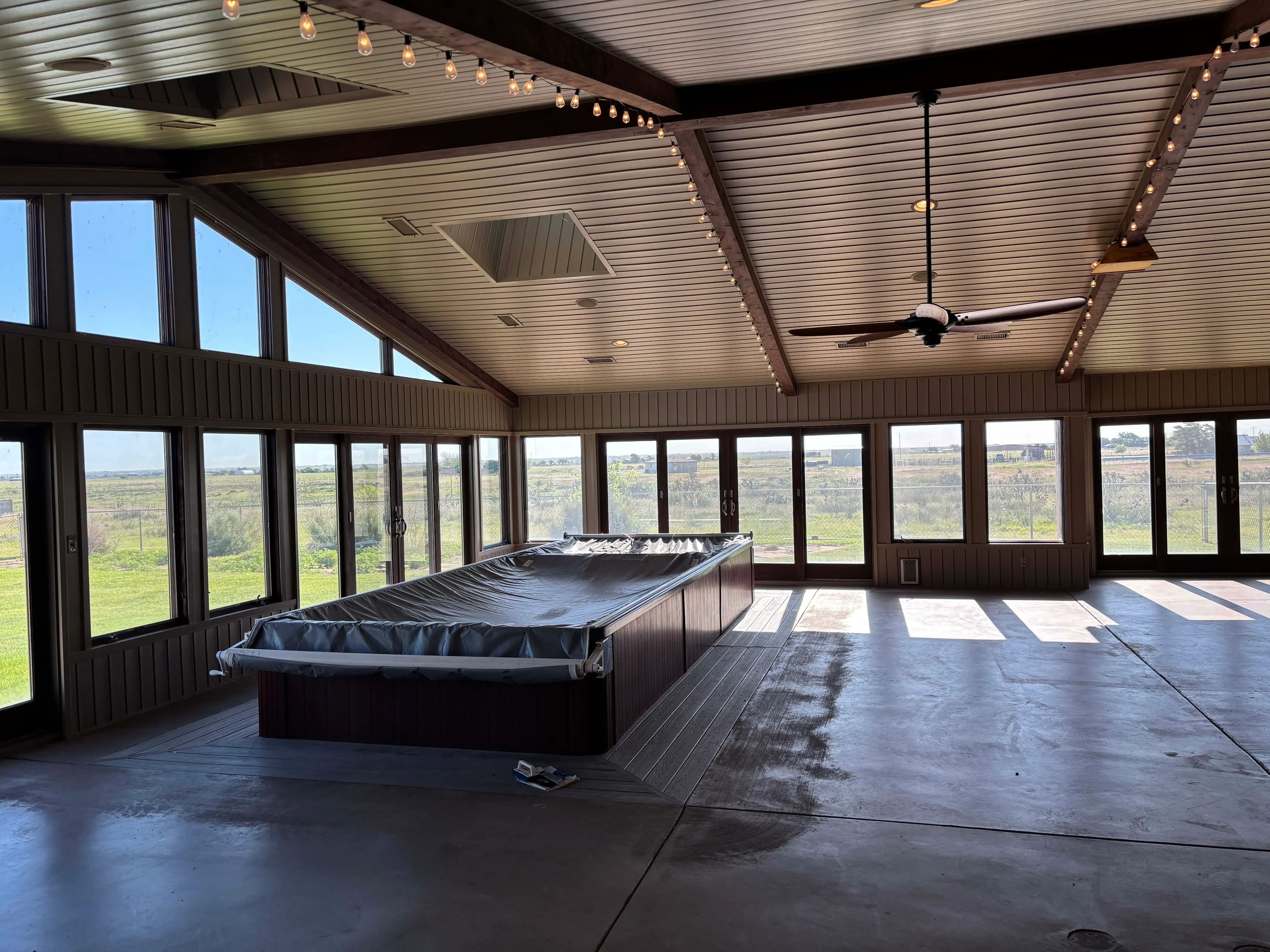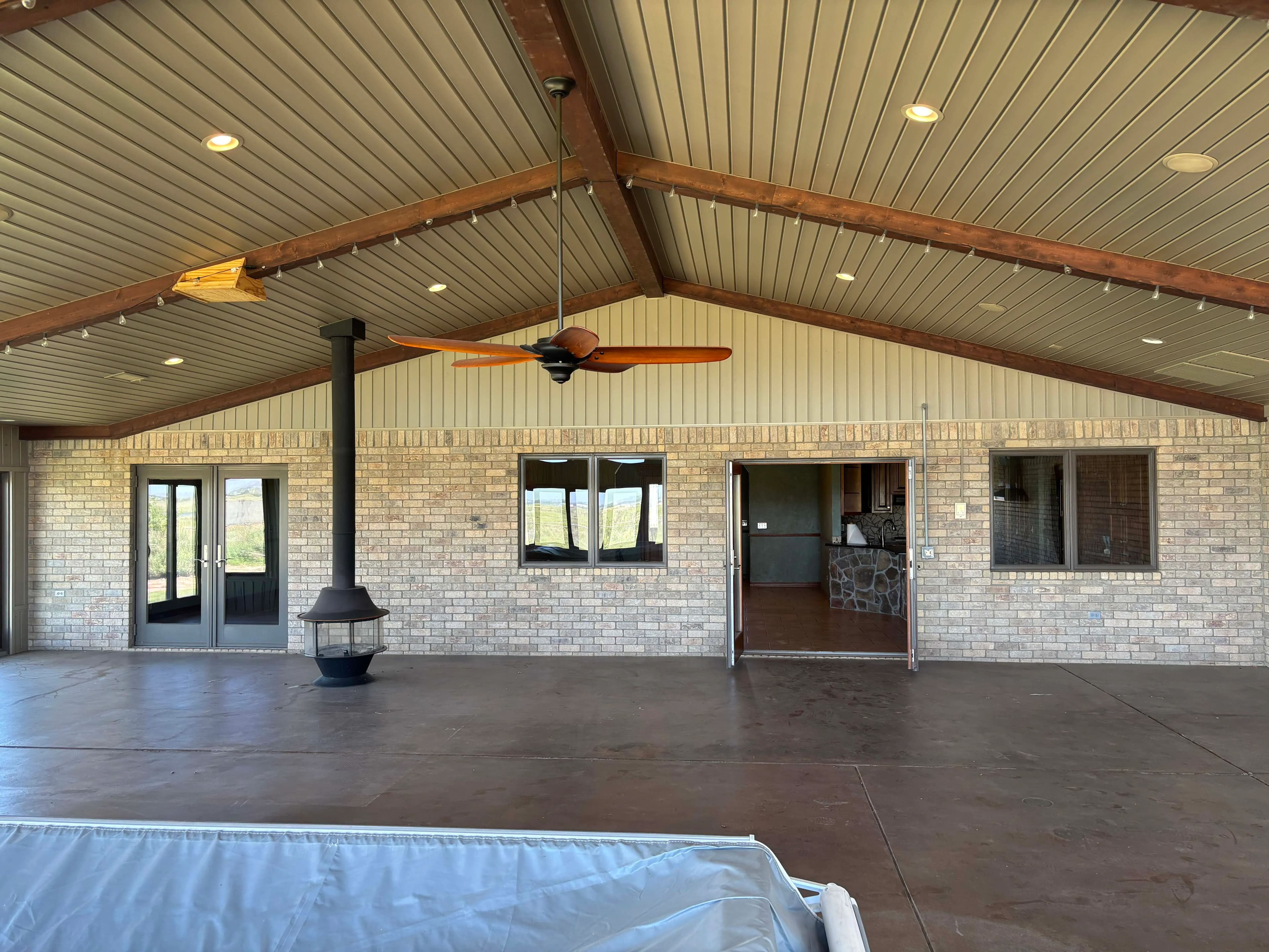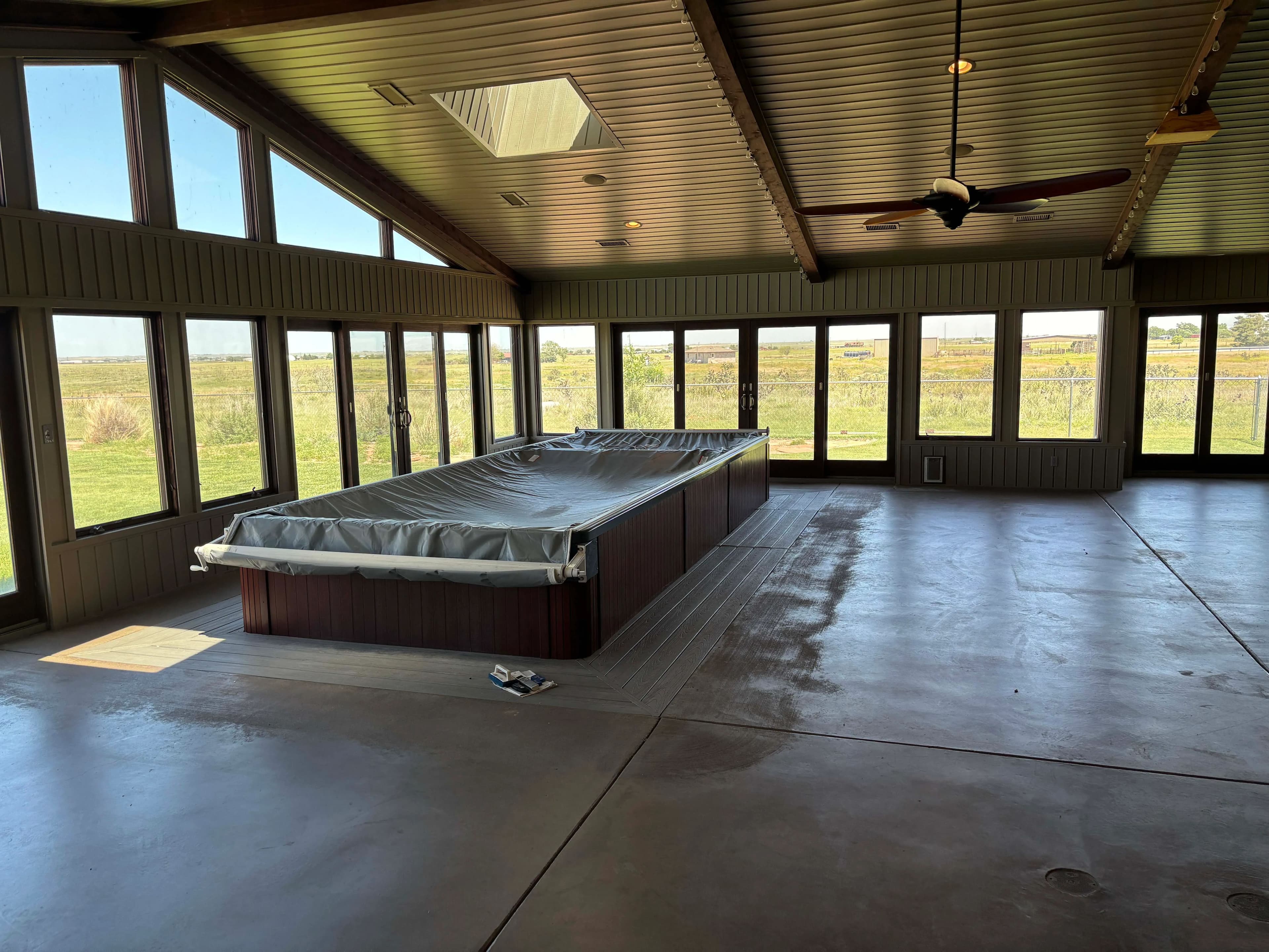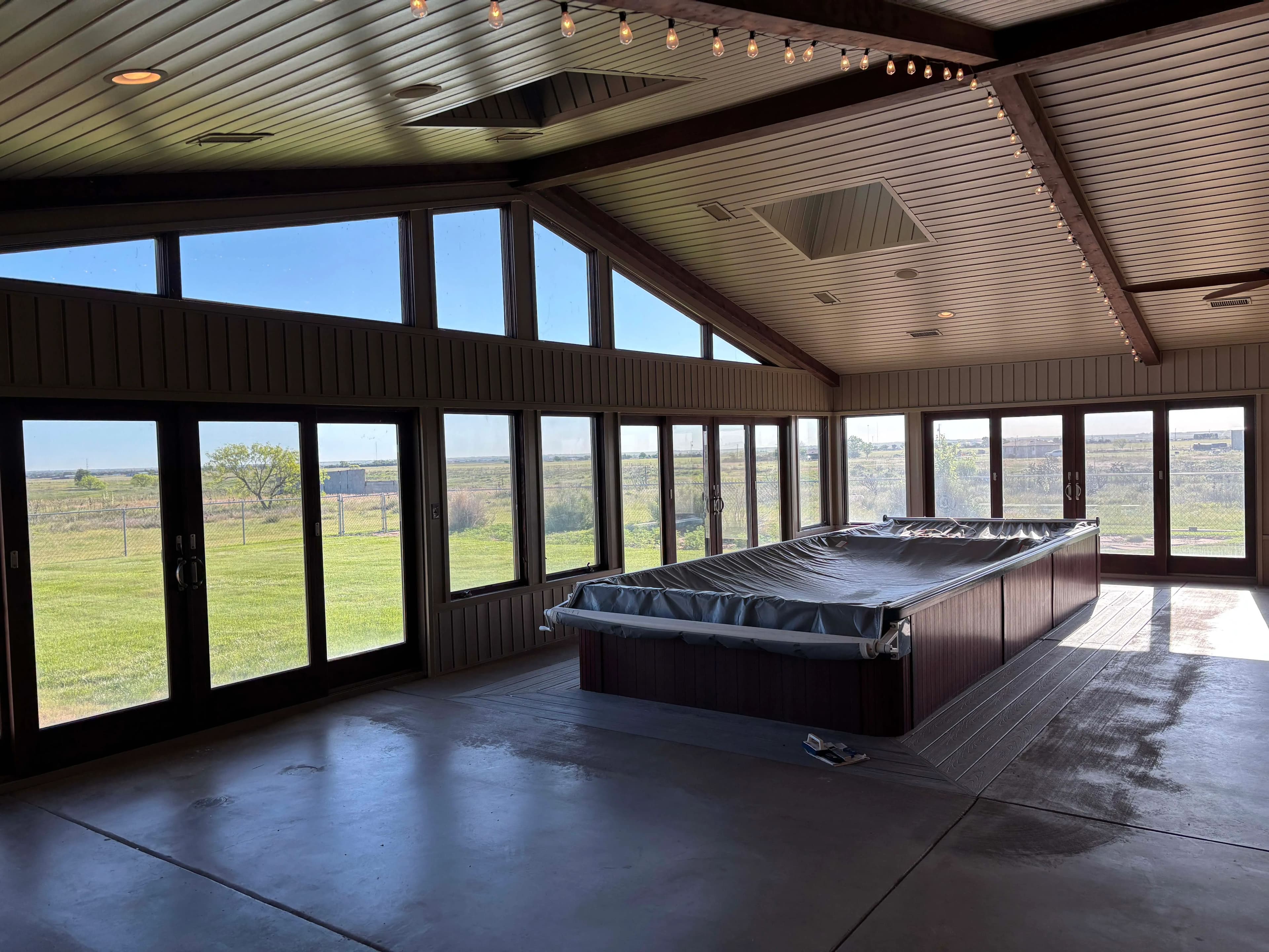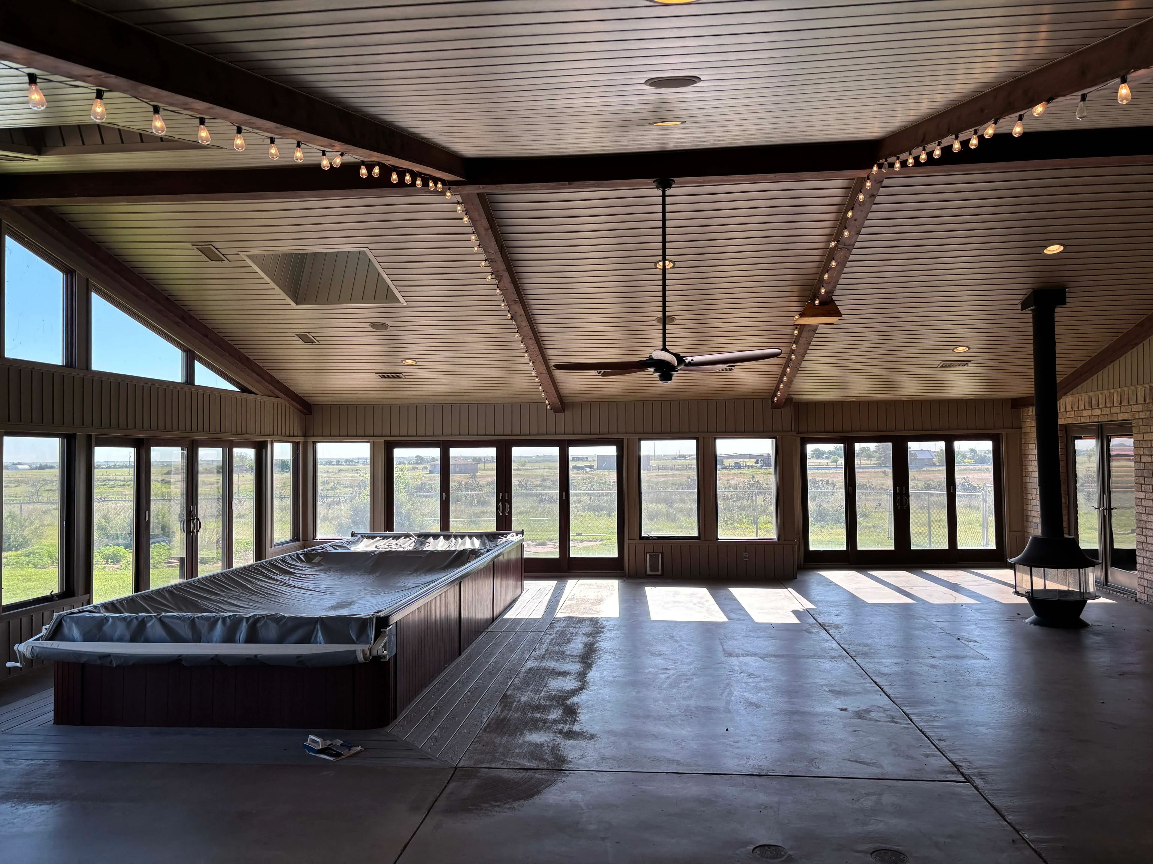This 76 +/- acre gem is a rare opportunity located just 6.5 miles south of Canyon, TX, on Buffalo Lake Road (FM 1714). It truly has everything you could want in a country property! The custom three-bedroom, two-bath brick home built in 2005 features 2,338 sq ft of thoughtfully designed living space. The isolated master suite includes his and hers closets, a soaking tub, and a spacious walk-in shower. Two additional bedrooms share a hall bath on the opposite side of the home, with a centrally located bonus room perfect for an office, craft space, or media nook. The open-concept kitchen and living area flow seamlessly into the heart of the home—a 1,413 sq ft climate-controlled indoor/outdoor entertainment haven. Soak in the hot tub, swim in the endless pool, and take in sweeping, unobstructed views through a wall of windows. With surround sound, a vent hood, and a cozy fireplace, it’s a showstopper for entertaining family and friends. Open the surrounding windows and doors to welcome in the cool evening breeze or the scent of spring rain.