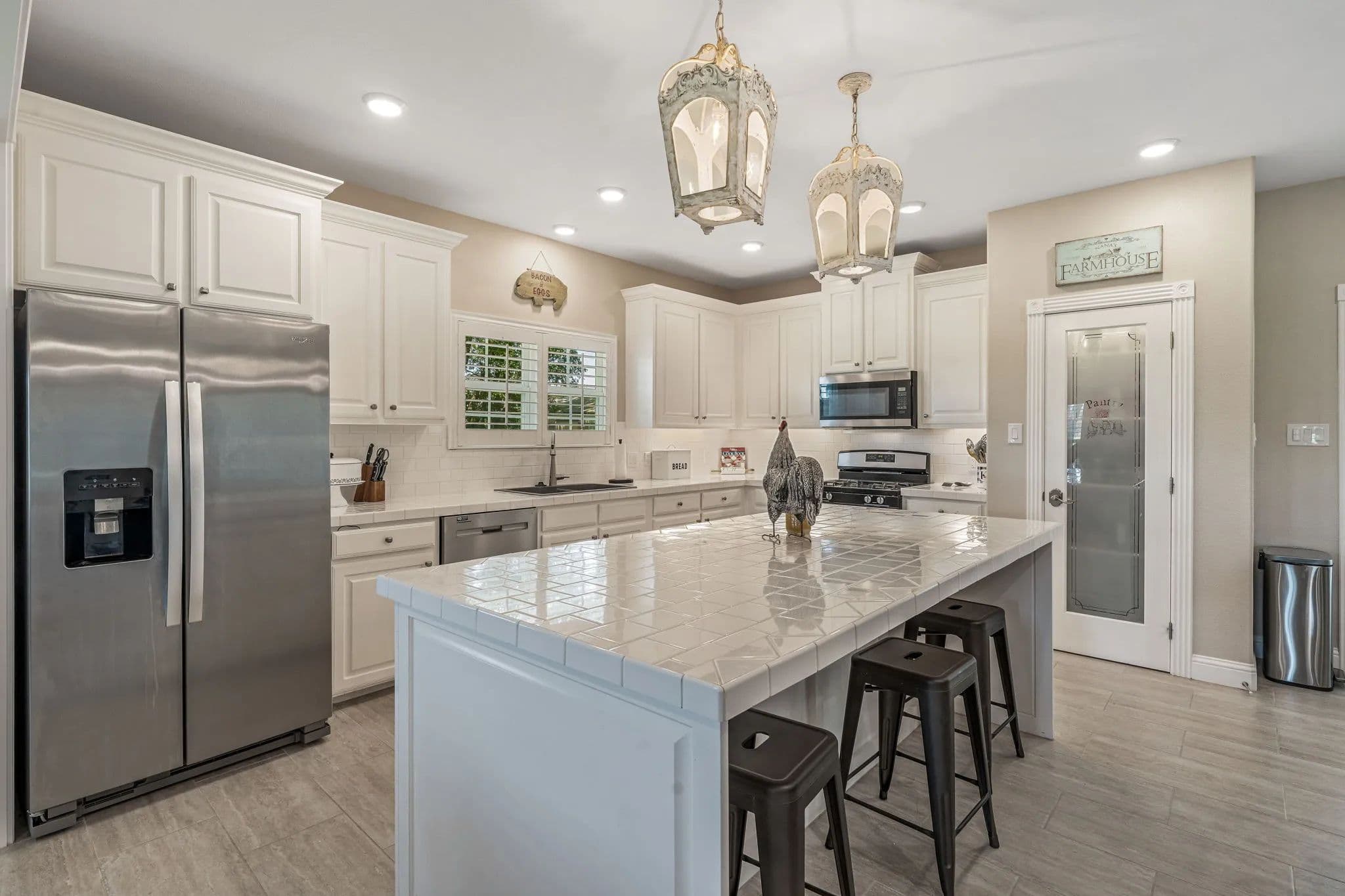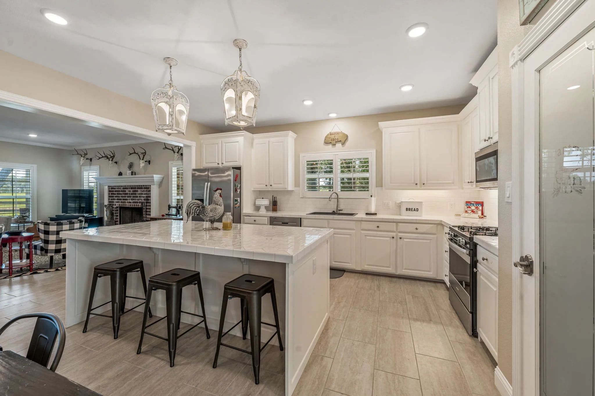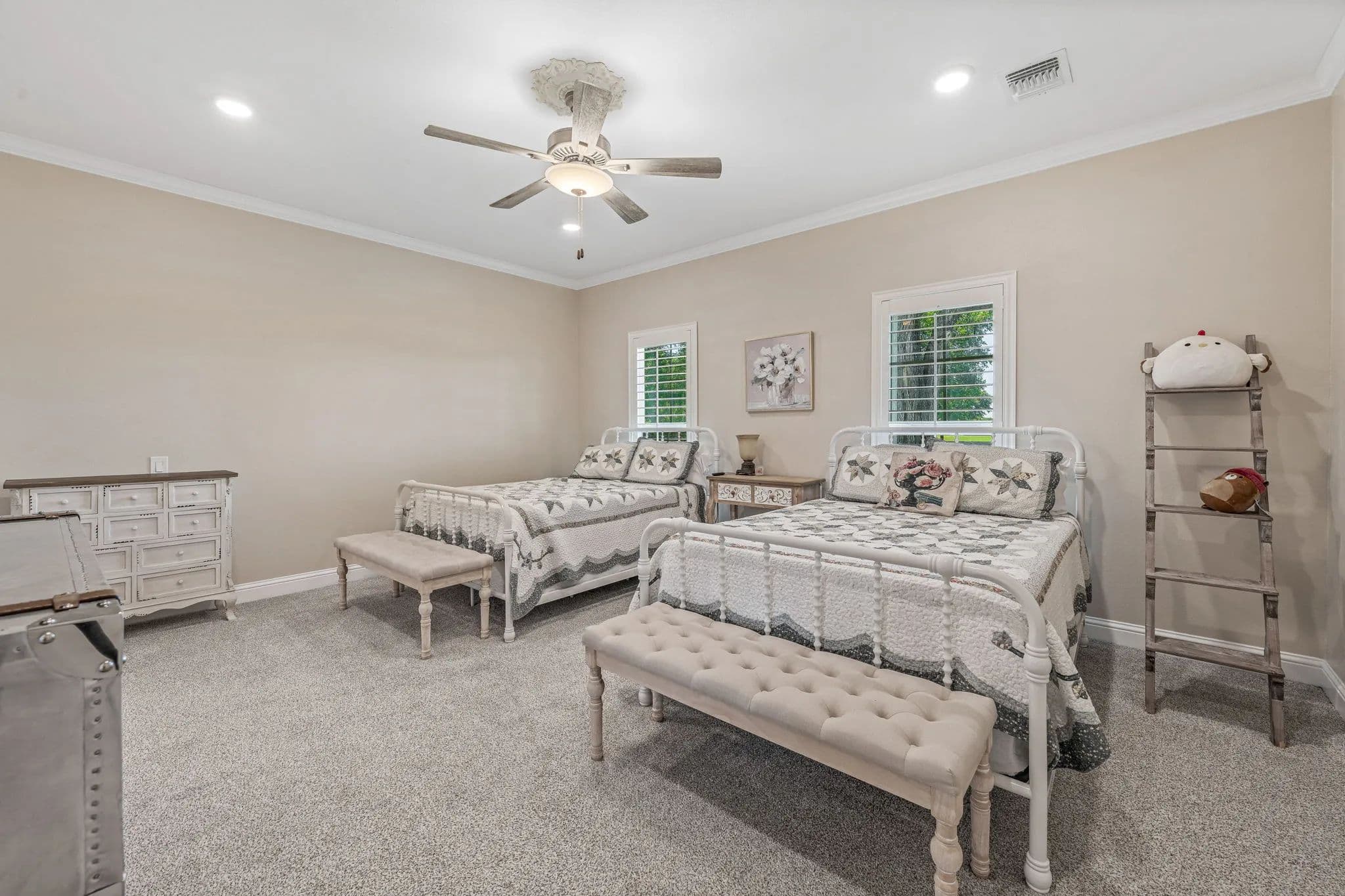 The open-concept kitchen and dining area provide a welcoming space, with the primary suite and one guest room conveniently located on the ground floor. Upstairs, you'll find two additional bedrooms, a full bath, and a spacious bonus room currently used as sleeping quarters. A total of 10 bedrooms and 9 bathrooms in all housing accommodations.