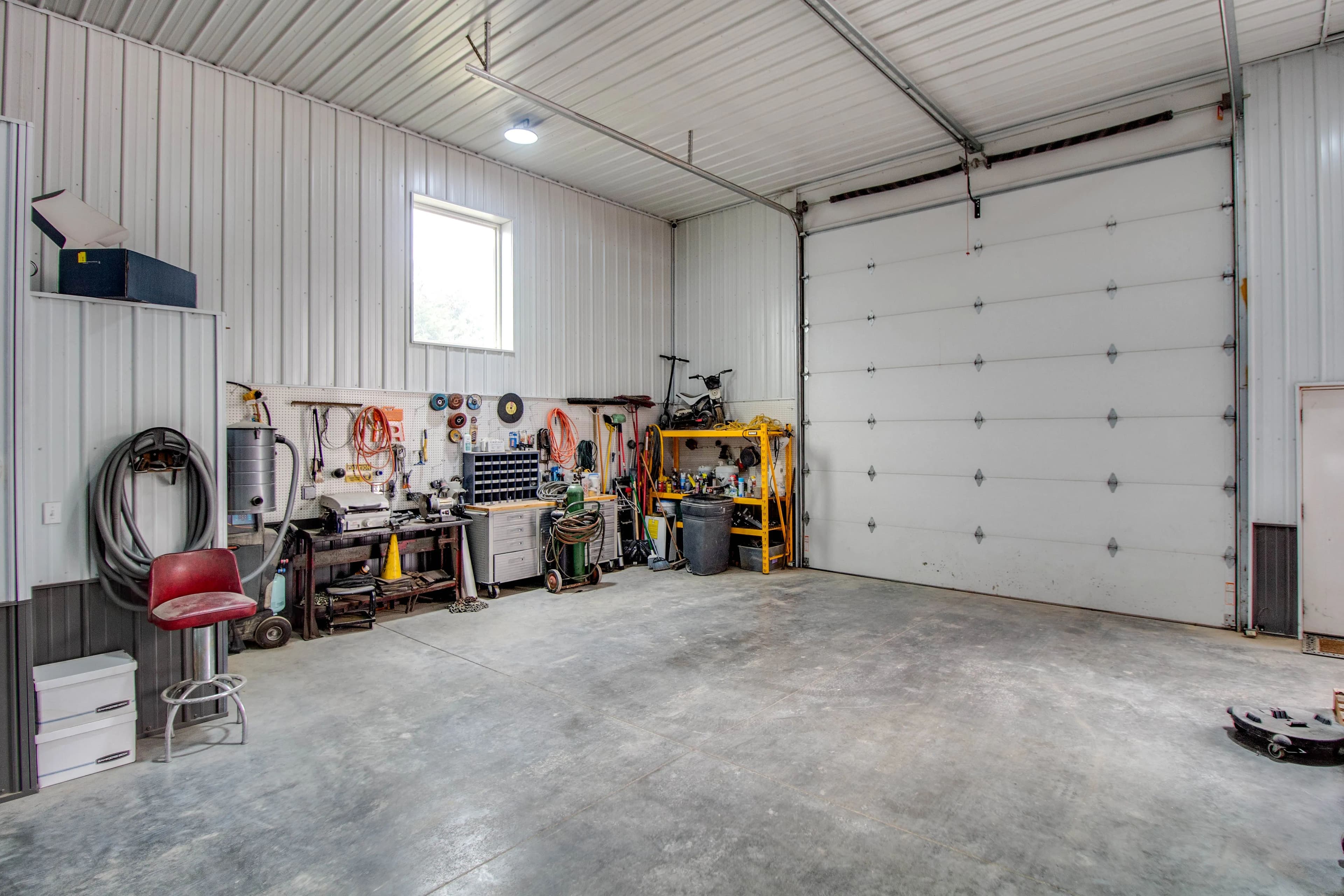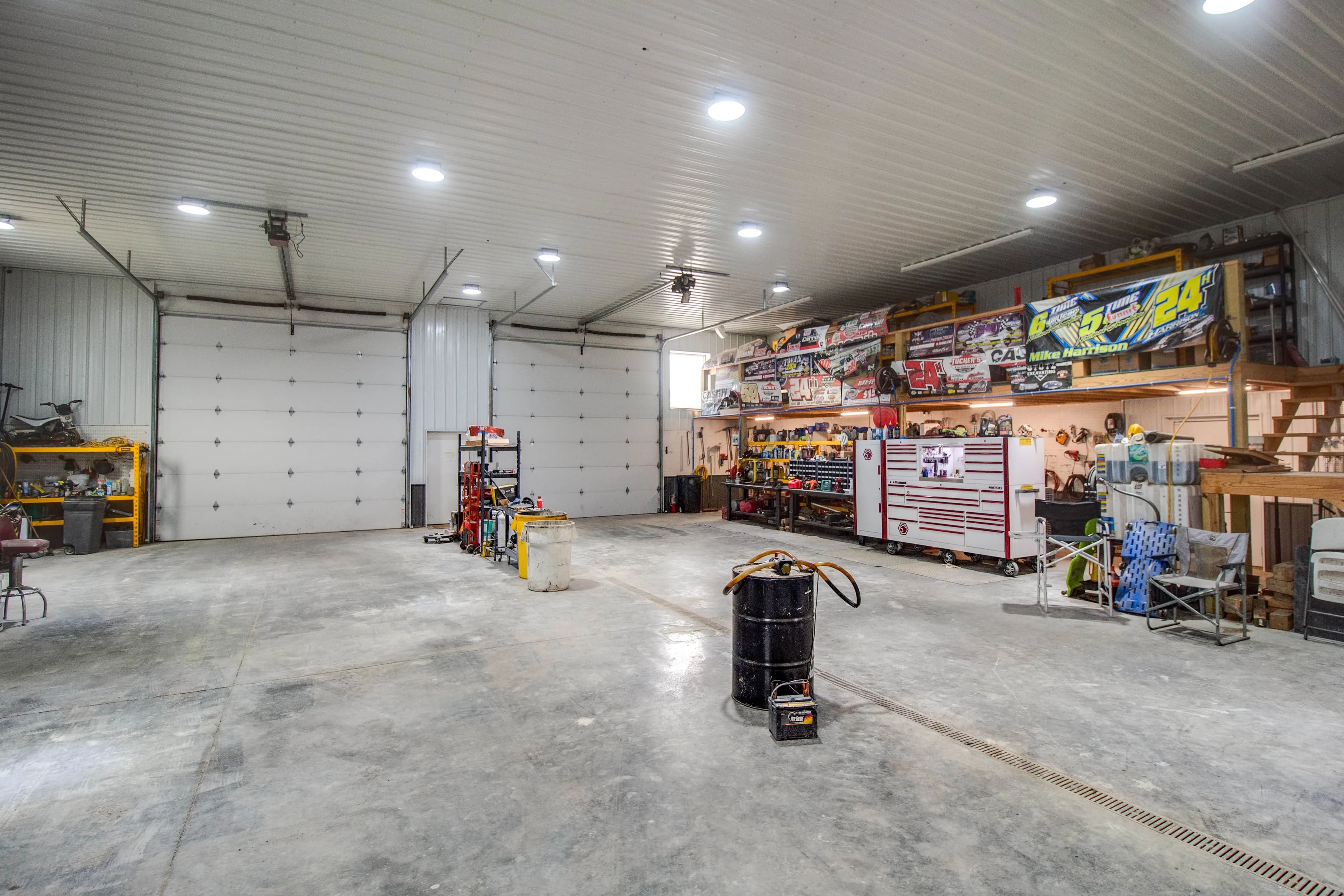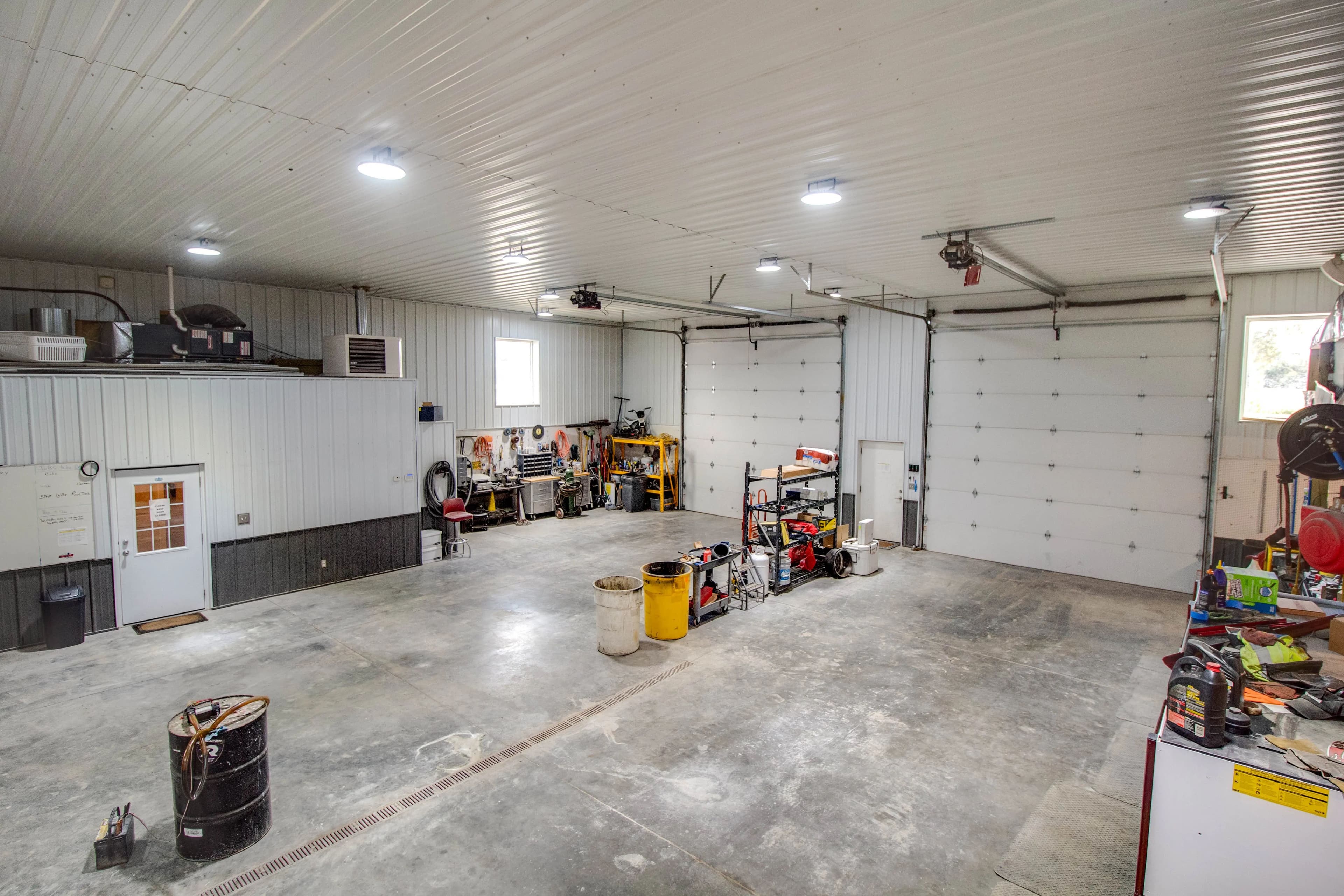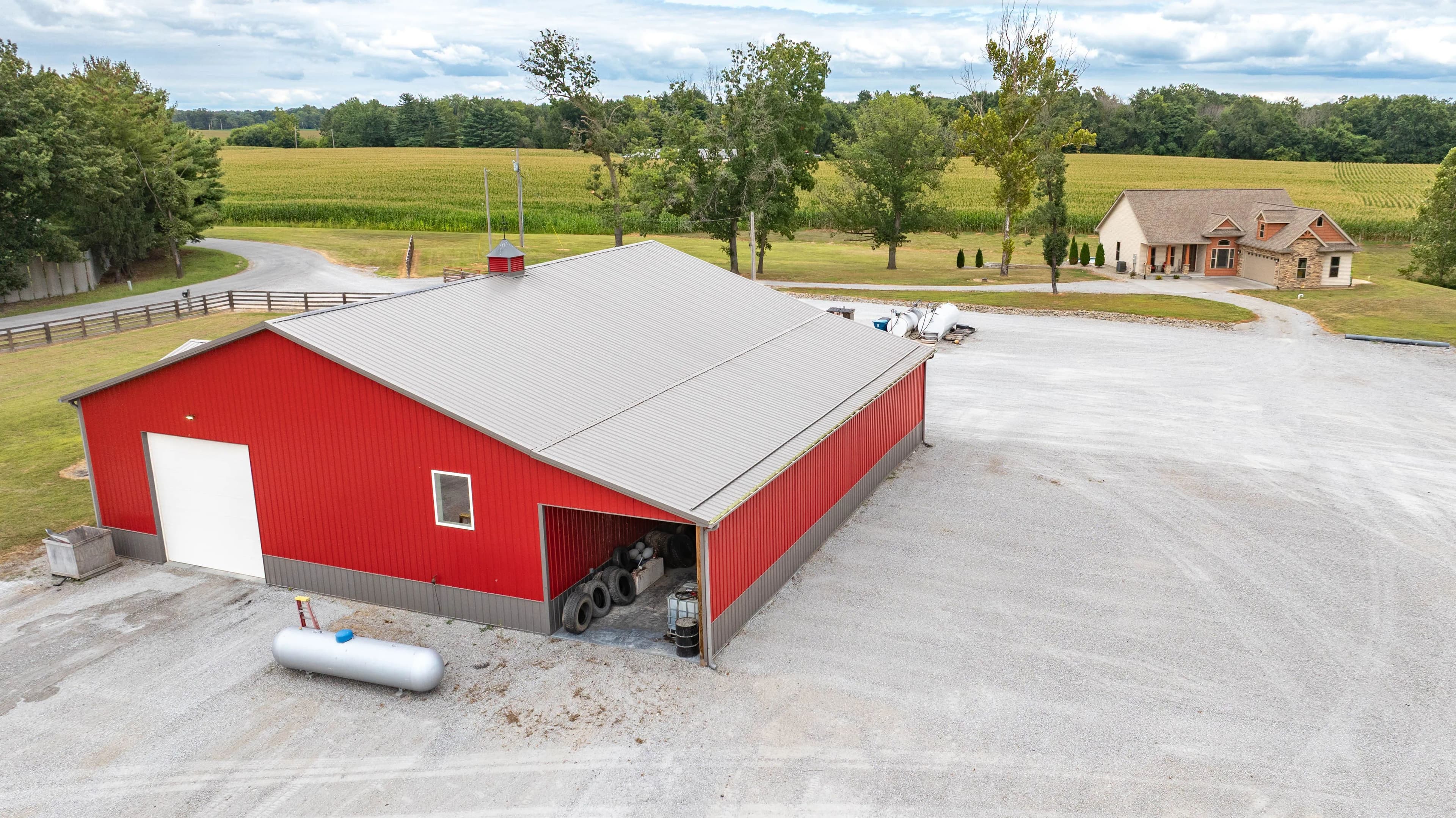 Situated on 8+/- acres, this spacious and well-appointed property offers both comfortable living and exceptional outbuilding space. The main home features vaulted ceilings, a gas fireplace, and a walk-out layout designed for everyday comfort and entertaining. The kitchen includes granite countertops, stainless appliances, a center island, and double ovens. The primary suite boasts private deck access, dual walk-in closets, and a spa-like bath with a whirlpool tub and walk-in shower. The fully finished lower level includes a large family room, full bar with marble counters and stainless fridge, a bedroom, ¾ bath, and walk-out access to a covered stamped concrete patio and above-ground pool. The highlight? A massive 54x72 barn with metal siding and roof, full concrete floors (6” thick), power, loft space, and three 14x14 insulated roll-up doors. The barn also includes a 15x70 drive-through covered area, heating and cooling, full spray-foam insulation, and two 300,000 BTU Reznor heaters. Inside, you'll find finished office space, a conference room with kitchenette, a ¾ bath, and central air. The barn has its own 200-amp service, gas furnace, and propane (leased tank). Additional features: 400-amp service at the house, central air, septic, public water, and both tank and tankless water heaters. This is a rare opportunity to own a move-in ready home with a fully equipped shop setup—perfect for home-based business, hobby space, or serious storage needs.