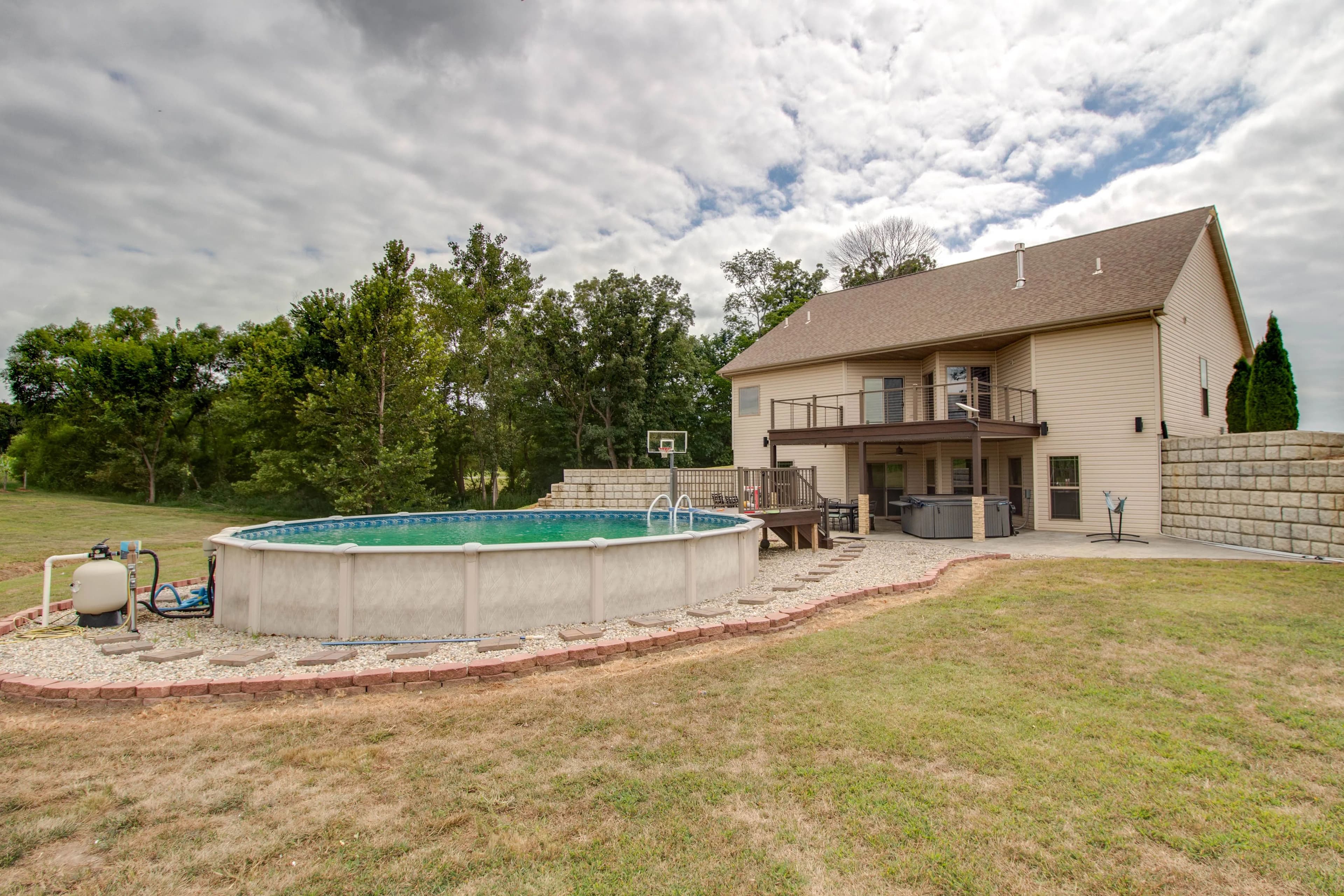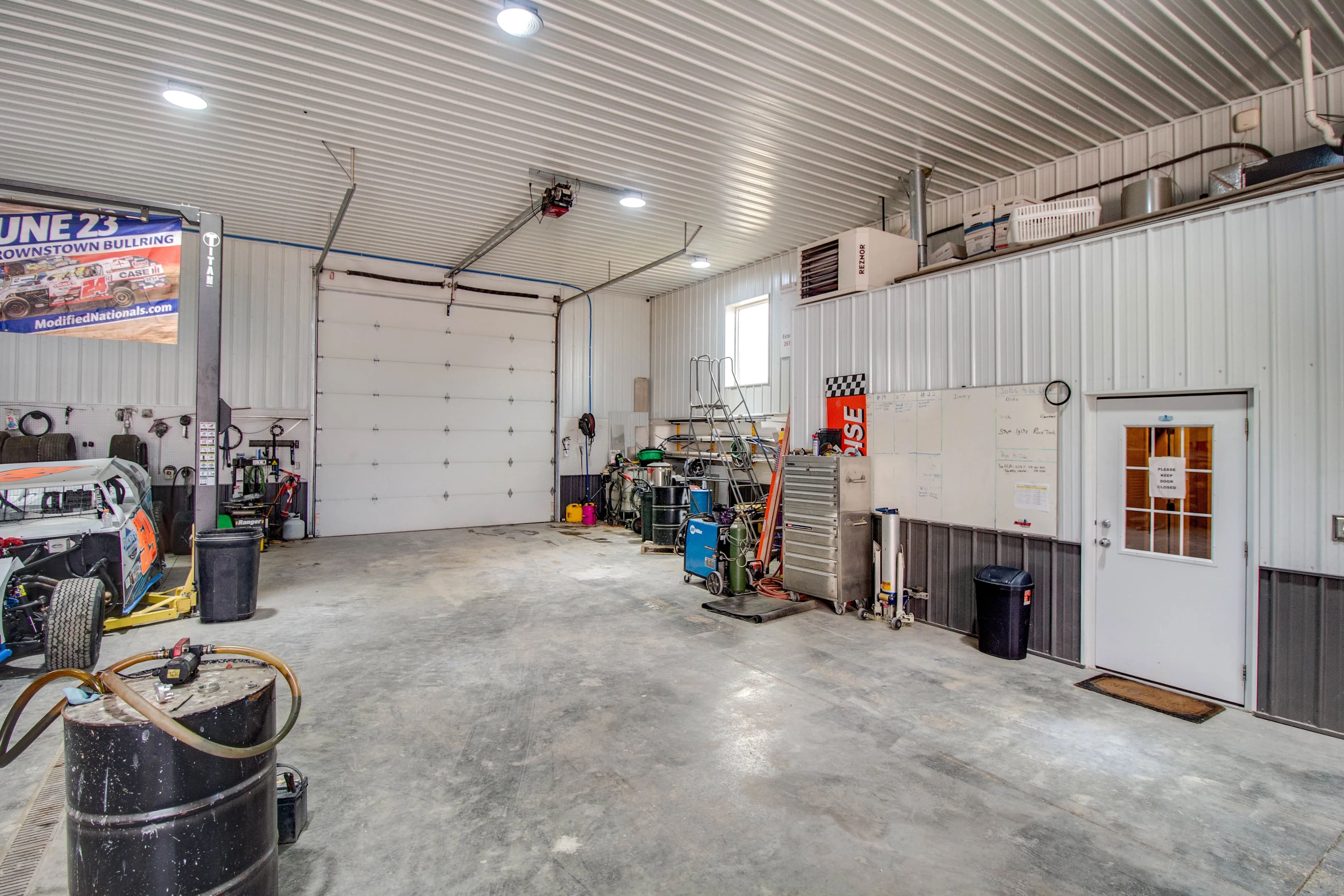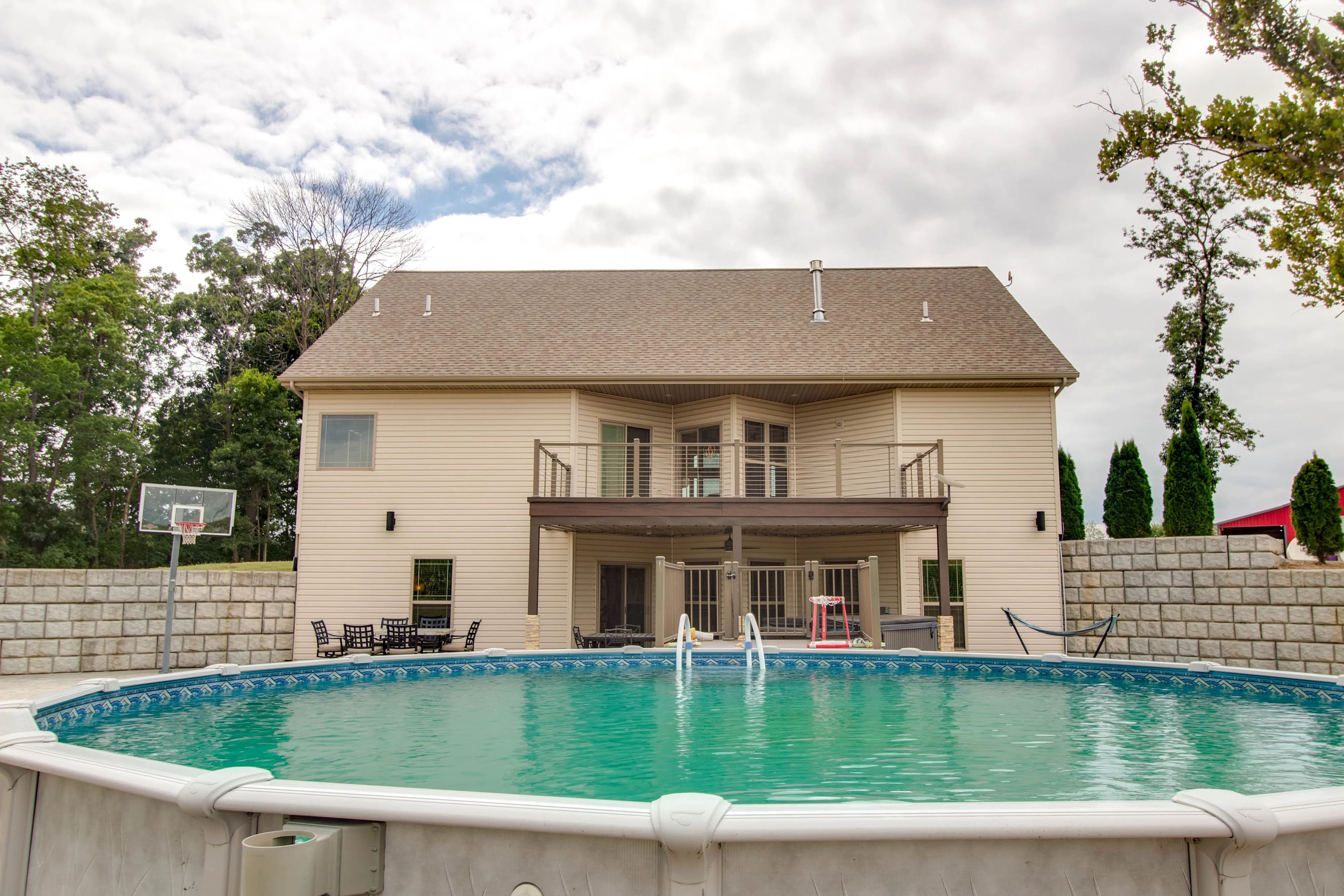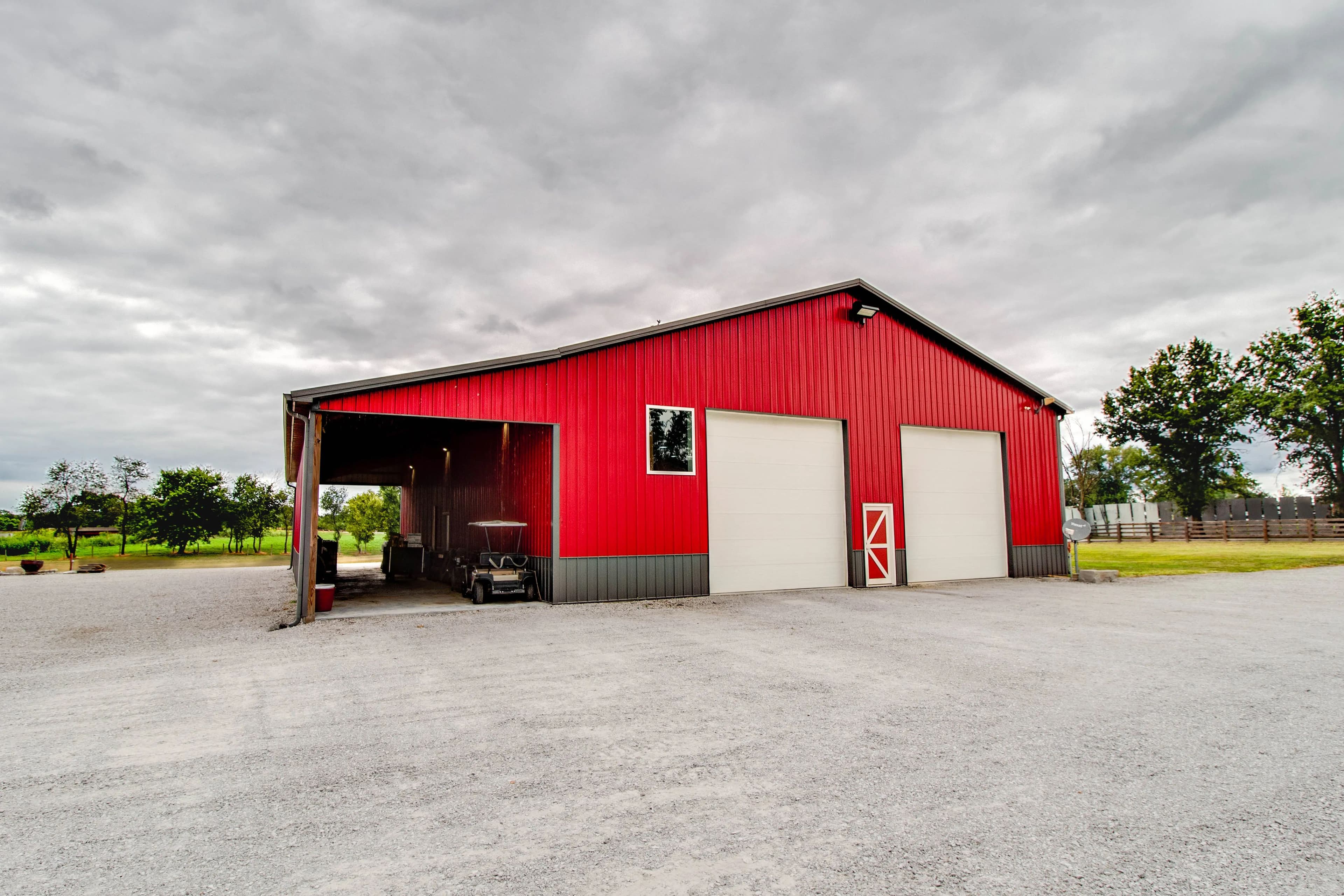 Situated on 8+/- acres, this spacious and well-appointed property offers both comfortable living and exceptional outbuilding space. The main home features vaulted ceilings, a gas fireplace, and a walk-out layout designed for everyday comfort and entertaining. The kitchen includes granite countertops, stainless appliances, a center island, and double ovens. The primary suite boasts private deck access, dual walk-in closets, and a spa-like bath with a whirlpool tub and walk-in shower. The fully finished lower level includes a large family room, full bar with marble counters and stainless fridge, a bedroom, ¾ bath, and walk-out access to a covered stamped concrete patio and above-ground pool. The highlight? A massive 54x72 barn with metal siding and roof, full concrete floors (6” thick), power, loft space, and three 14x14 insulated roll-up doors. The barn also includes a 15x70 drive-through covered area, heating and cooling, full spray-foam insulation, and two 300,000 BTU Reznor heaters. Inside, you'll find finished office space, a conference room with kitchenette, a ¾ bath, and central air. The barn has its own 200-amp service, gas furnace, and propane (leased tank). Additional features: 400-amp service at the house, central air, septic, public water, and both tank and tankless water heaters. This is a rare opportunity to own a move-in ready home with a fully equipped shop setup—perfect for home-based business, hobby space, or serious storage needs.