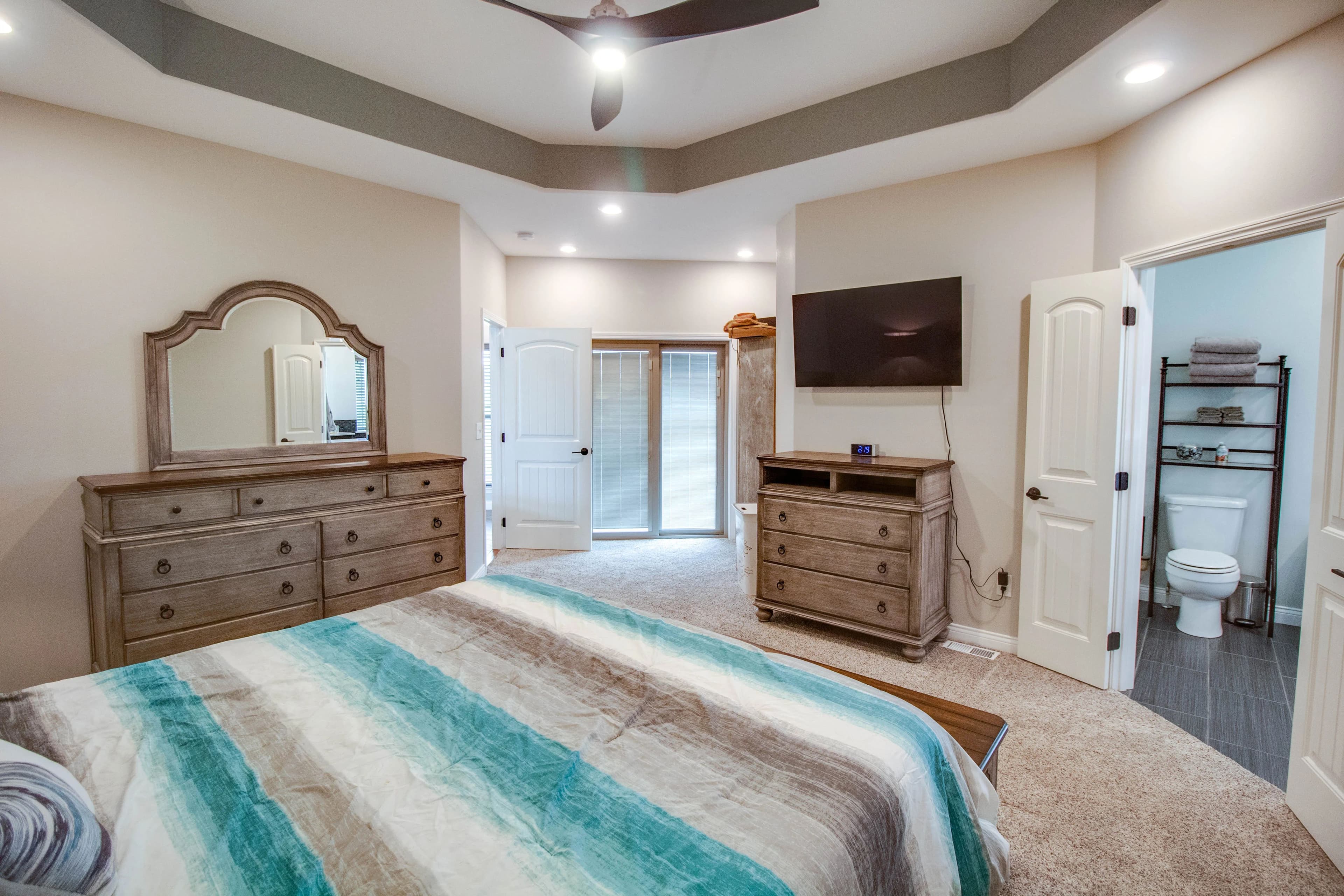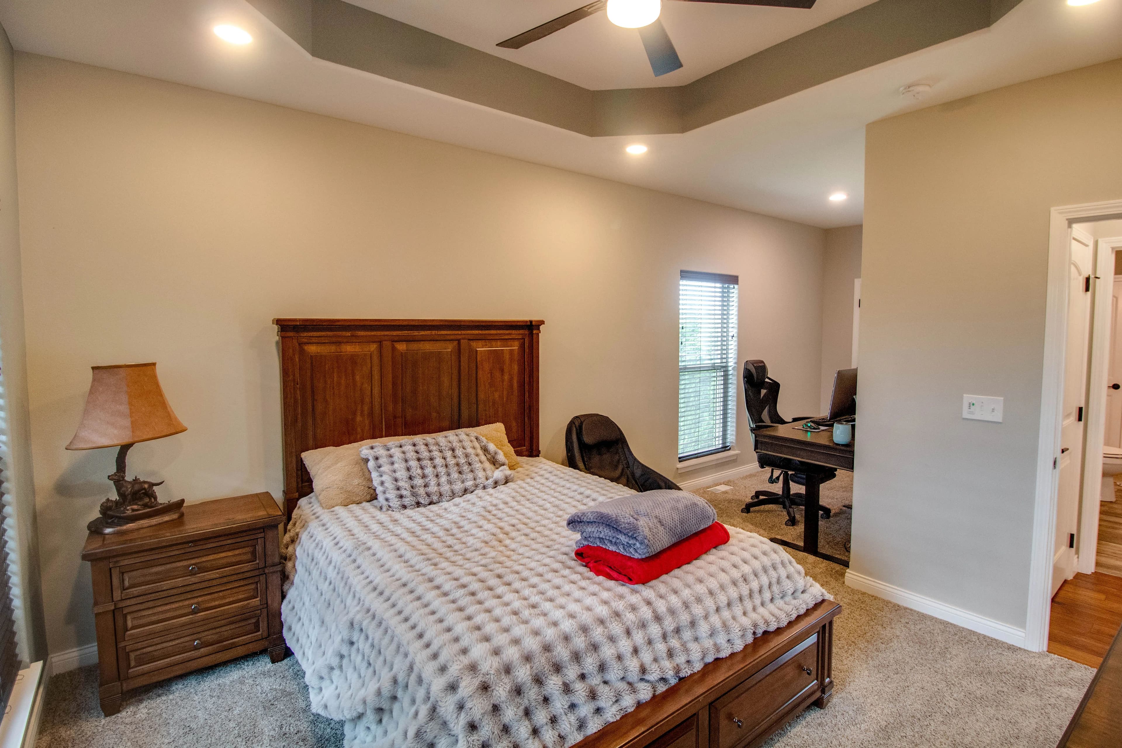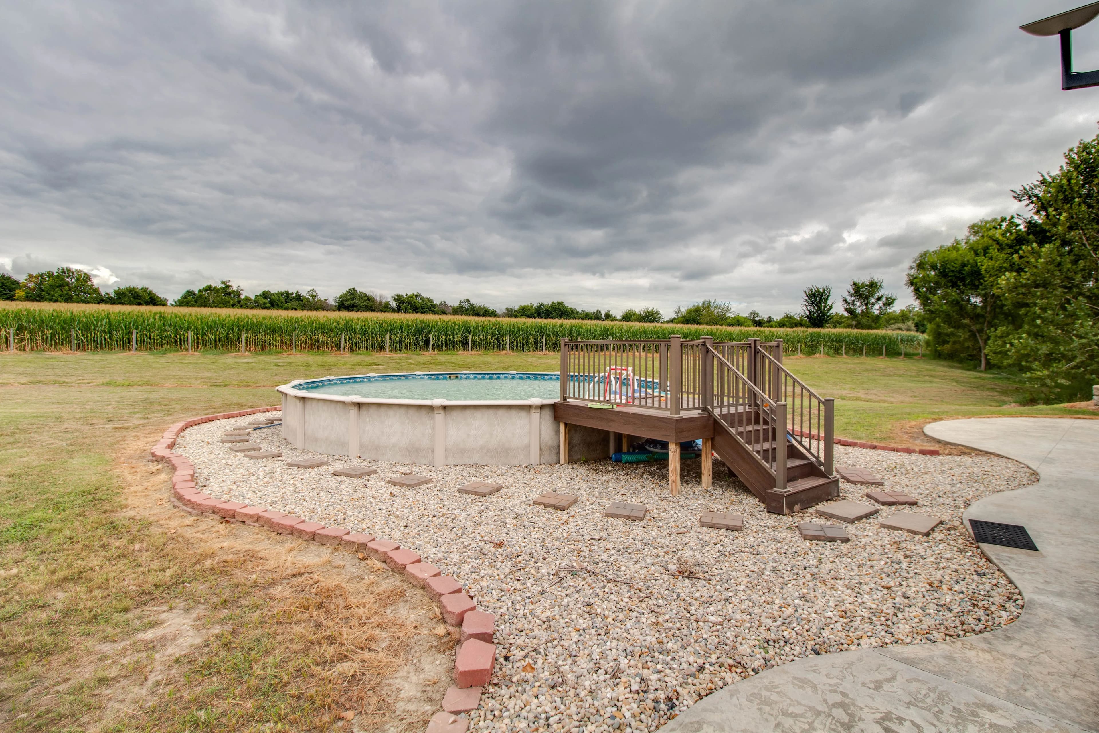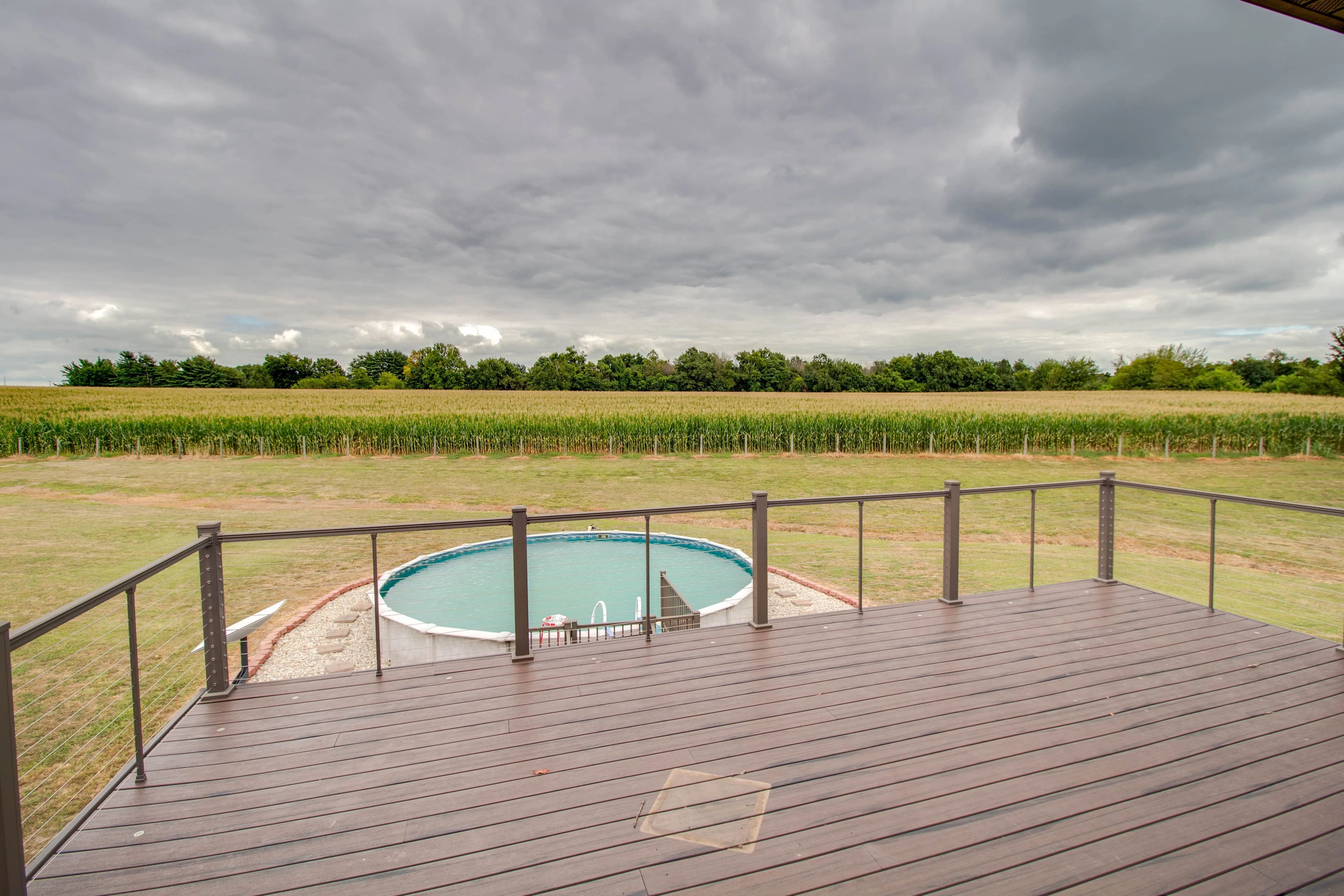 Situated on 8+/- acres, this spacious and well-appointed property offers both comfortable living and exceptional outbuilding space. The main home features vaulted ceilings, a gas fireplace, and a walk-out layout designed for everyday comfort and entertaining. The kitchen includes granite countertops, stainless appliances, a center island, and double ovens. The primary suite boasts private deck access, dual walk-in closets, and a spa-like bath with a whirlpool tub and walk-in shower. The fully finished lower level includes a large family room, full bar with marble counters and stainless fridge, a bedroom, ¾ bath, and walk-out access to a covered stamped concrete patio and above-ground pool. The highlight? A massive 54x72 barn with metal siding and roof, full concrete floors (6” thick), power, loft space, and three 14x14 insulated roll-up doors. The barn also includes a 15x70 drive-through covered area, heating and cooling, full spray-foam insulation, and two 300,000 BTU Reznor heaters. Inside, you'll find finished office space, a conference room with kitchenette, a ¾ bath, and central air. The barn has its own 200-amp service, gas furnace, and propane (leased tank). Additional features: 400-amp service at the house, central air, septic, public water, and both tank and tankless water heaters. This is a rare opportunity to own a move-in ready home with a fully equipped shop setup—perfect for home-based business, hobby space, or serious storage needs.