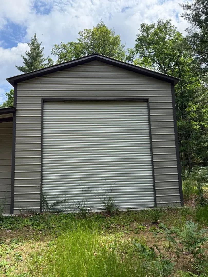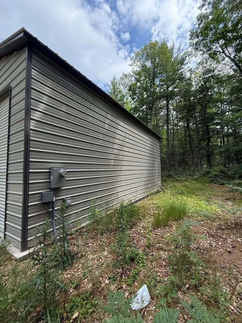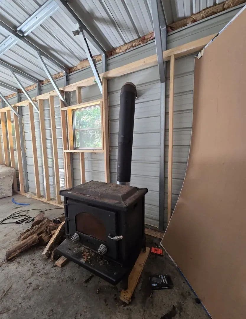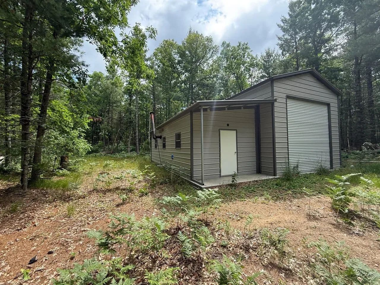 Large all-metal barn with concrete floors, power, well, septic, and wood burner heat