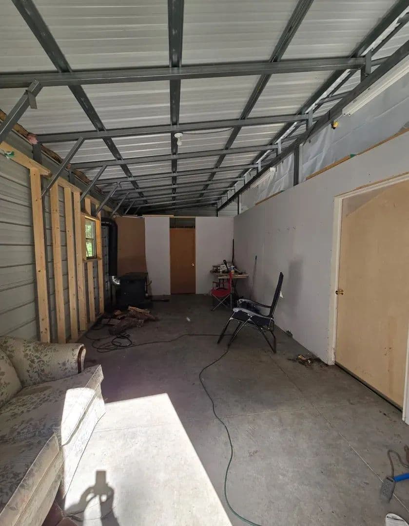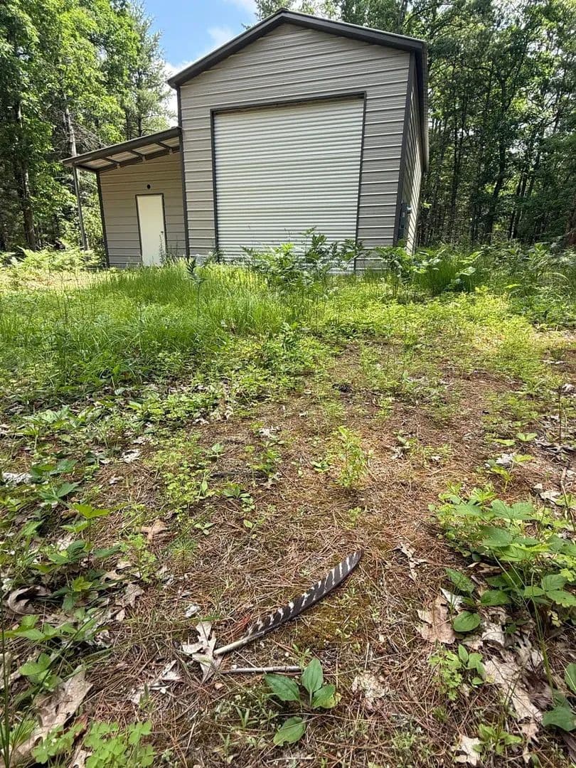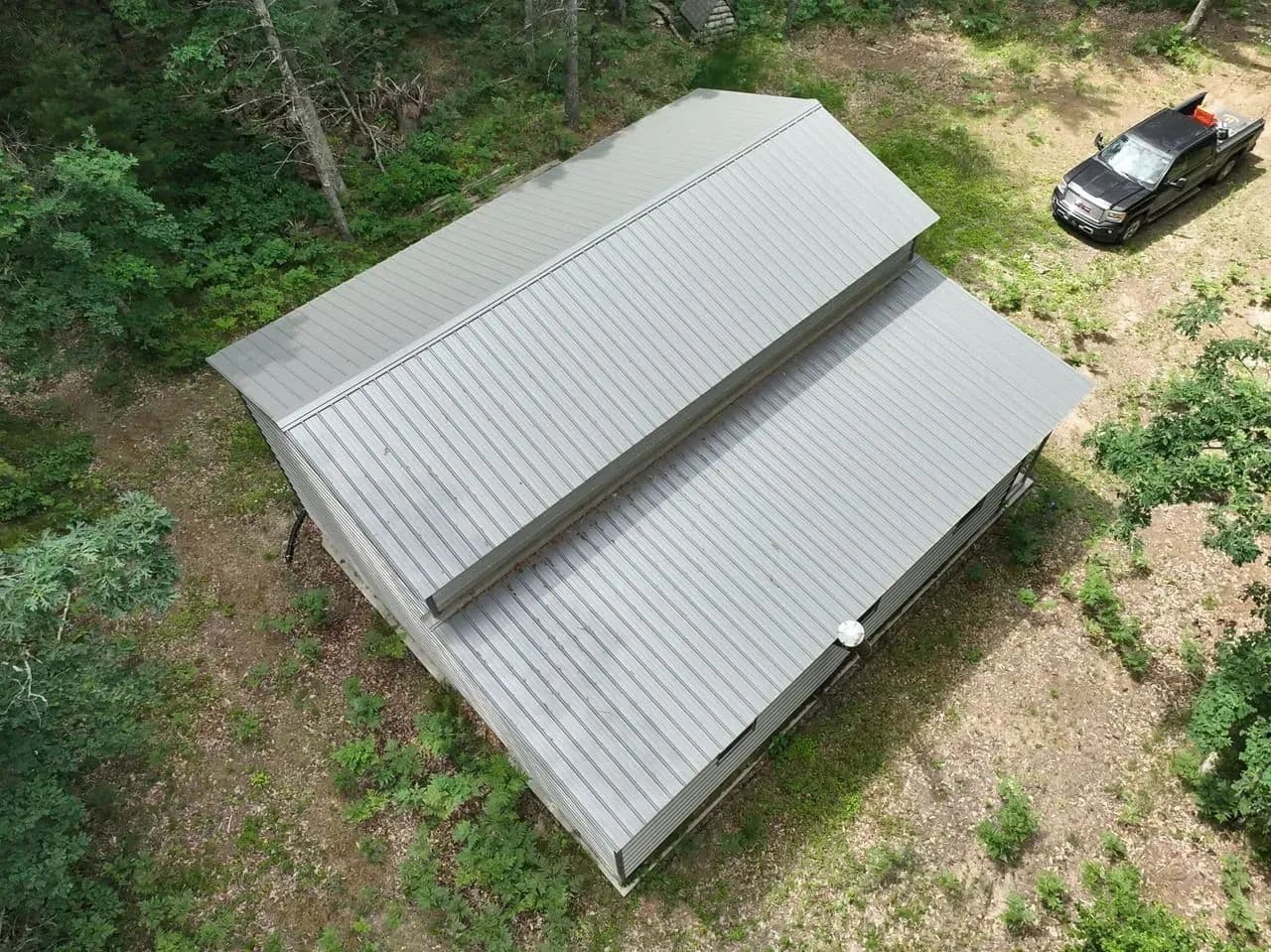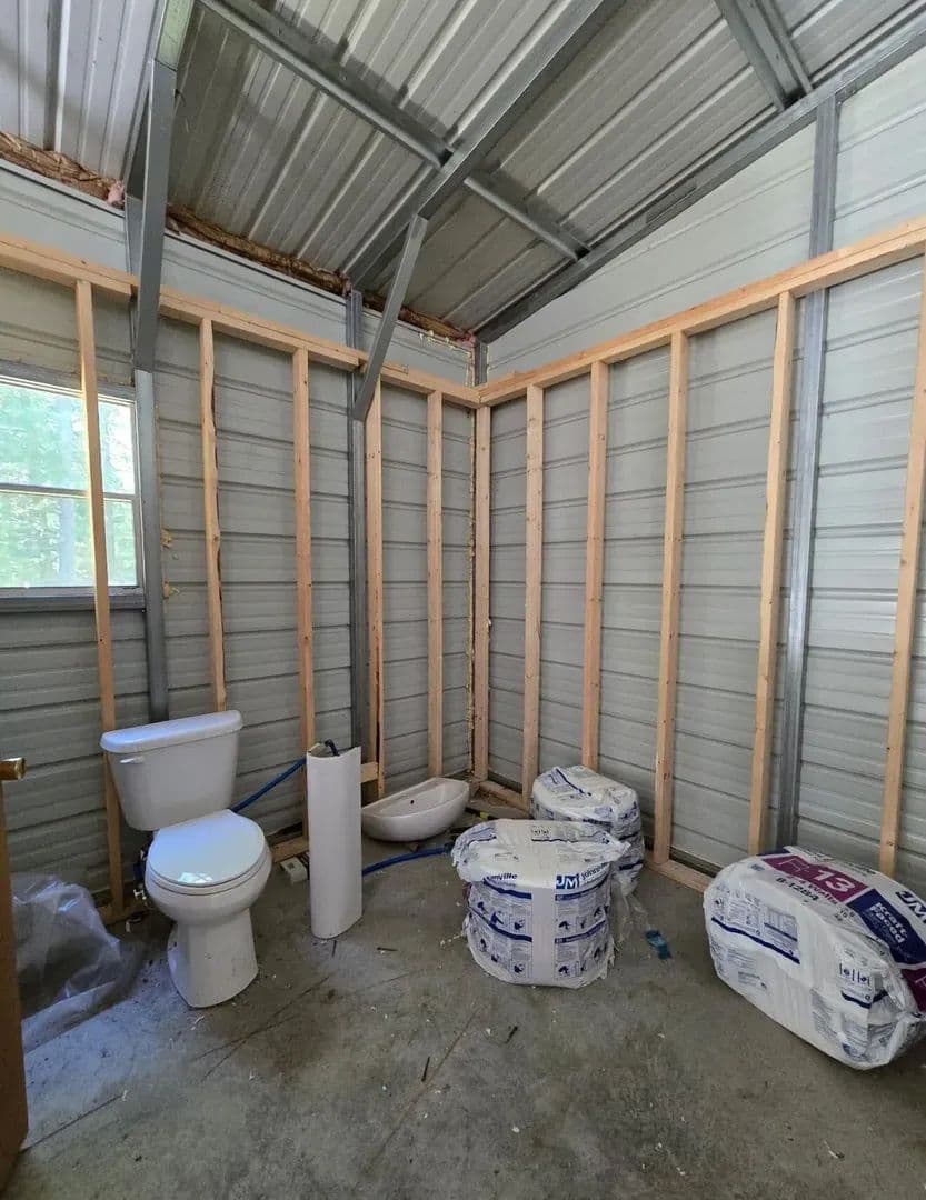 Large all-metal barn with concrete floors, power, well, septic, and wood burner heat