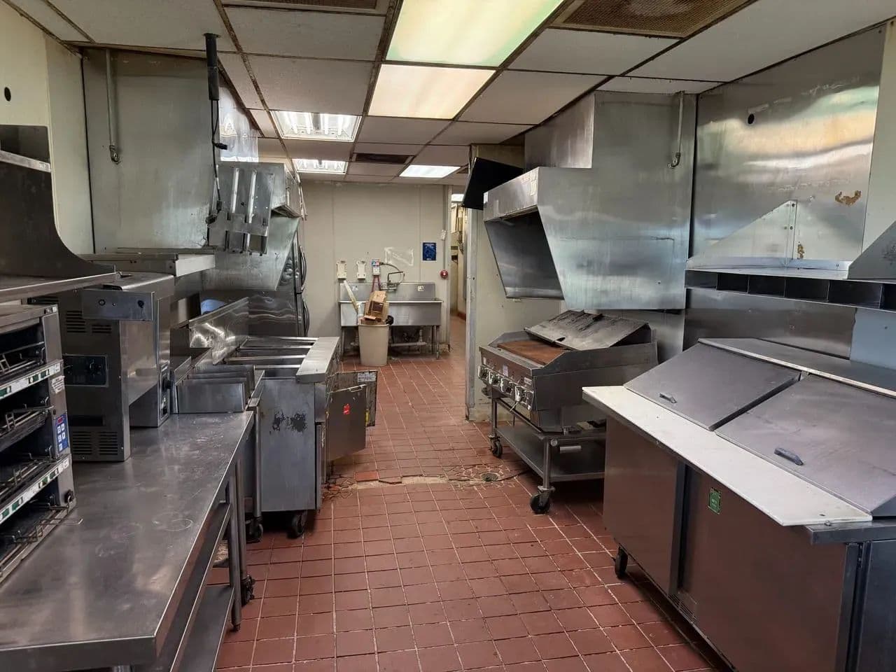 Fully Equipped – Includes cooking, ice cream, and beverage equipment, plus a walk-in freezer, walk-in refrigerator, and a stand-alone refrigerator/freezer.