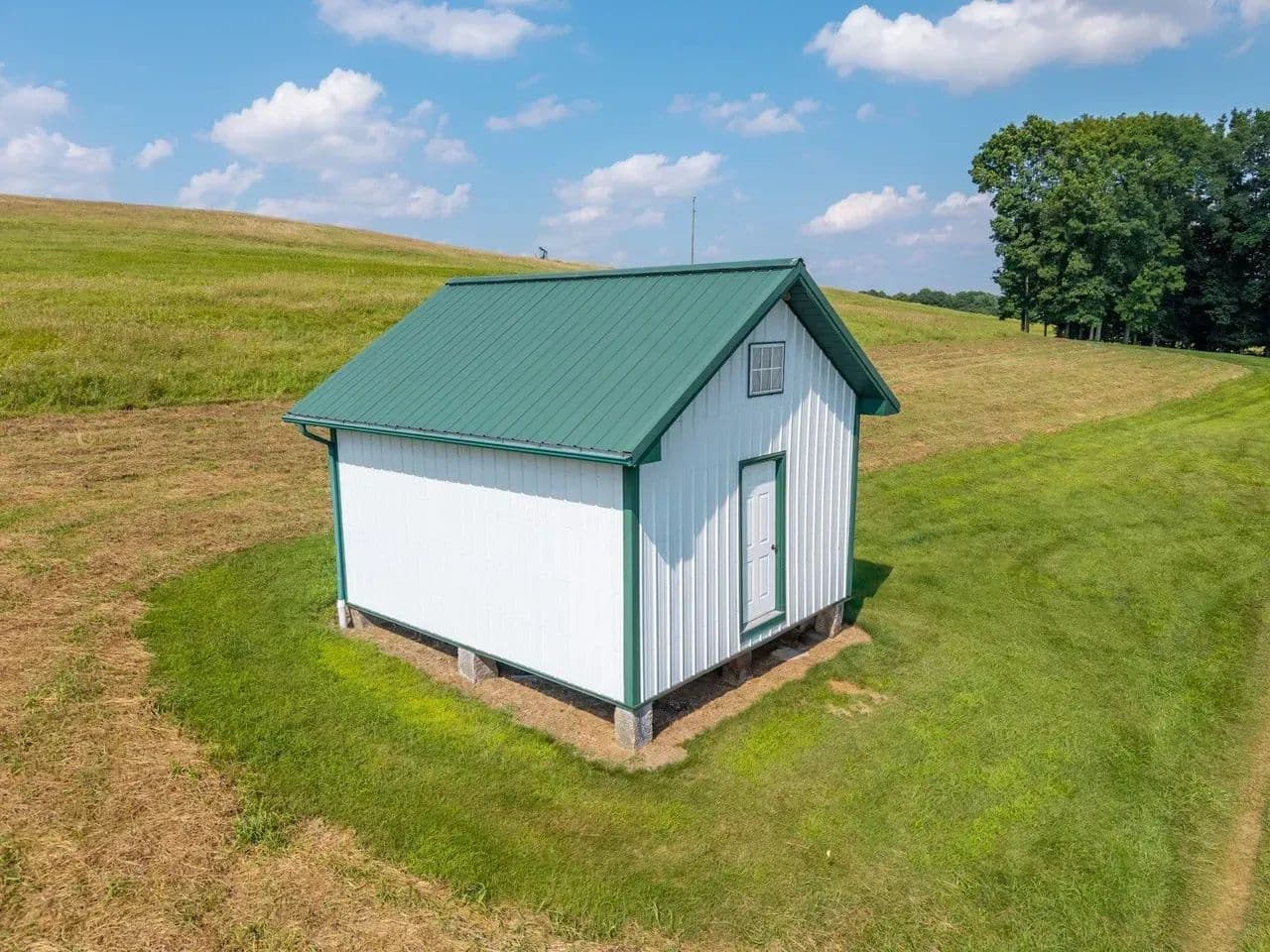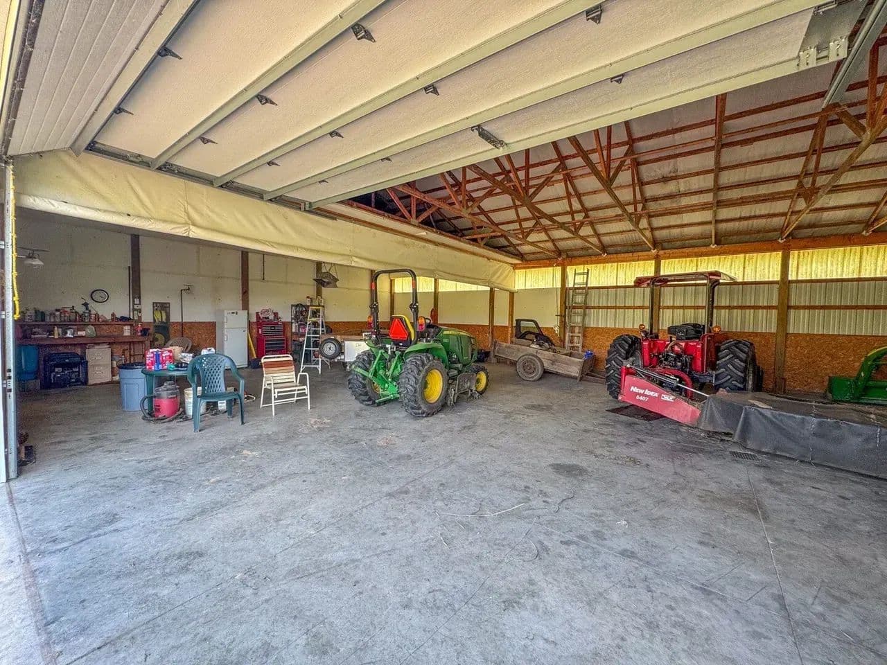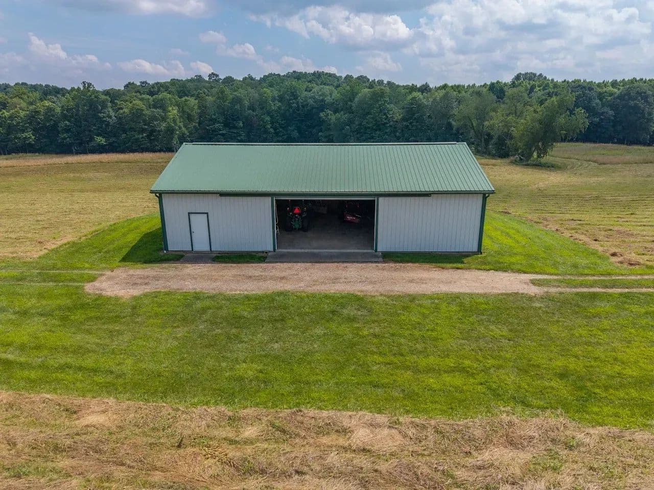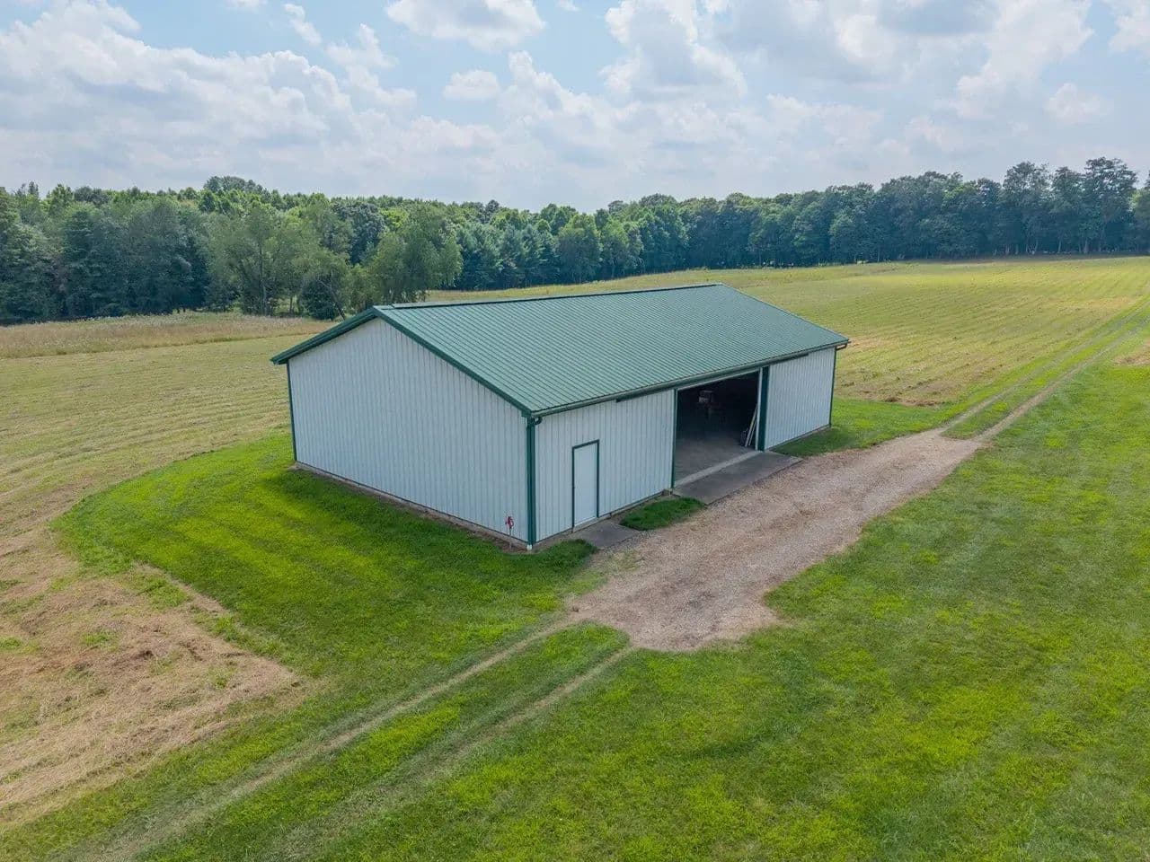 A 36x56 pole barn provides ample storage for equipment, and there is plenty of room to convert some of the space into living quarters. The pole barn currently receives free gas from the existing well. Approximately 6 acres of land behind the pole barn, which is not enrolled in CRP, would make a great building site. A spring feeds a 1000-gallon cistern located behind the pole barn. AEP Electric is on the property.