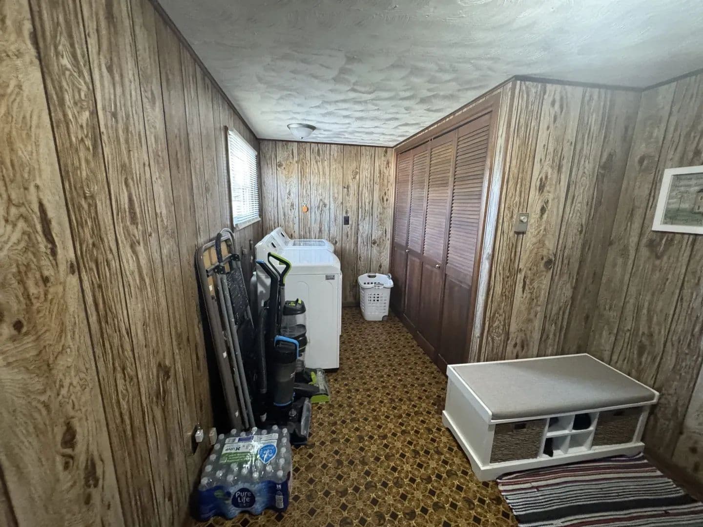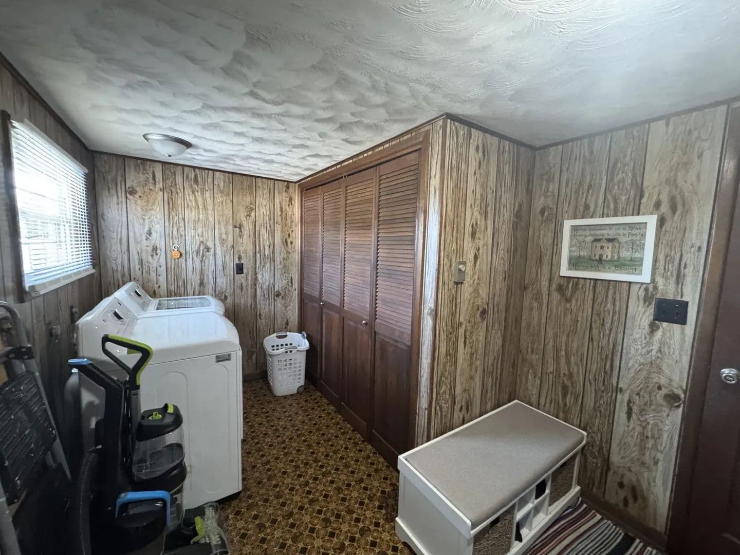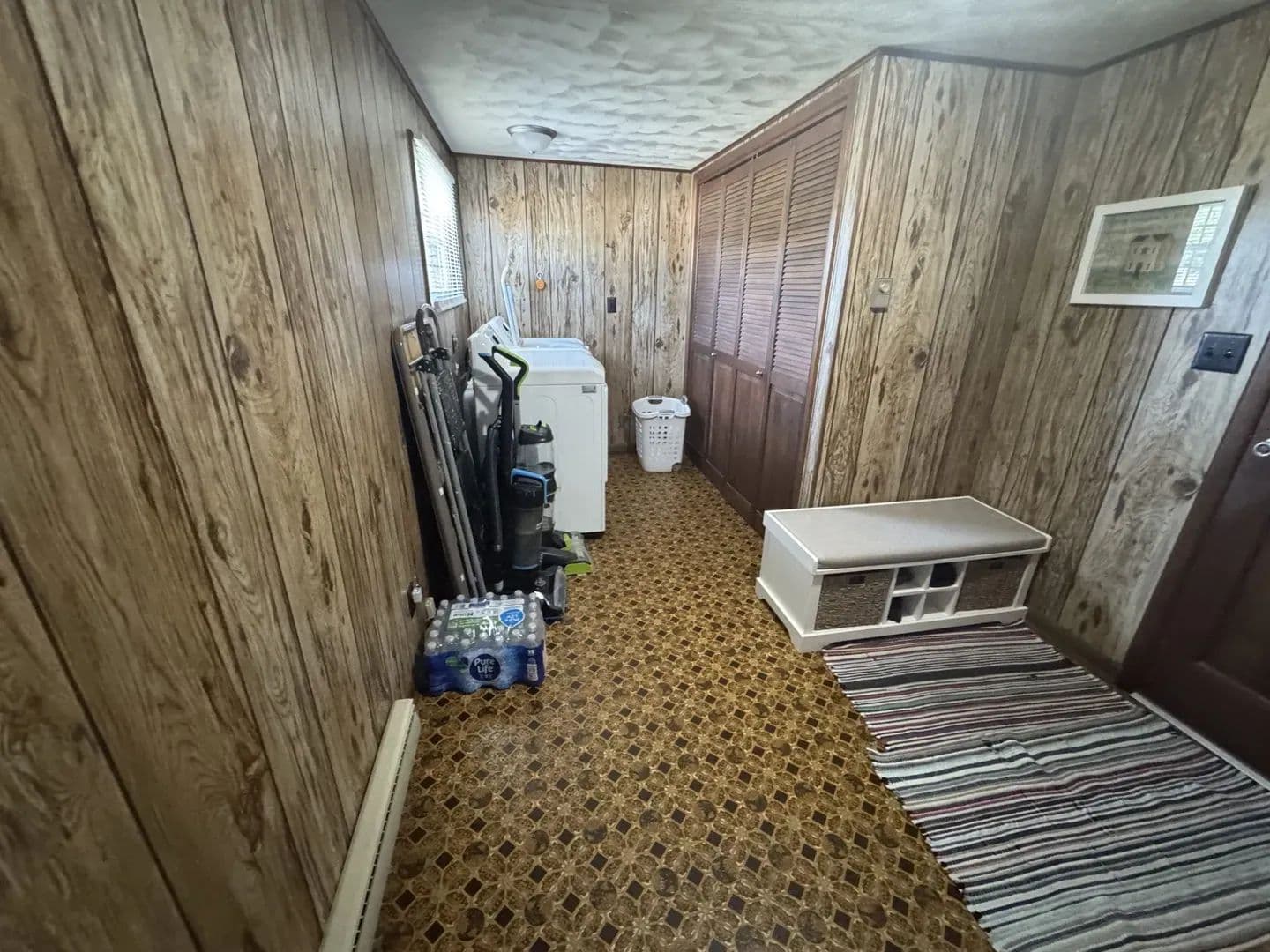 A functional mudroom/laundry room sits just off the carport, providing a practical entry point from outside. For those who enjoy outdoor living, the 30×12 deck offers plenty of space for grilling, dining, or relaxing. The property also shines with curb appeal—mature landscaping, rose bushes, and plantings around the home and garage create a welcoming touch.