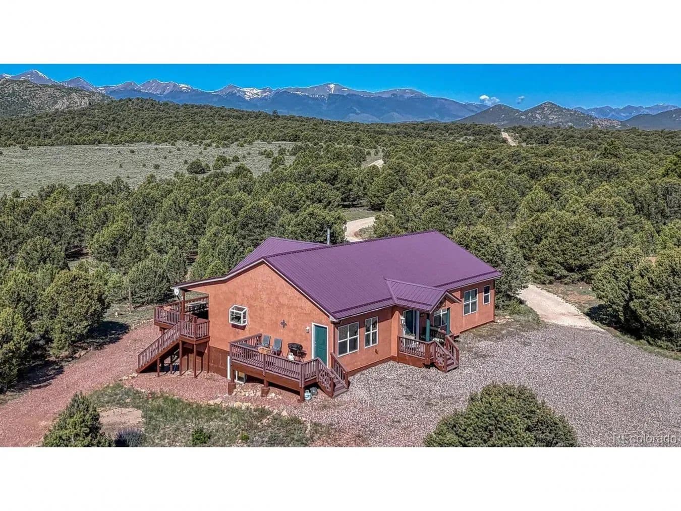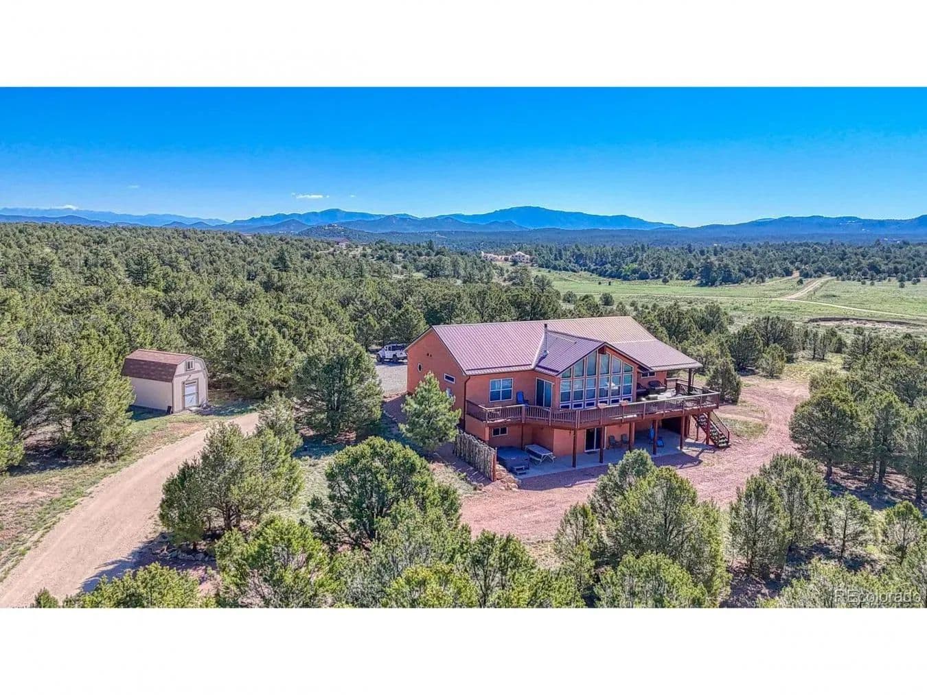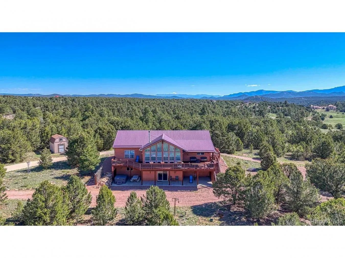 Live the Colorado dream on 36 wide-open, soul-soothing acres in the highly desirable Bull Domingo Ranch. This 3, 876 sq ft custom-built retreat offers more than just a home-it delivers a lifestyle of space, serenity, and breathtaking scenery. With uninterrupted views of the majestic Sangre de Cristo and Wet Mountains from nearly every window, this 3-bedroom, 3-bath home was thoughtfully designed to celebrate its surroundings. The open floor plan welcomes you with radiant in-floor heating and a cozy wood-burning stove-perfect for curling up on snowy nights. Soaring ceilings and expansive windows flood the space with natural light, while the generous kitchen offers abundant cabinetry, extensive prep space, and a walk-in pantry ready for everything from dinner parties to snowstorm stock-ups. The main-level primary suite is a private oasis with a massive walk-in closet and a spa-like 5-piece en-suite bath featuring a soaking tub with mountain views. Head downstairs to the walk-out basement where comfort meets versatility. You'll find a sprawling family room, a full theater room for movie nights or game days, the third bedroom, and another full bath-perfect for guests, extended family, or quiet retreat spaces. Step outside and the magic continues. Enjoy low-maintenance Trex decking for sunrise coffee and sunset wine, soak under the stars in your private hot tub, or relax in the shaded bliss of your covered patio. A brand new septic system with a RV dump station for waste offers convenience for visitors or RV enthusiasts. Whether you're watching deer and elk roam across your land, entertaining under open skies in this Dark Sky Community, or simply savoring the silence, this property offers a rare blend of luxury, privacy, and pure mountain magic. This isn't just a home-it's a front-row seat to Colorado's wild beauty. Schedule your private tour today and experience mountain living at its absolute finest.