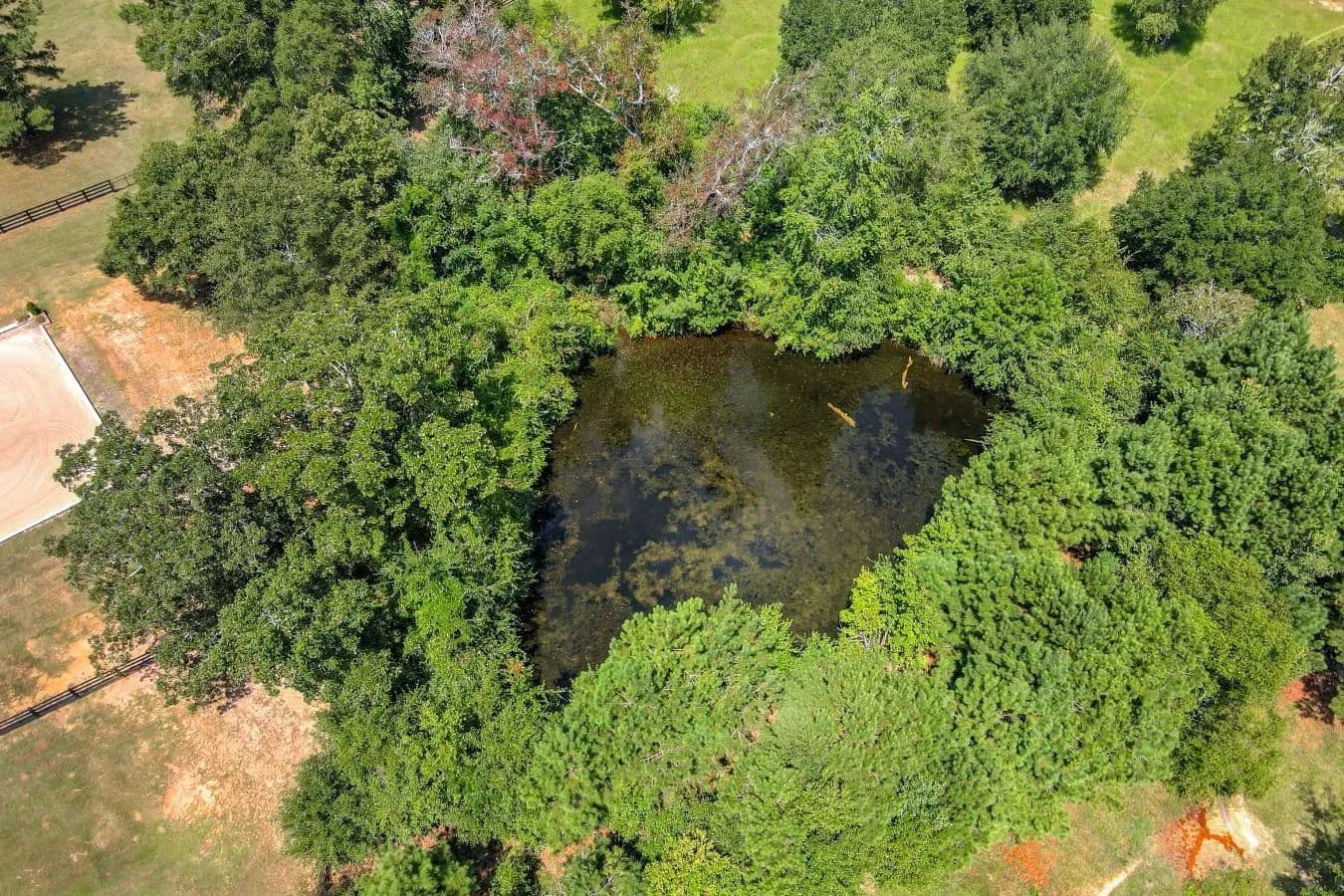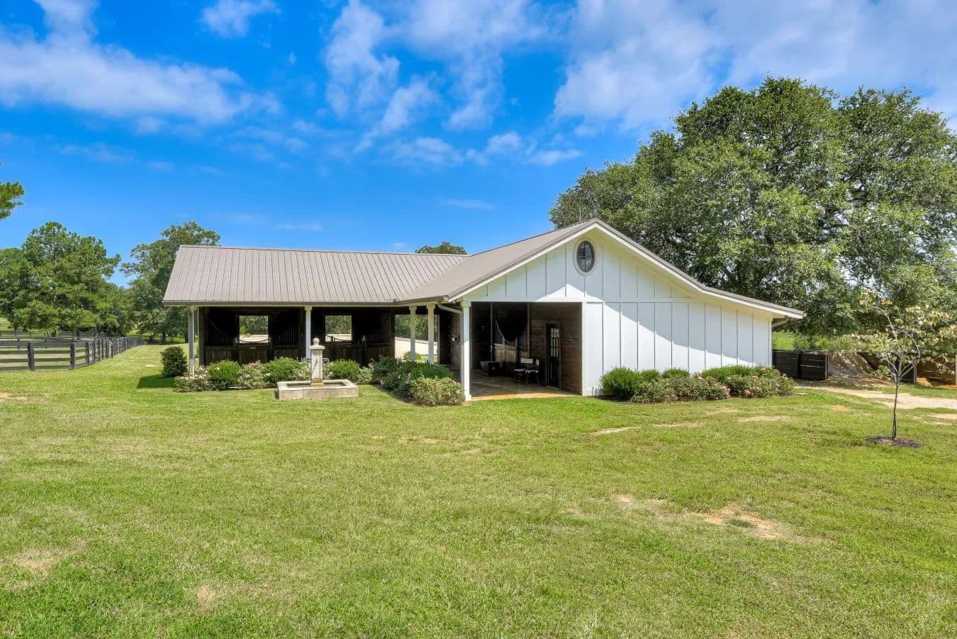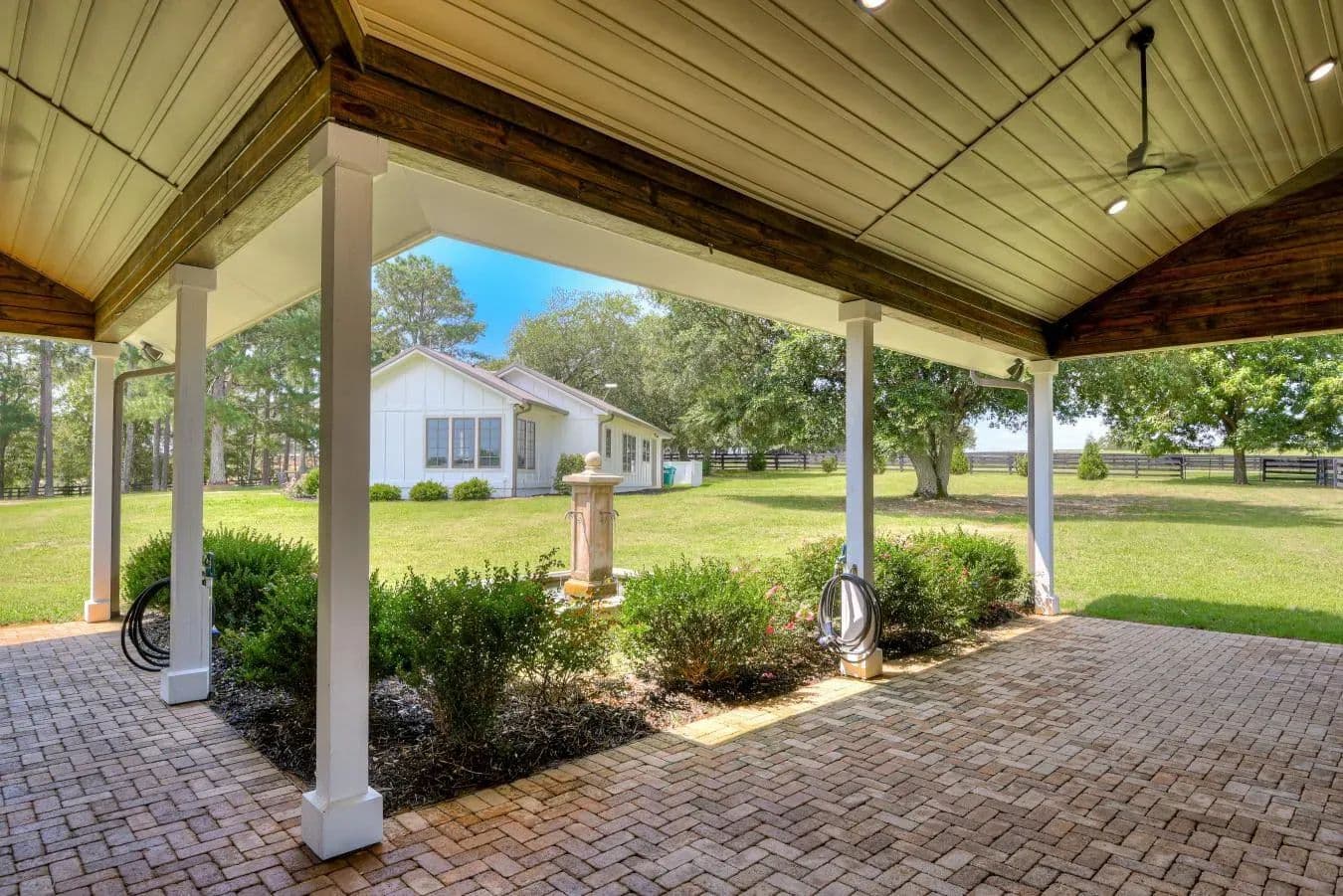 Escape to luxury in this exquisite two-bedroom, two-bath cottage on 6 acres in an equestrian neighborhood just 9 miles from downtown Aiken, South Carolina. Home: Blending Southern charm with high design finishes, this home offers a luxurious primary suite with vaulted ceilings, spa bathroom and walk-in closet. Whip up a meal in your gourmet kitchen with custom cabinetry, abundant light and upscale finishes. After dinner, relax on your screened and open air porches - perfect for year-round enjoyment. There is also a spacious mudroom with paver floor and Dutch doors plus a dedicated dog yard. Barn: For the equines in your life, there is a luxury three-stall barn, complete with top-of-the-line Lucas Equine stalls, brick paver aisle, fountain and a climate controlled tack room/lounge with half bath. There is also a feed room with dishwasher for convenience. The property features a regulation size arena with natural footing and irrigation system - perfect for any discipline. There are three generously sized paddocks with automatic waterer. Property Highlights: - Beautiful pond on the backside of the property with additional land there for paddock, second residence or just keep it open. Located in Pony Express - an upscale neighborhood with 6 acre minimum lots, trail network and community arena with GGT footing. The farm is fully perimeter fencing, has an automatic entry gate and annual HOA $ 750. Minimum restrictions (no mobile, fencing requirements). It is located a short drive from Hitchcock Woods (70+ miles of trails), top equestrian venues and Aiken's historic downtown This delightful property is a rare find - perfect for the discerning owner seeking a boutique farm or seasonal residence in equestrian paradise. For your private tour or more information, reach out today! This property is more than a home-it is an invitation to embrace the best of Aiken's equestrian lifestyle, where privacy, sophistication, and convenience converge.