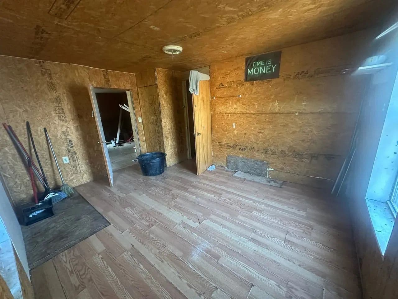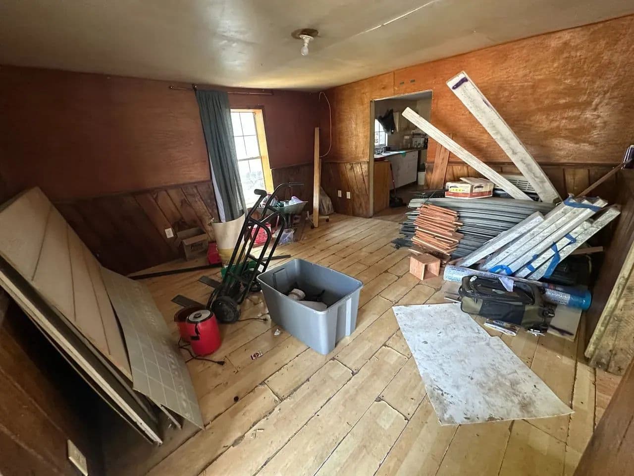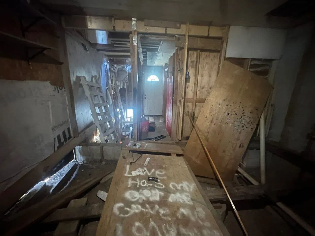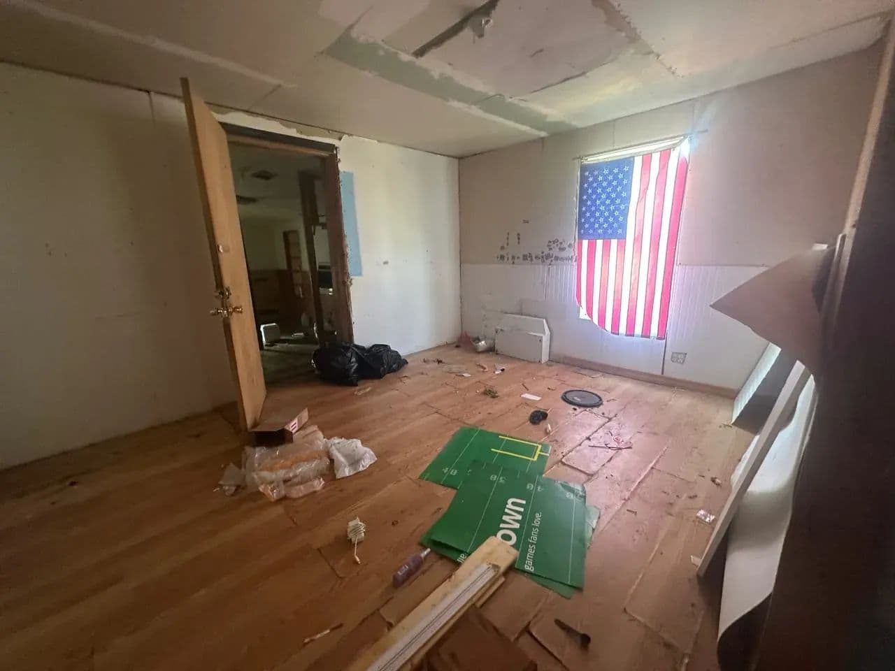 The main level offers 2 bedrooms and 1 full bath, with the seller reporting an additional 2 bedrooms and half bath upstairs. The stairwell has been removed, so access to the second floor will need to be reestablished. The home has power and water connections, though both services are currently shut off.