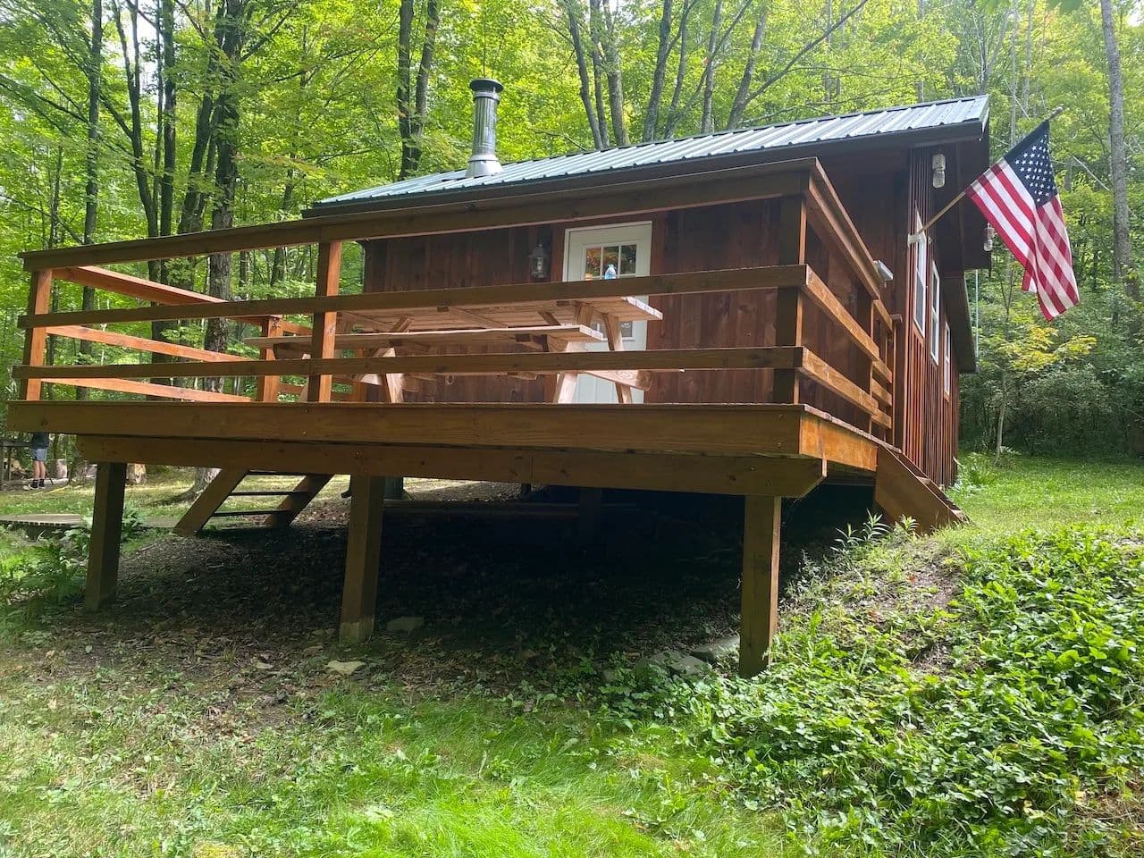 This secluded cabin on 3 acres borders Gas Springs State Forest in Canaseraga NY, Allegany County.