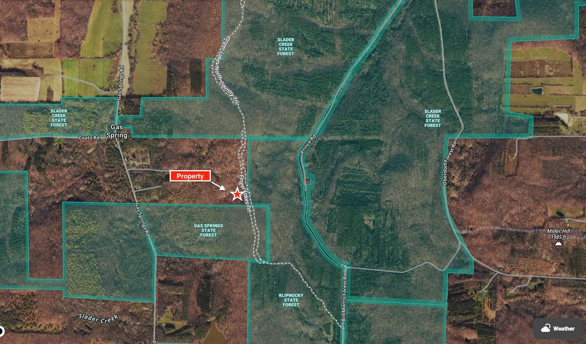 This well-built one-bedroom cabin with loft is perfectly situated on a secluded parcel that directly borders Gas Springs State Forest. A deeded easement from Gas Springs Road leads to this private cabin surrounded by a mix of hardwoods and softwoods that create excellent wildlife habitat and privacy.