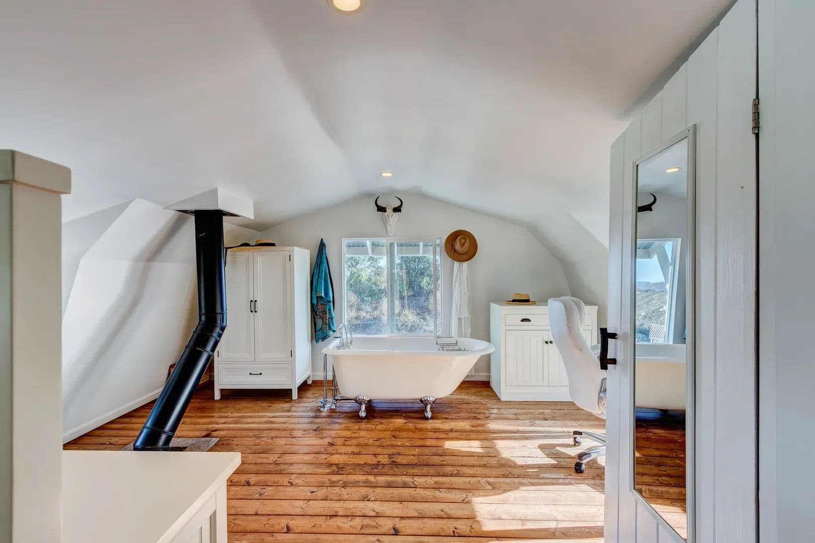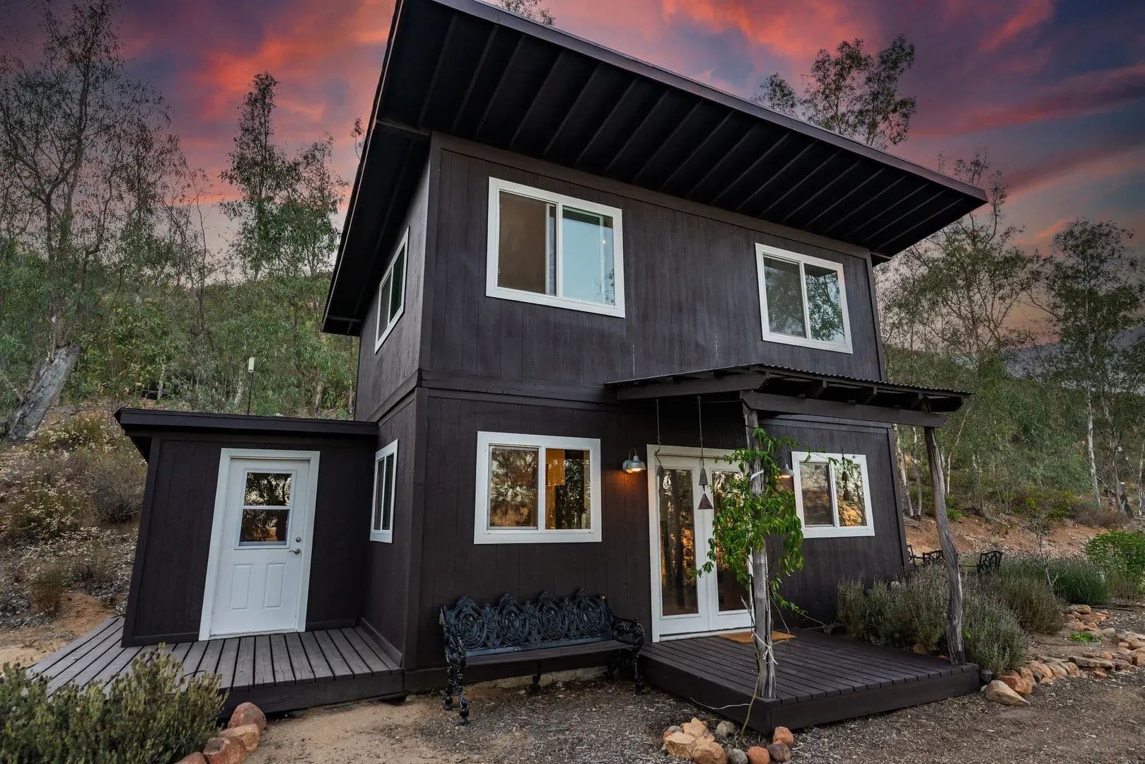 The possibilities abound at Crown Hill Ranch. Privacy, peace, and serenity envelop you with various wildlife and natural elements. On a clear day, you can see the Coronado Islands, San Clemente and all the way to Catalina Island. There is a building plan and pad already earmarked for a 4,800 sqft home. Currently there is a 1 br barn-kit home, a 1br tree house, and a 1 br office/guest house on the 77-acre parcel with well water, solar and battery backup, septic and propane. A second home may be built on the 80-acre parcel along with additional ag buildings. *Two APNs: 240-070-11-00 (77 acres) and 240-150-07-00 (80 acres).The ranch has a quaint one-bedroom modern farmhouse. Lounge on the oversize wraparound porch, overlooking the historic 21,000 acre Ranch Guejito, the last privately owned Mexican land grant. The farmhouse has a wood-burning stove for those cool nights, and is equipped with a modern kitchen and bathroom. The upstairs loft bedroom has a clawfoot bathtub and views of rolling hills. Look out onto mature trees, including blue gum eucalyptus, lemon eucalyptus, coastal Live Oaks and the rare Engleman Oak. There are no endangered species or plants on the property. You might spot hummingbirds gathered around black button sage, or in the pollination garden. “Bee Hill” is a perch that has been used by beekeepers to develop a thriving honey yield. The ranch provides a safe home for mountain lions, golden eagles, mule deer, coyote, bobcat, quail, road runners, hawks, owls, and wild turkeys. The rich presence of wildlife gives you a true sense of being in the wild West.