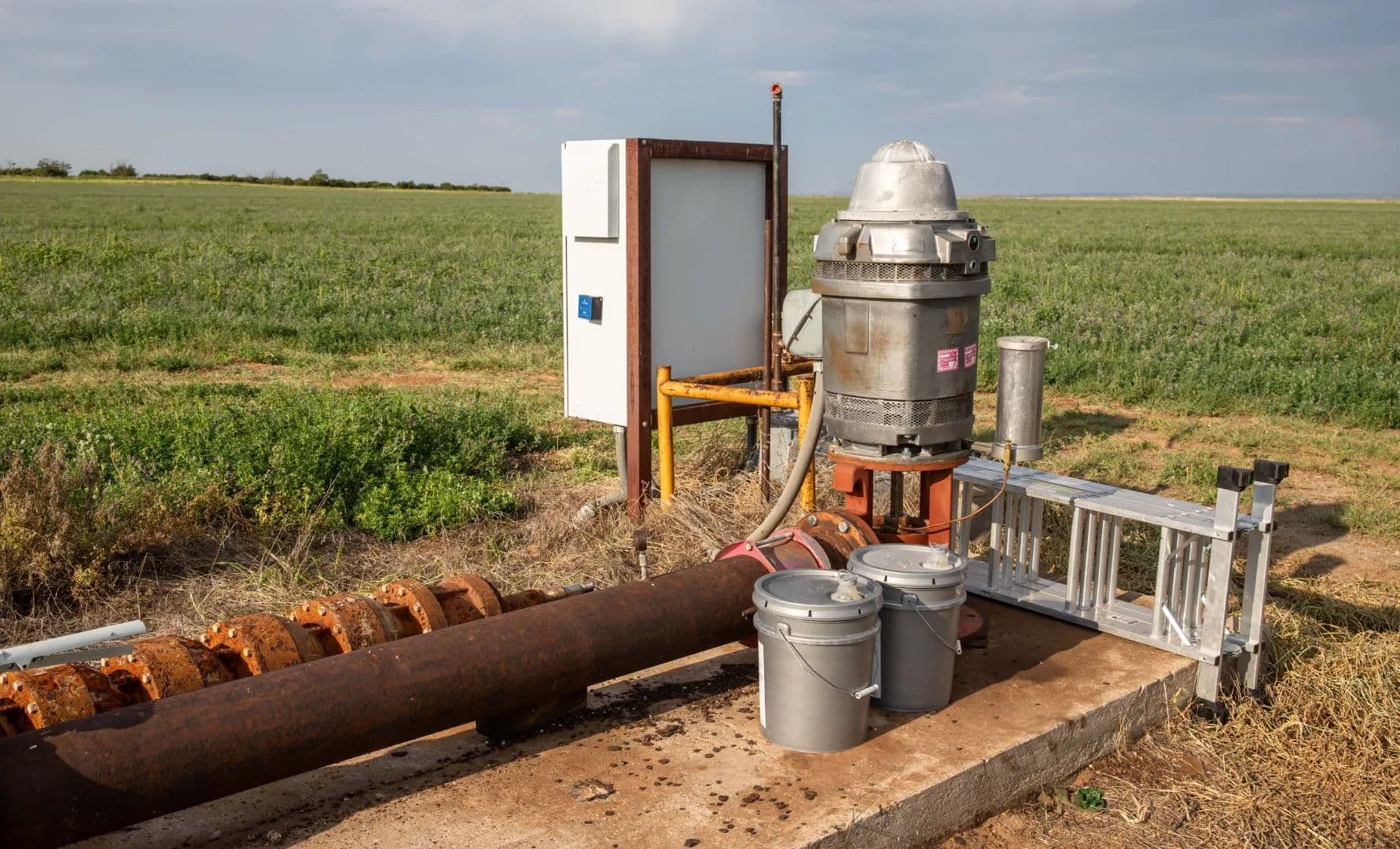 There are 2 irrigation wells on the farm. The south well is an electric turbine well with a reported depth of 200 ft. This well is capable of producing approximately 550 gallons per minute, per the owner.