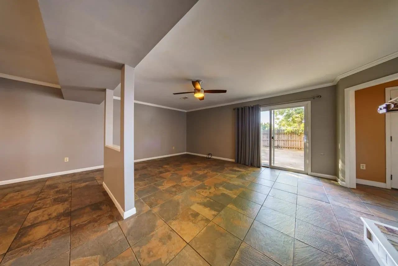 Upstairs: The second level includes two full bedrooms, a sitting area, and a full bathroom. A large laundry room with sink, folding island, and space for a second kitchen setup provides flexibility for multi-generational living. A second living room opens to the backyard with steps leading down for easy outdoor access.