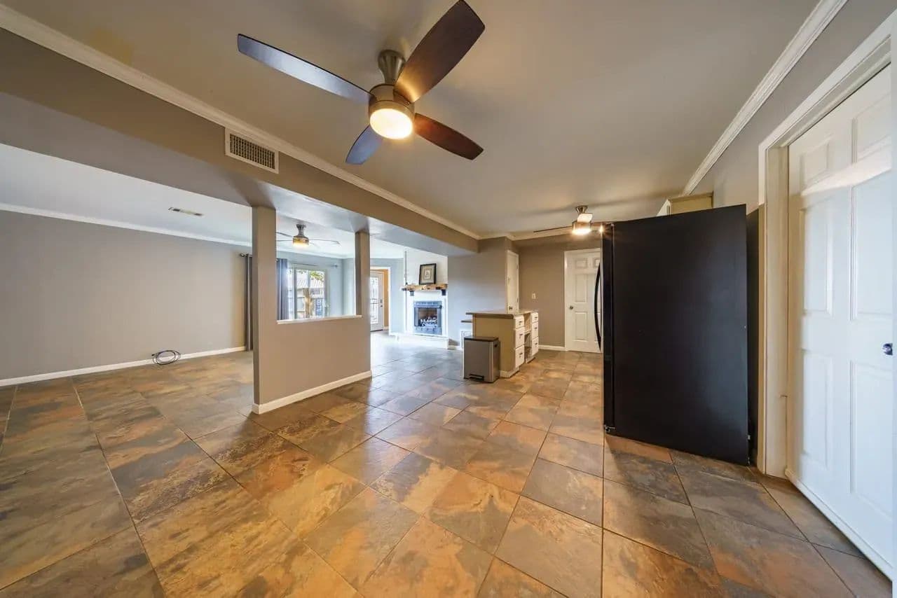 Main Level: Step inside to the welcoming living room, complete with a gas insert fireplace. The kitchen offers a gas cook stove, electric hot water heater, and a large pantry lined with shelving. A bedroom, full bath, and access to the garage are conveniently located off the hallway. A bonus room with a doggie door leads to the backyard, making it a great pet-friendly feature.